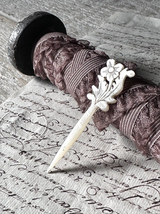 Victorian Mother of Pearl Hair Pin – Floral Carved Hair Bodkin