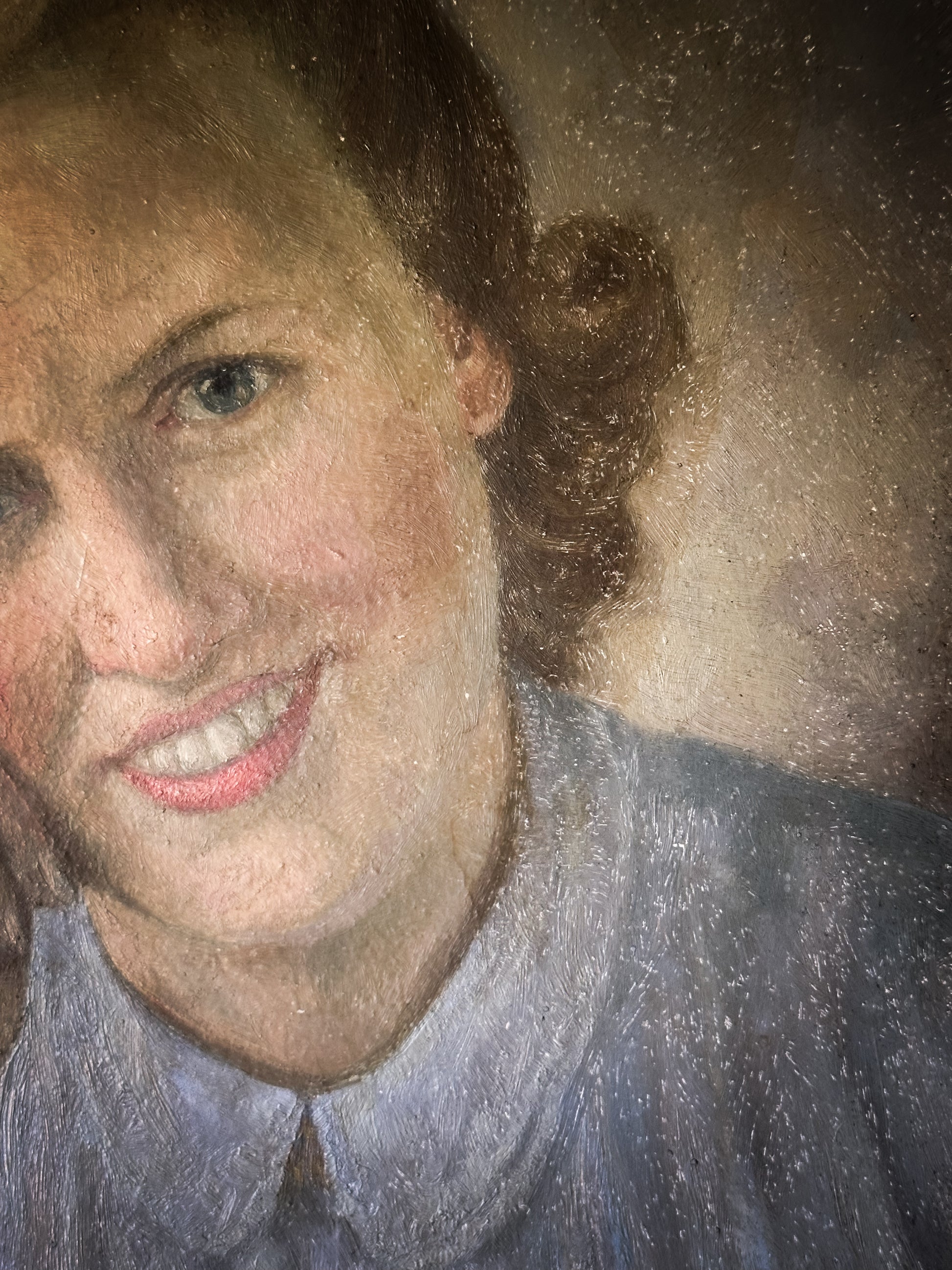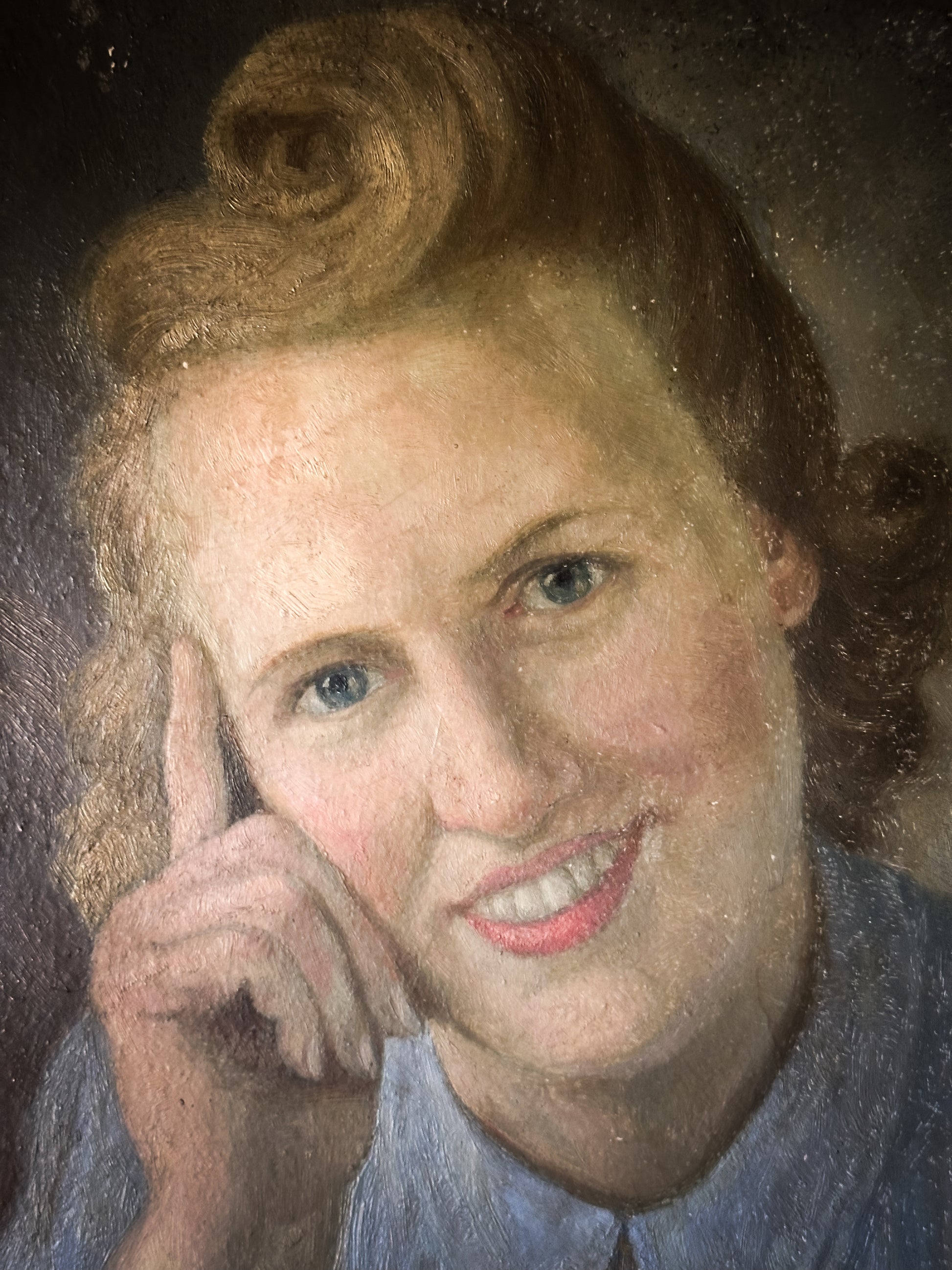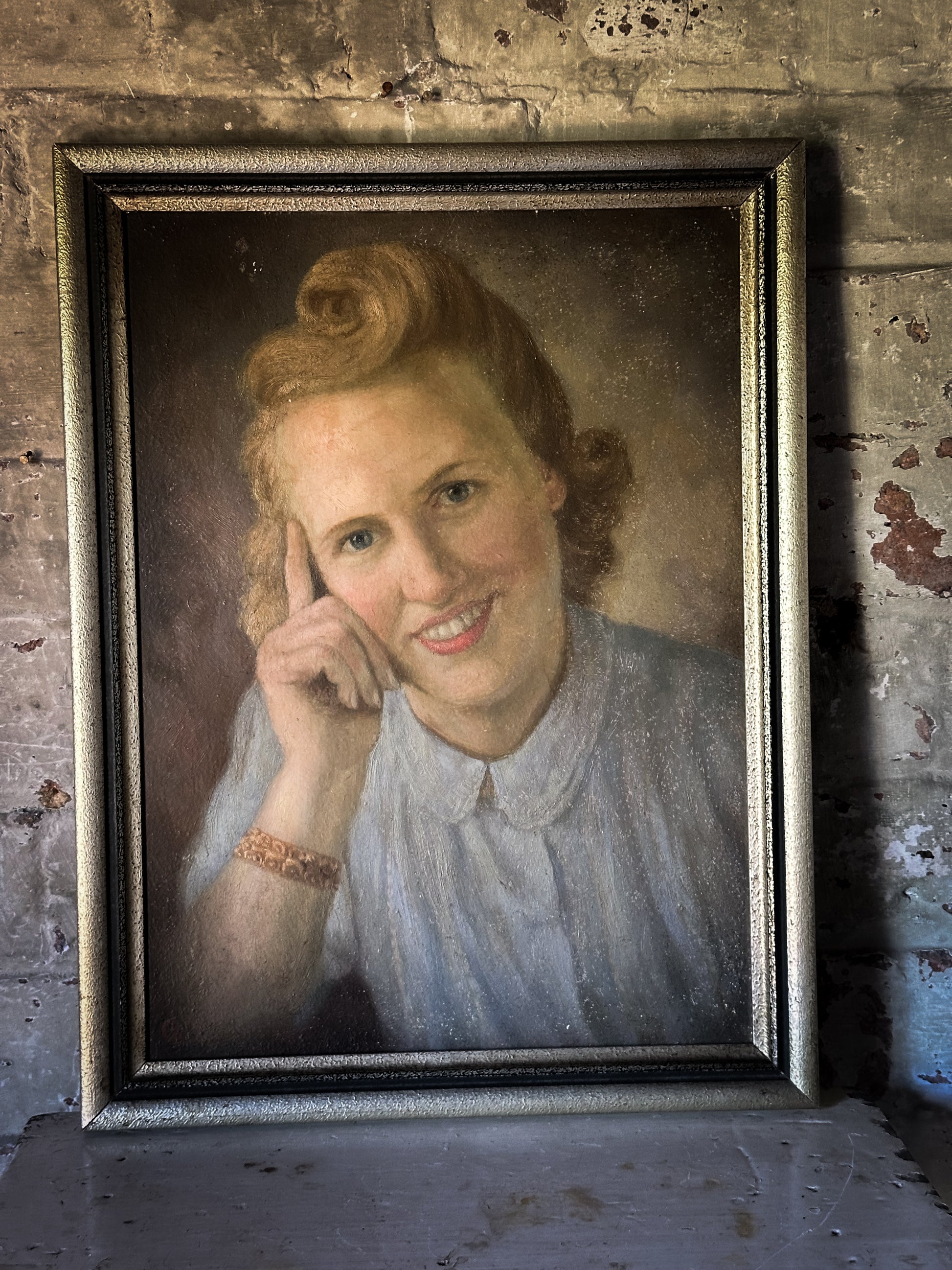 A lovely oil on board portrait of a young woman painted during the war Era.