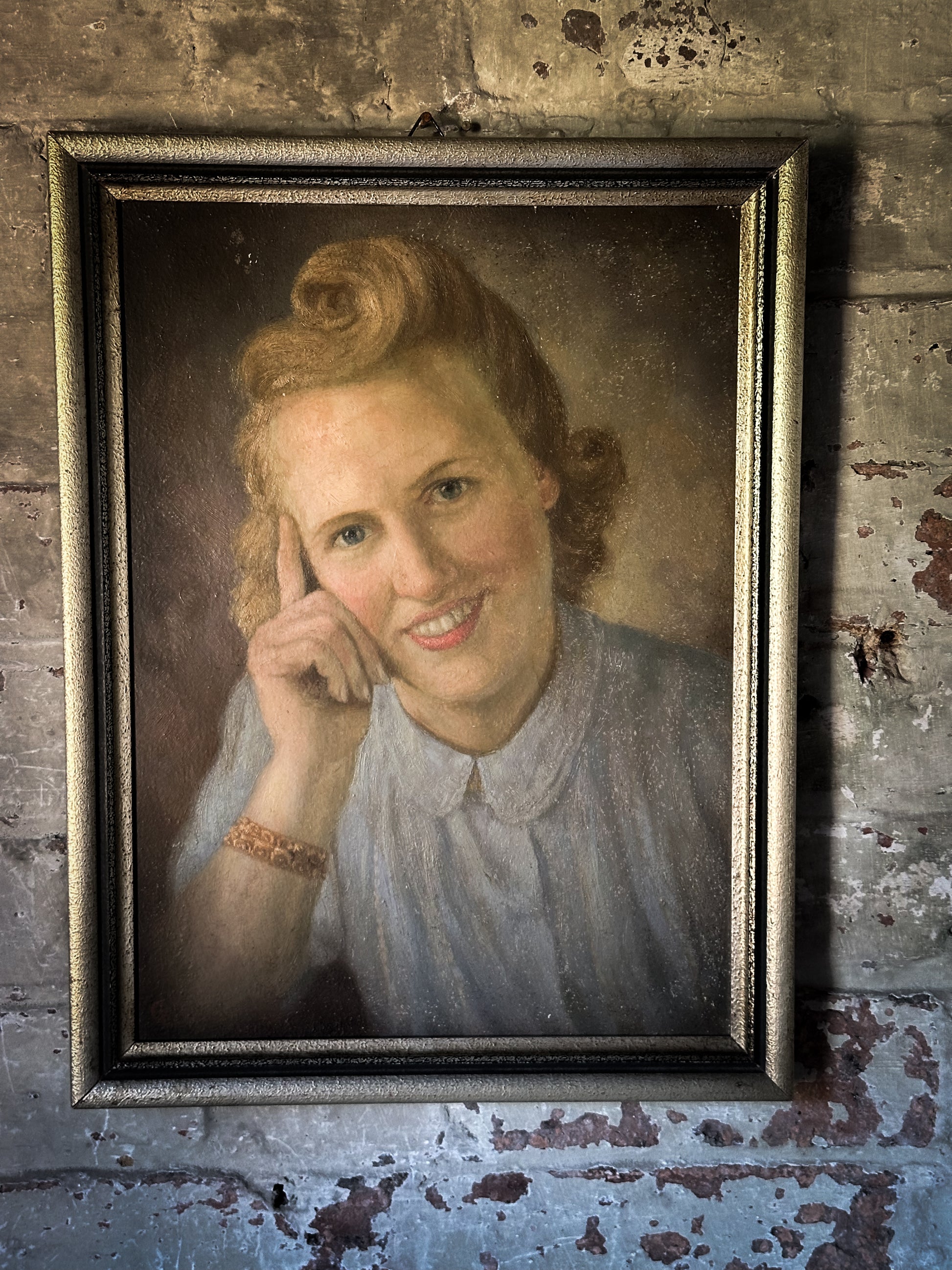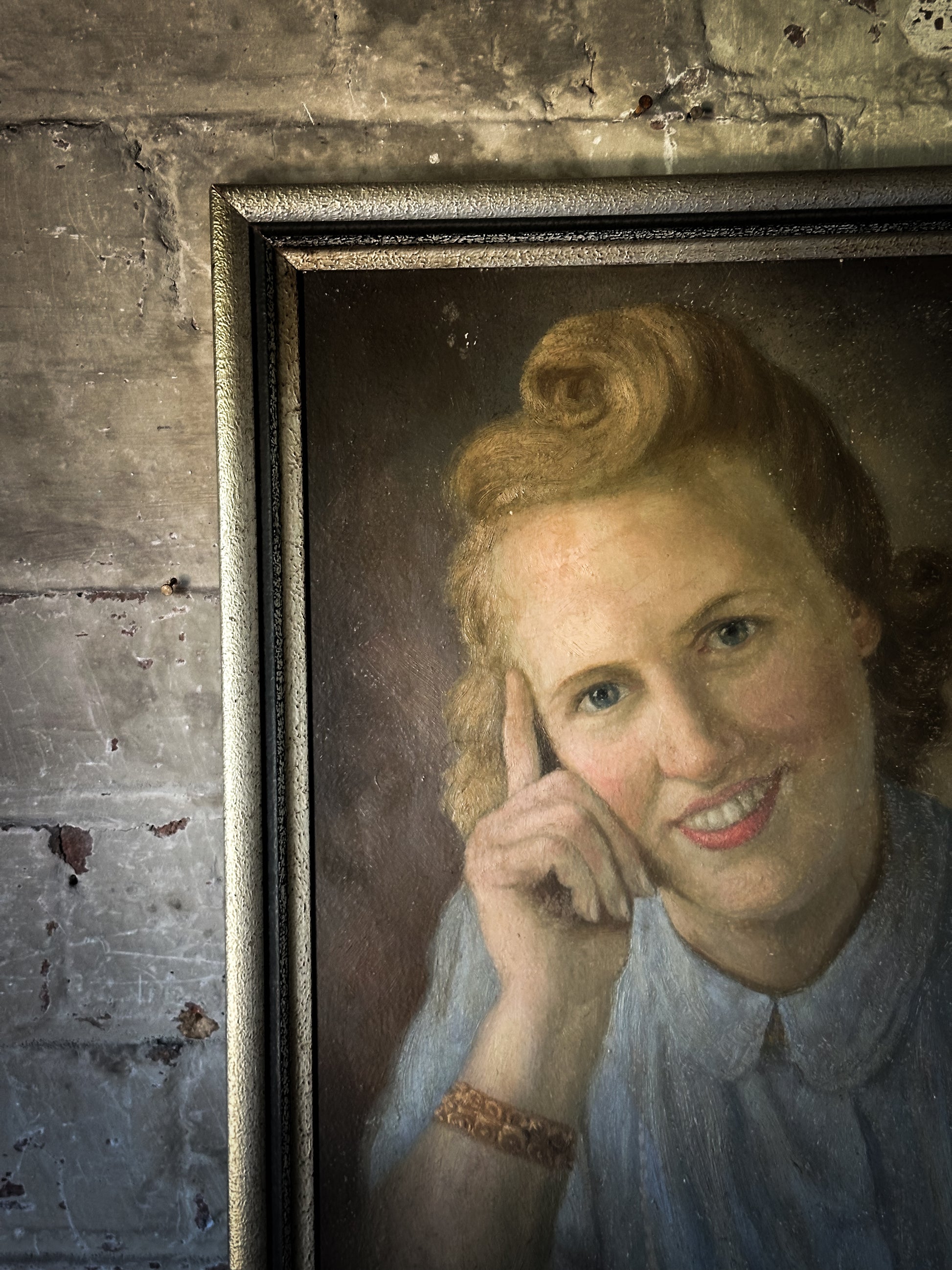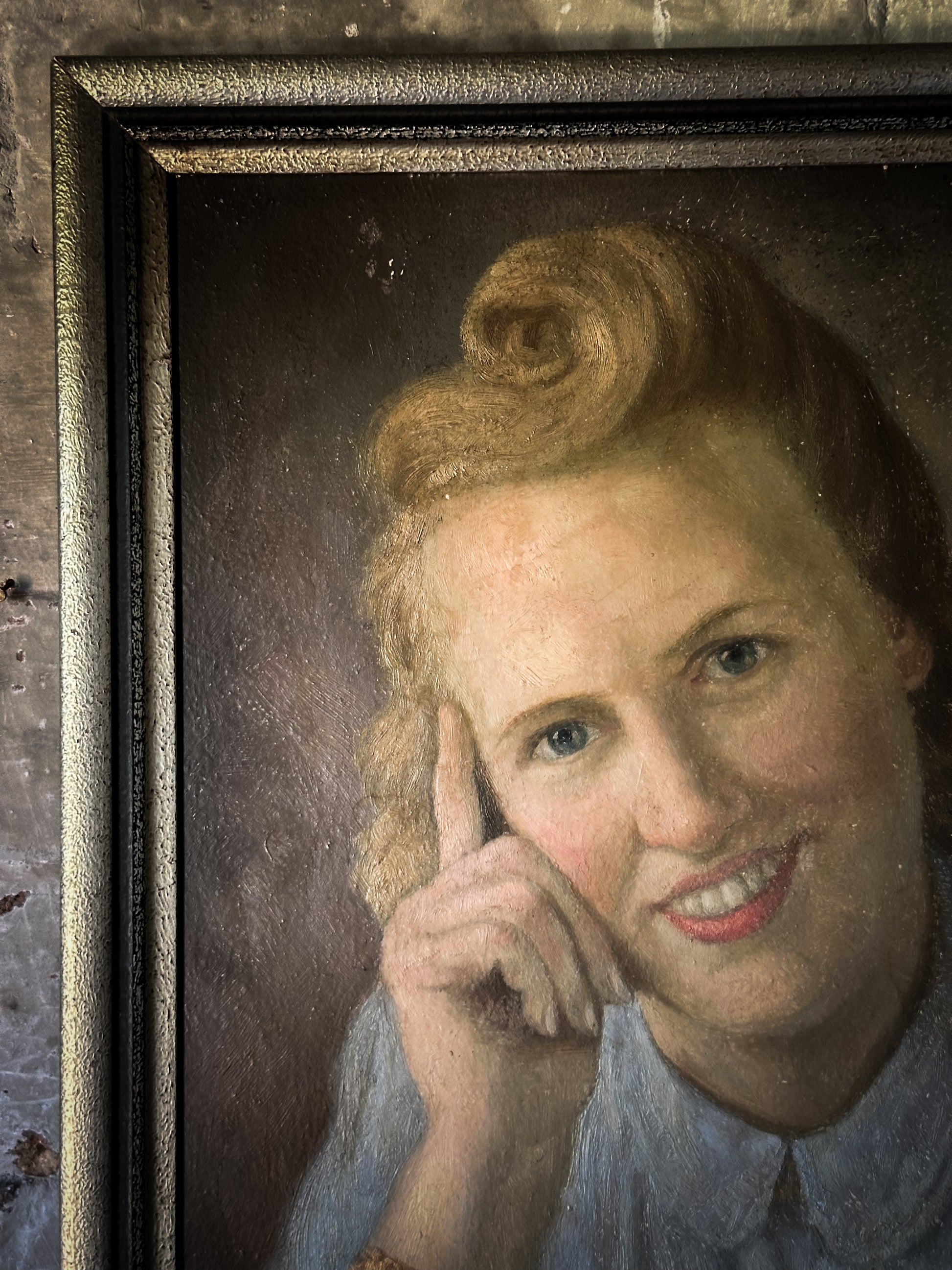 A lovely oil on board portrait of a young woman painted during the war Era.