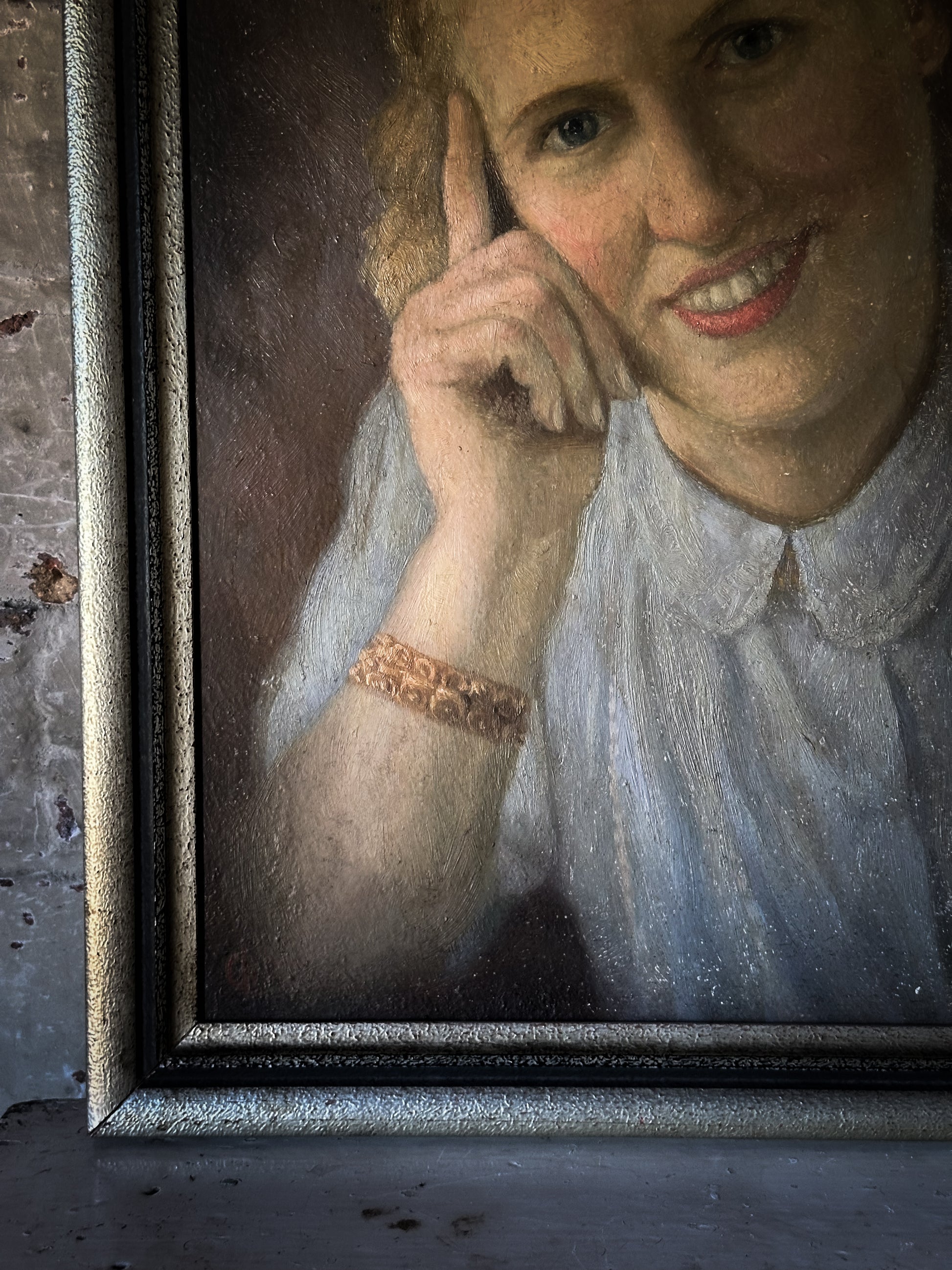 A 1930’s Oil on Board Vintage Portrait Painting of a Young Woman