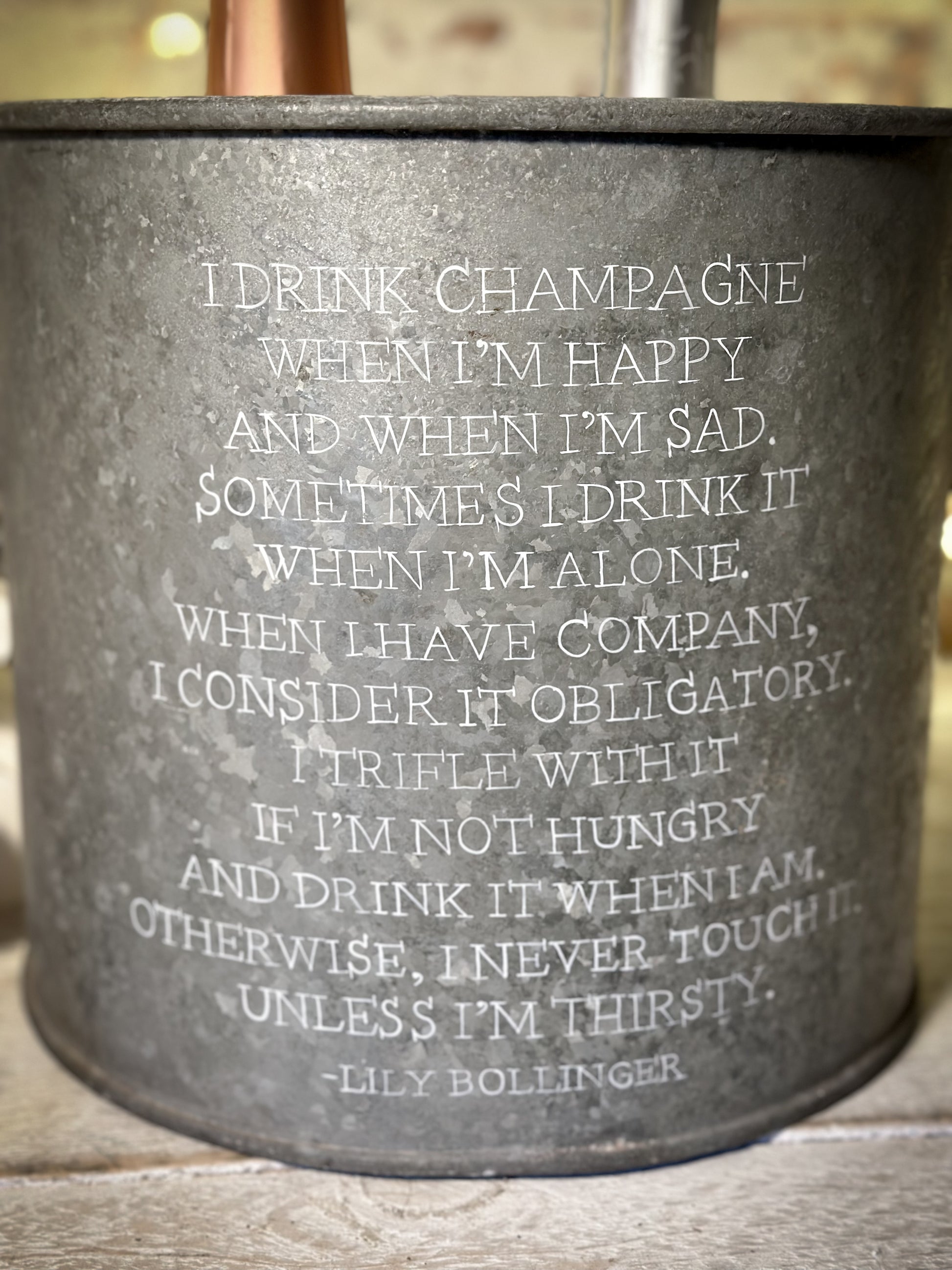 A beautiful heirloom original vintage champagne tub with Lily Bollinger quote pre-order