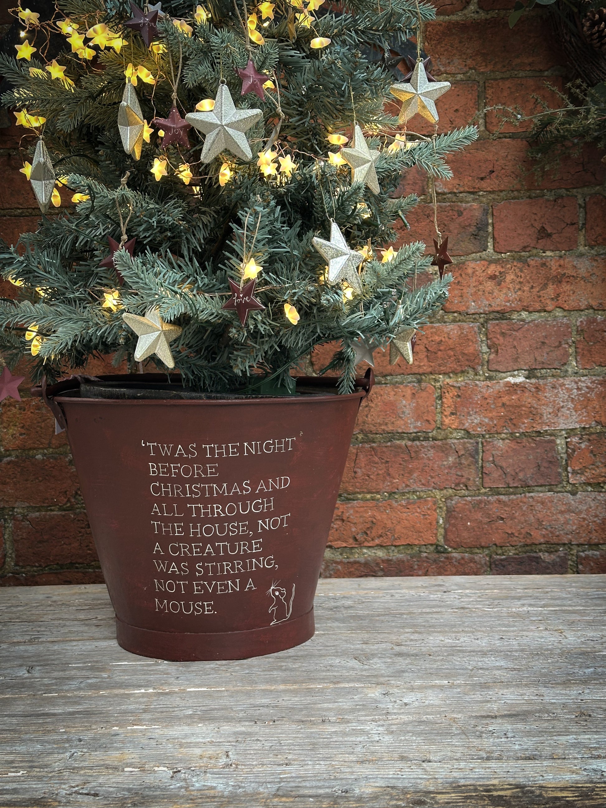 Use a potted tree or a cut tree wedged in with logs or bricks.
