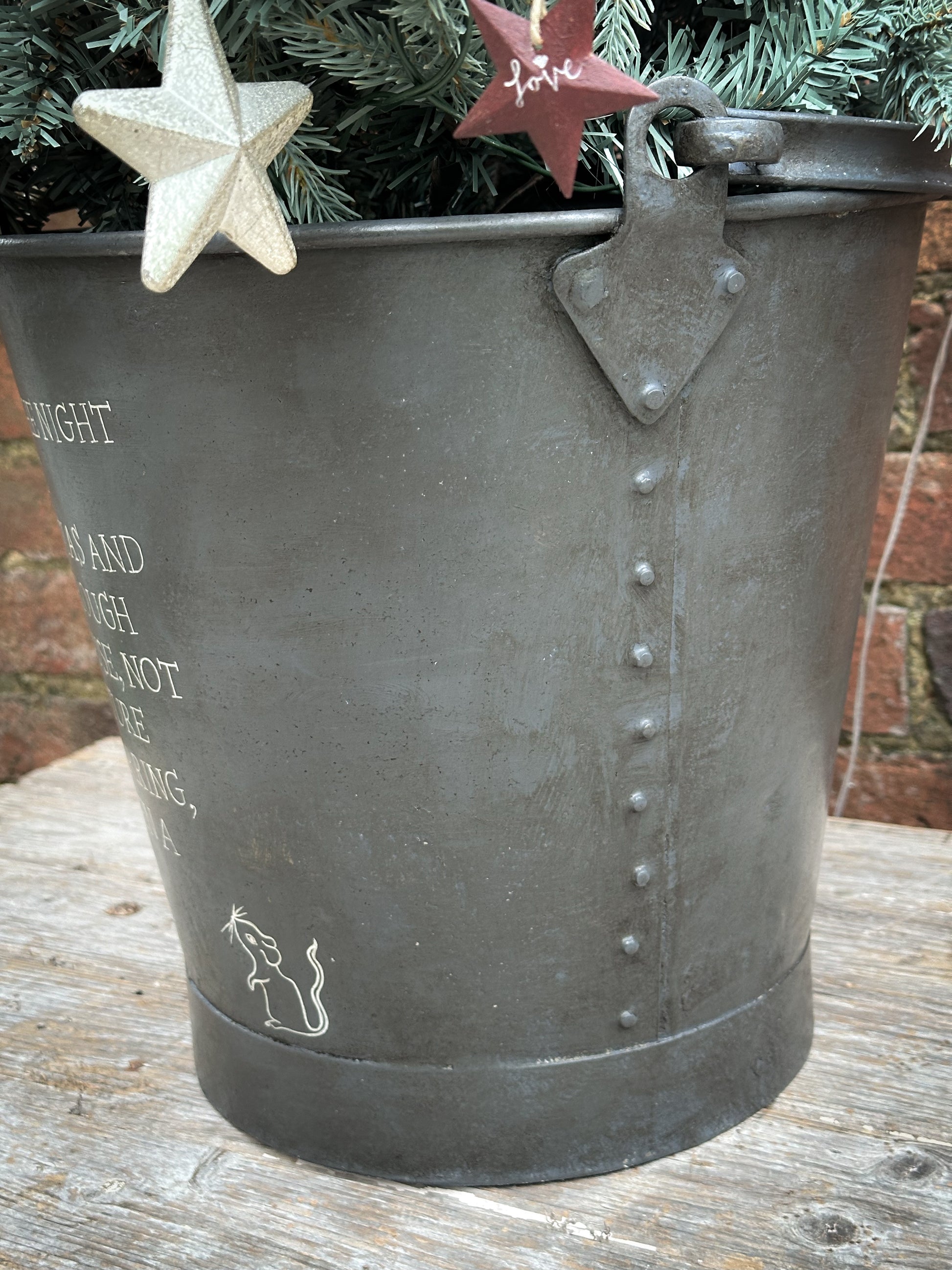 A beautiful heirloom vintage galvanised bucket hand painted using traditional sign writer’s techniques.