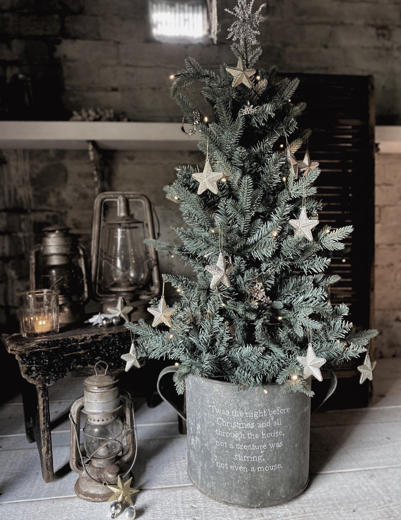 Use a potted tree or a cut tree wedged in with logs or bricks.