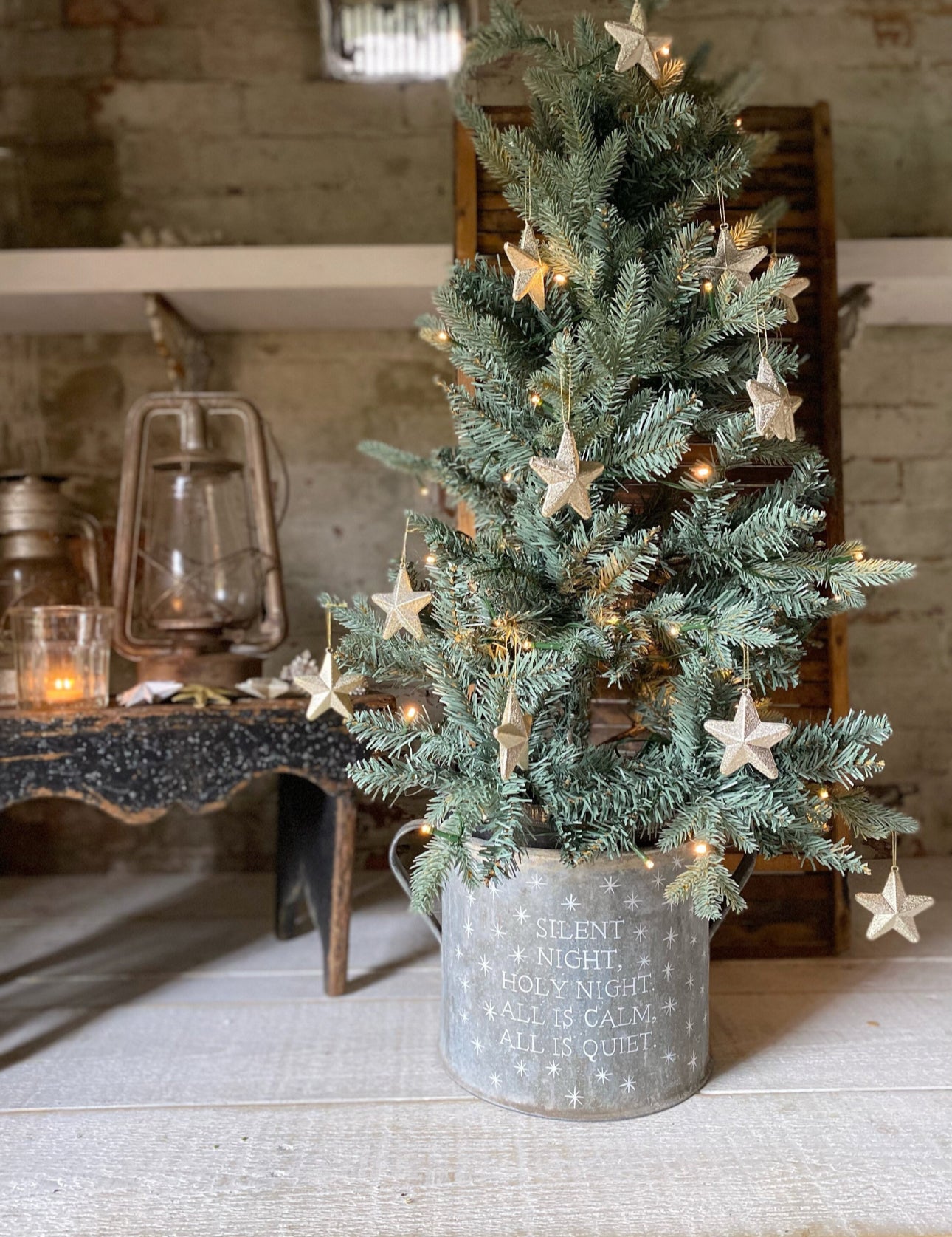 Use a potted tree or a cut tree wedged in with logs or bricks.