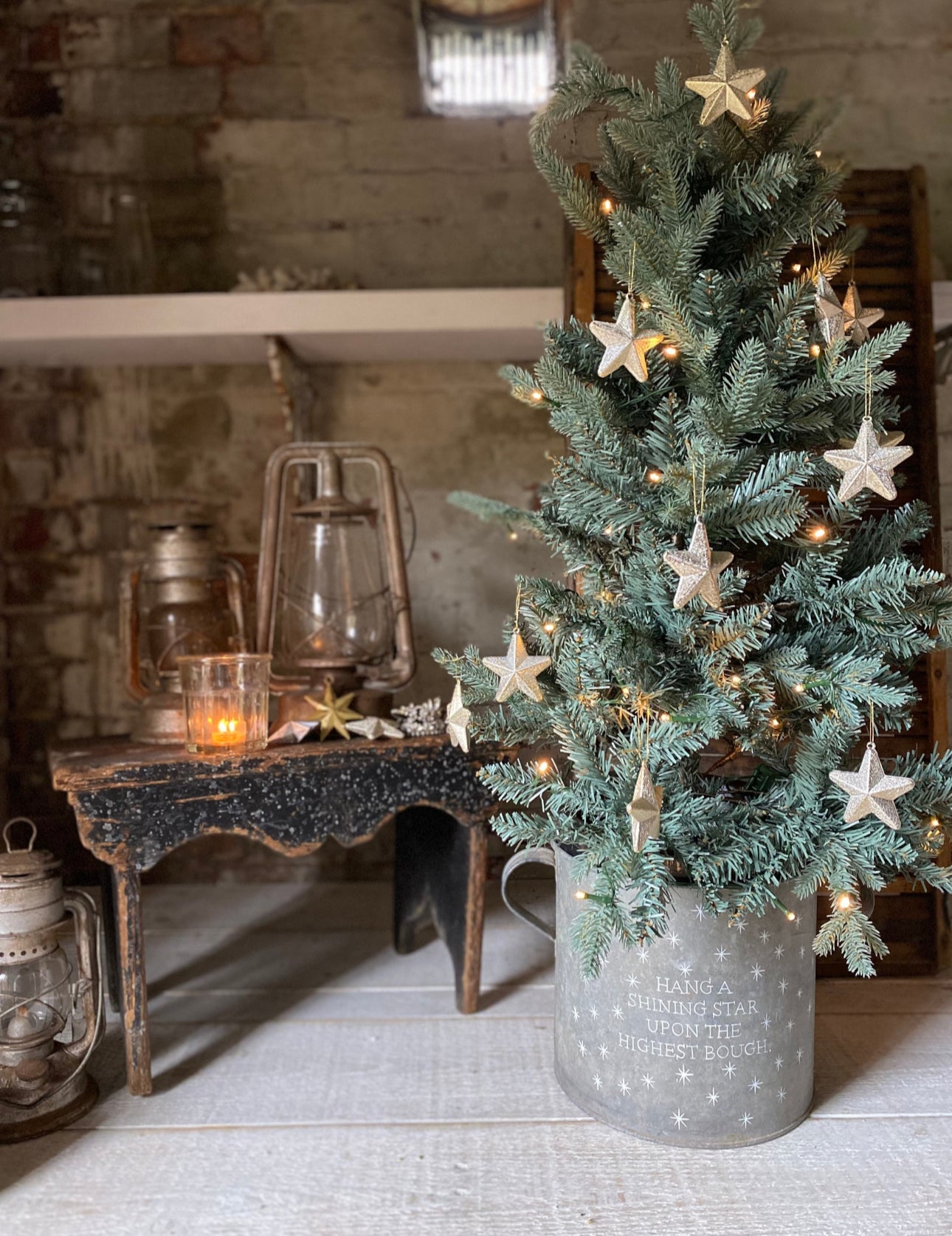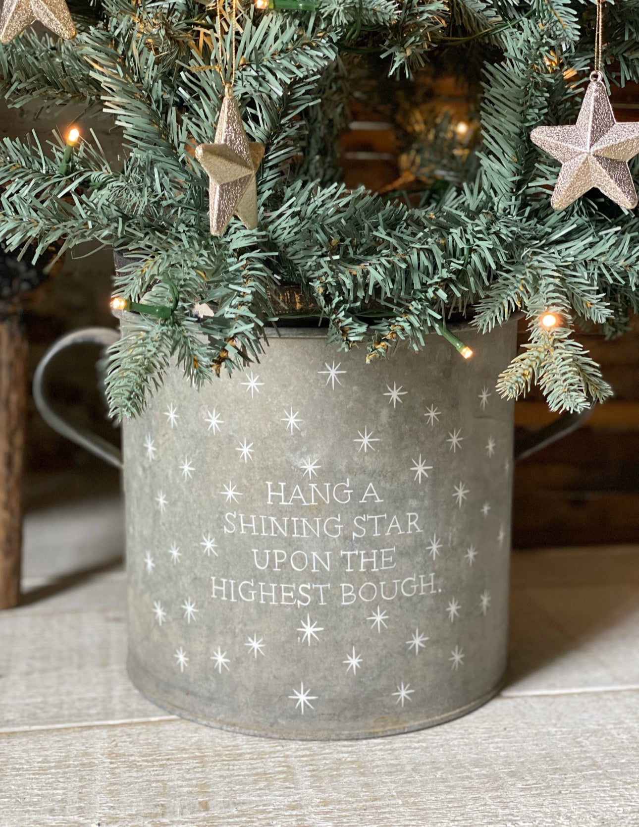 Use a potted tree or a cut tree wedged in with logs or bricks.