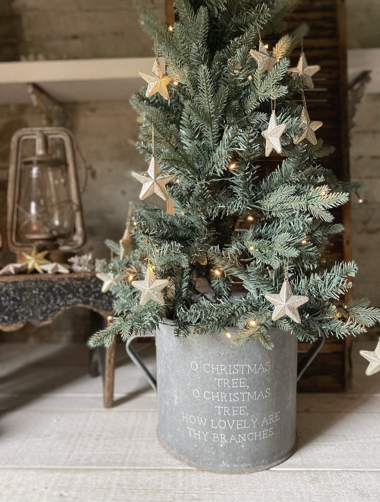 Use a potted tree or a cut tree wedged in with logs or bricks.