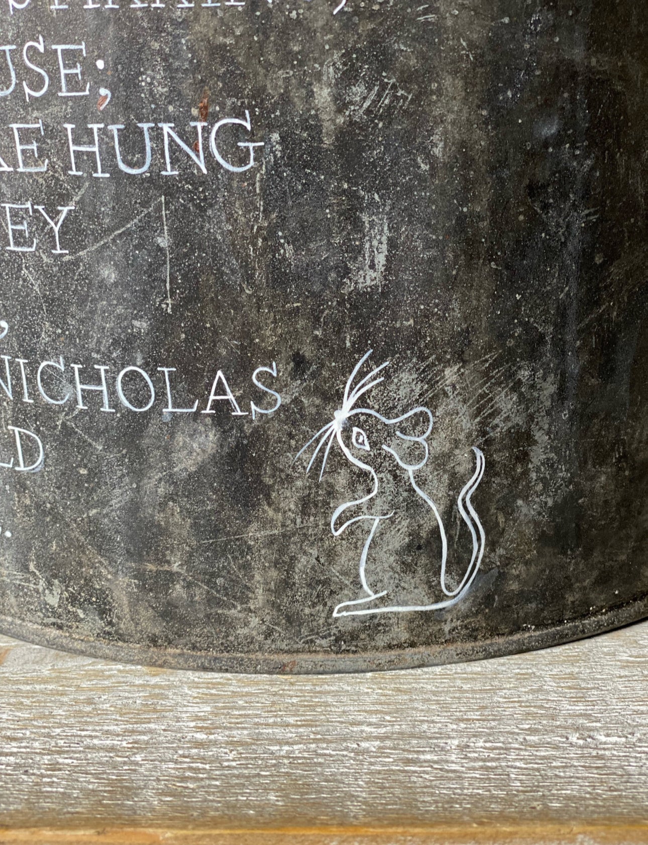 A beautiful heirloom vintage galvanised tub hand painted using traditional sign writer’s techniques with mouse illustration.