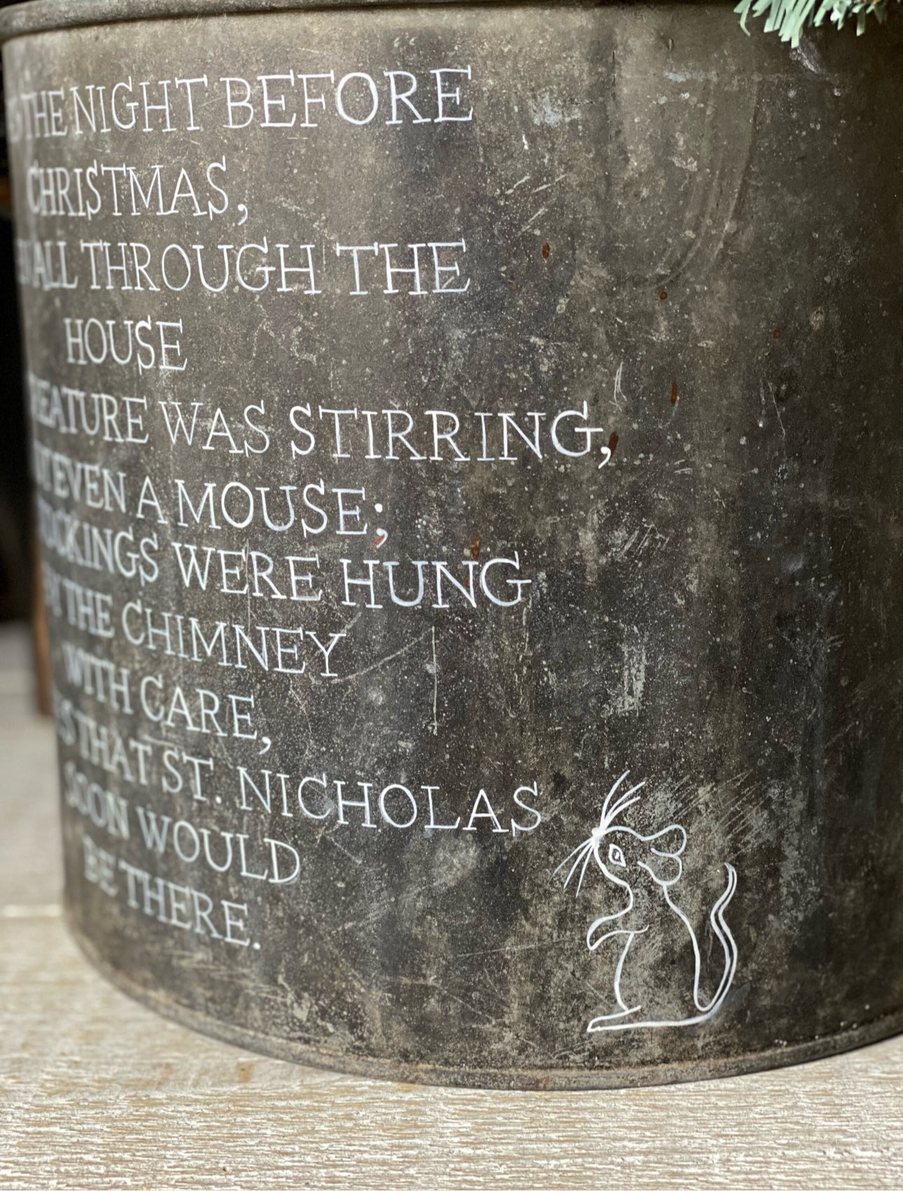 A beautiful heirloom vintage galvanised tub hand painted using traditional sign writer’s techniques and materials with mouse illustration