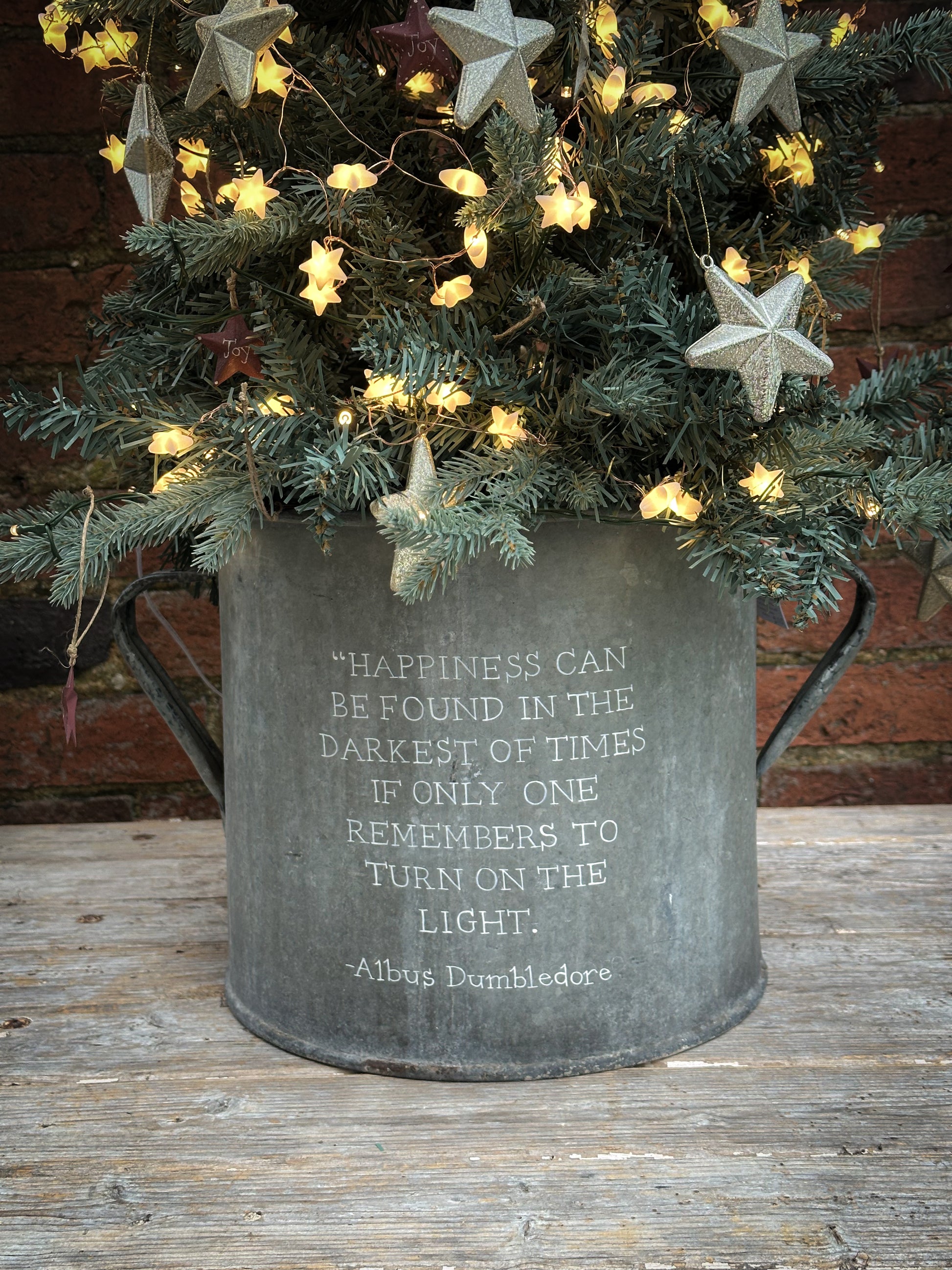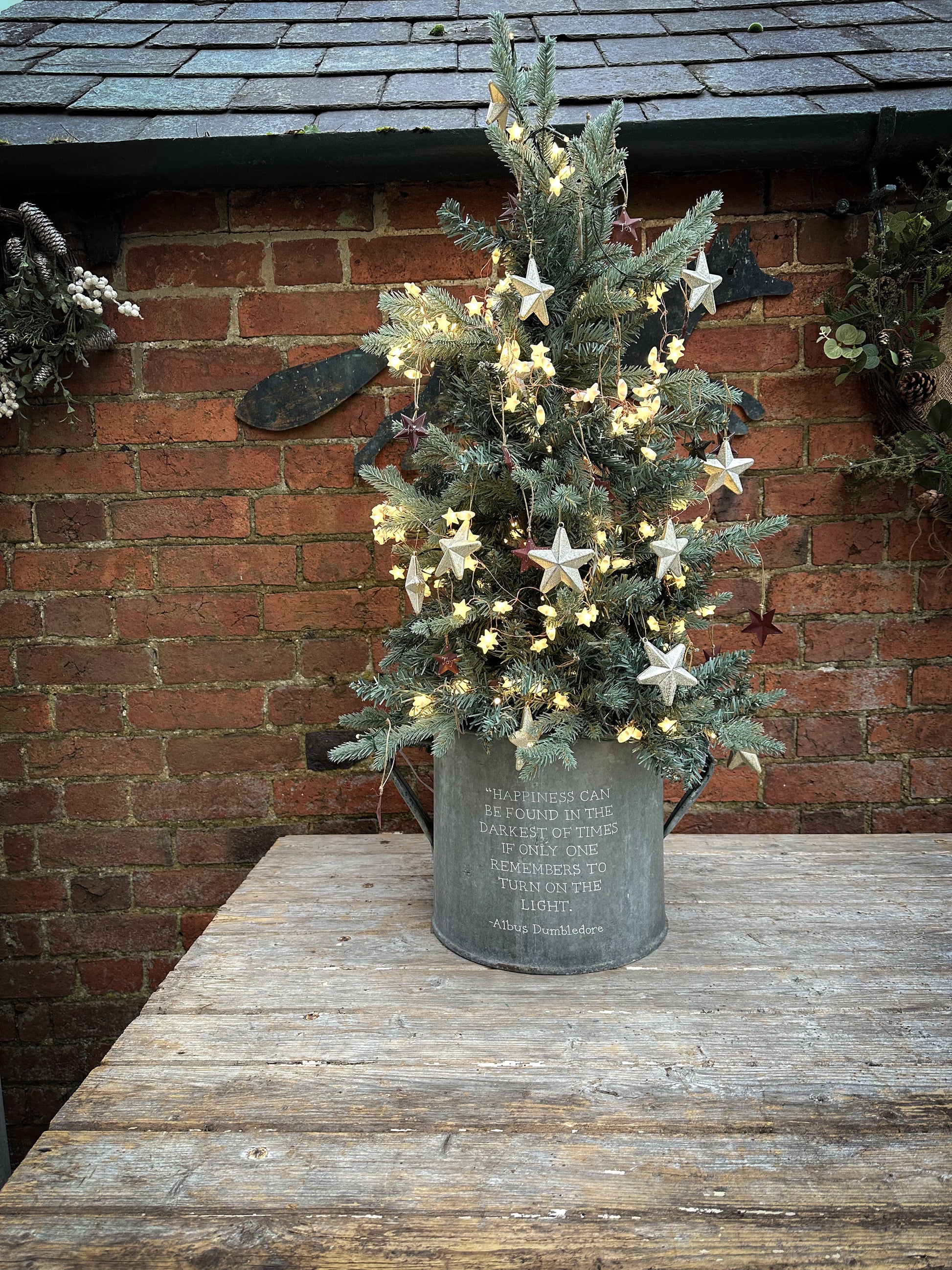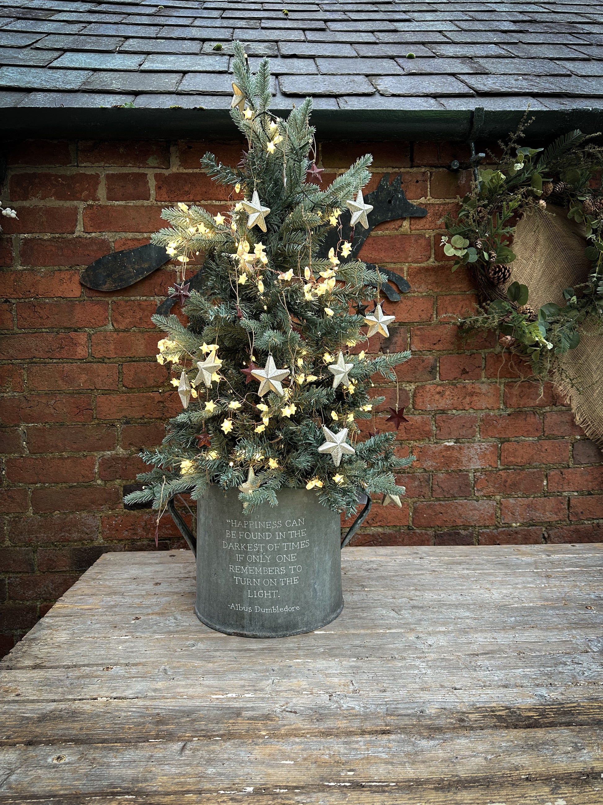 Use a potted tree or a cut tree wedged in with logs or bricks.