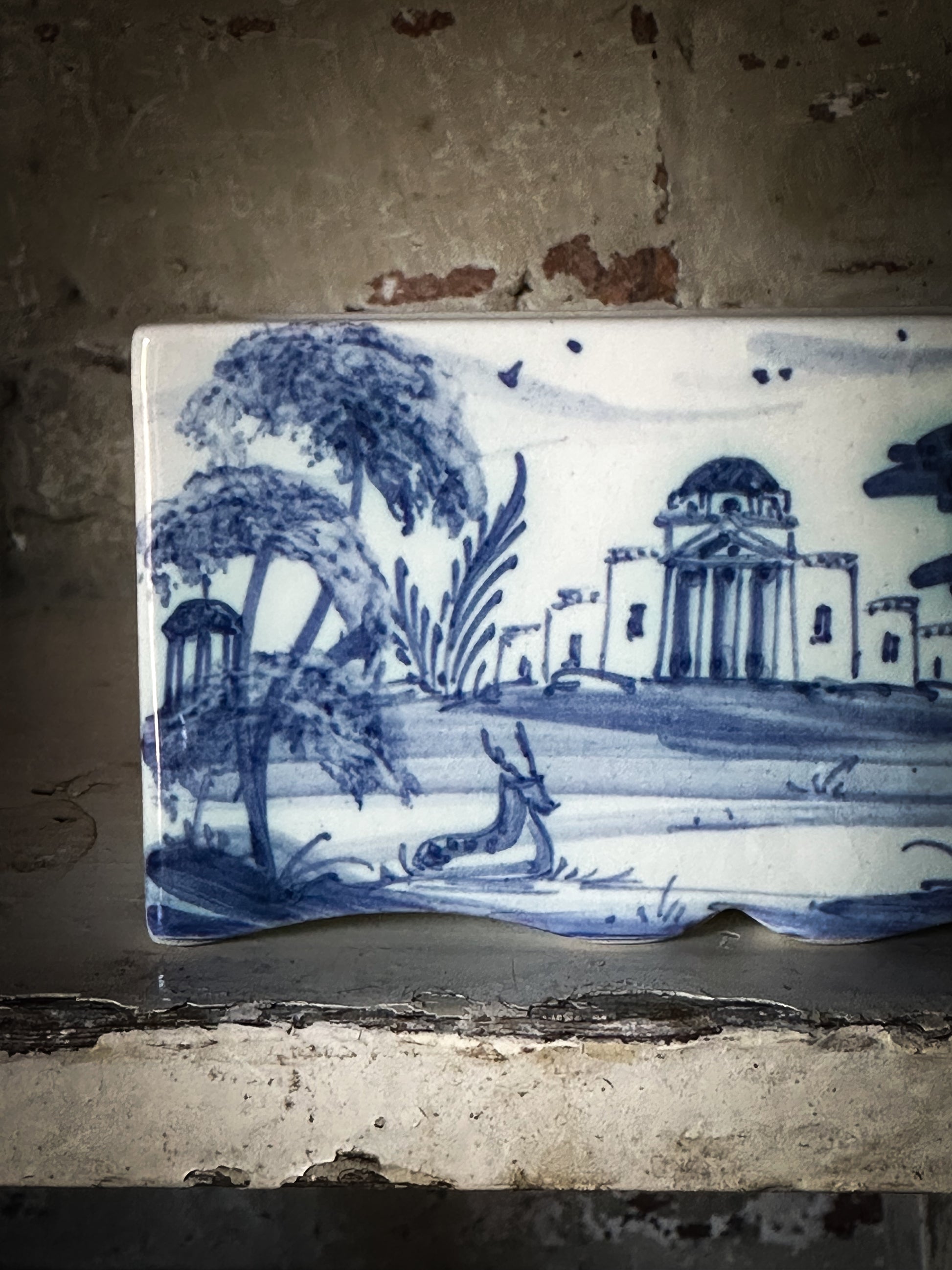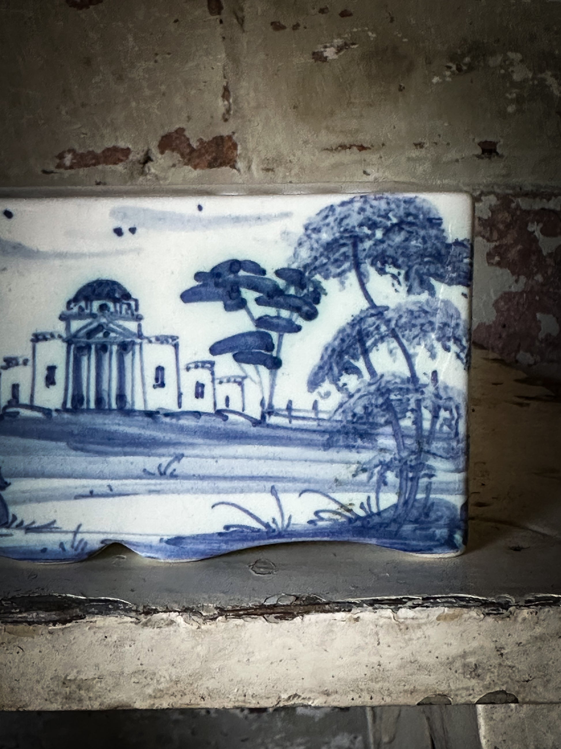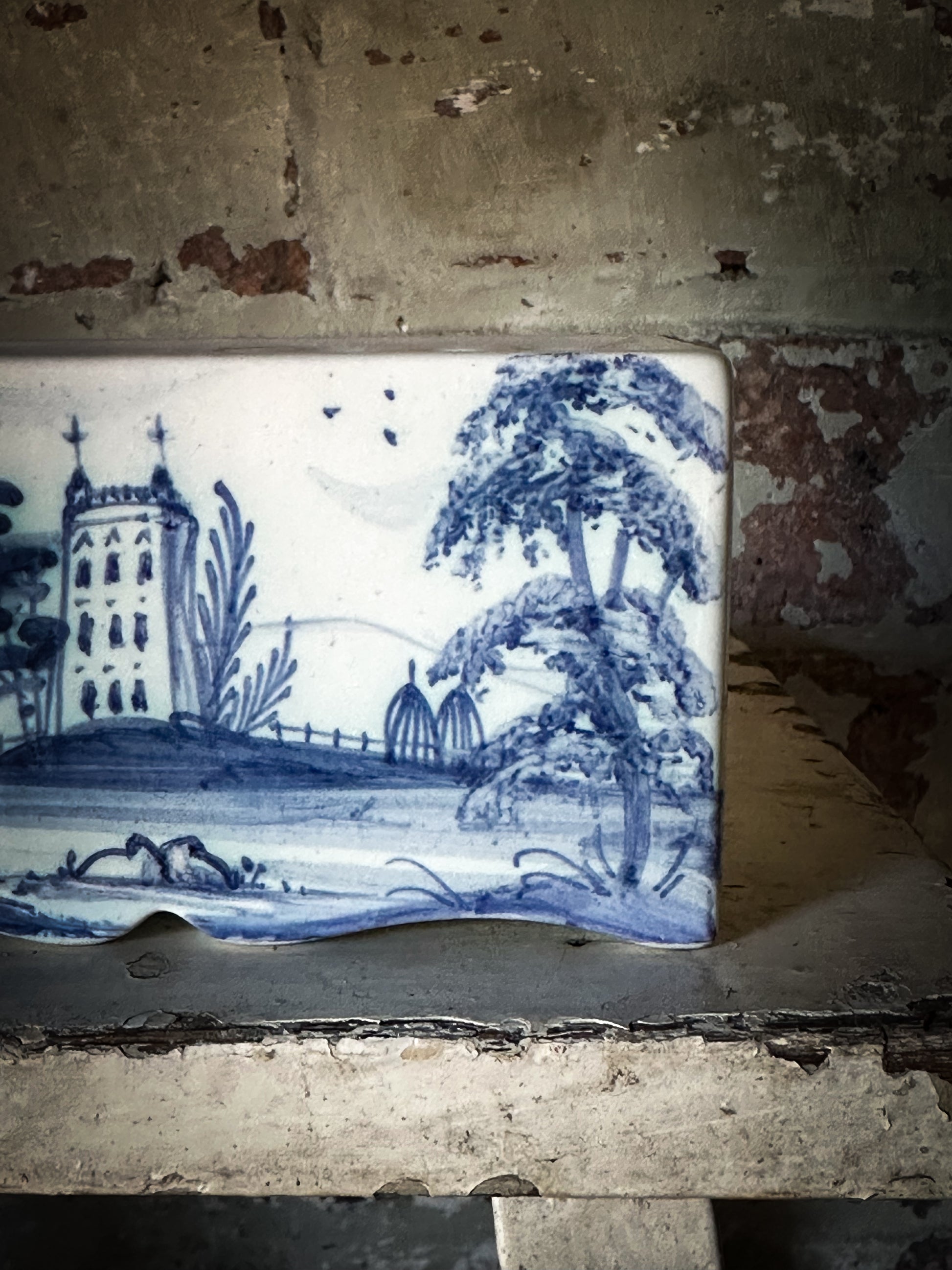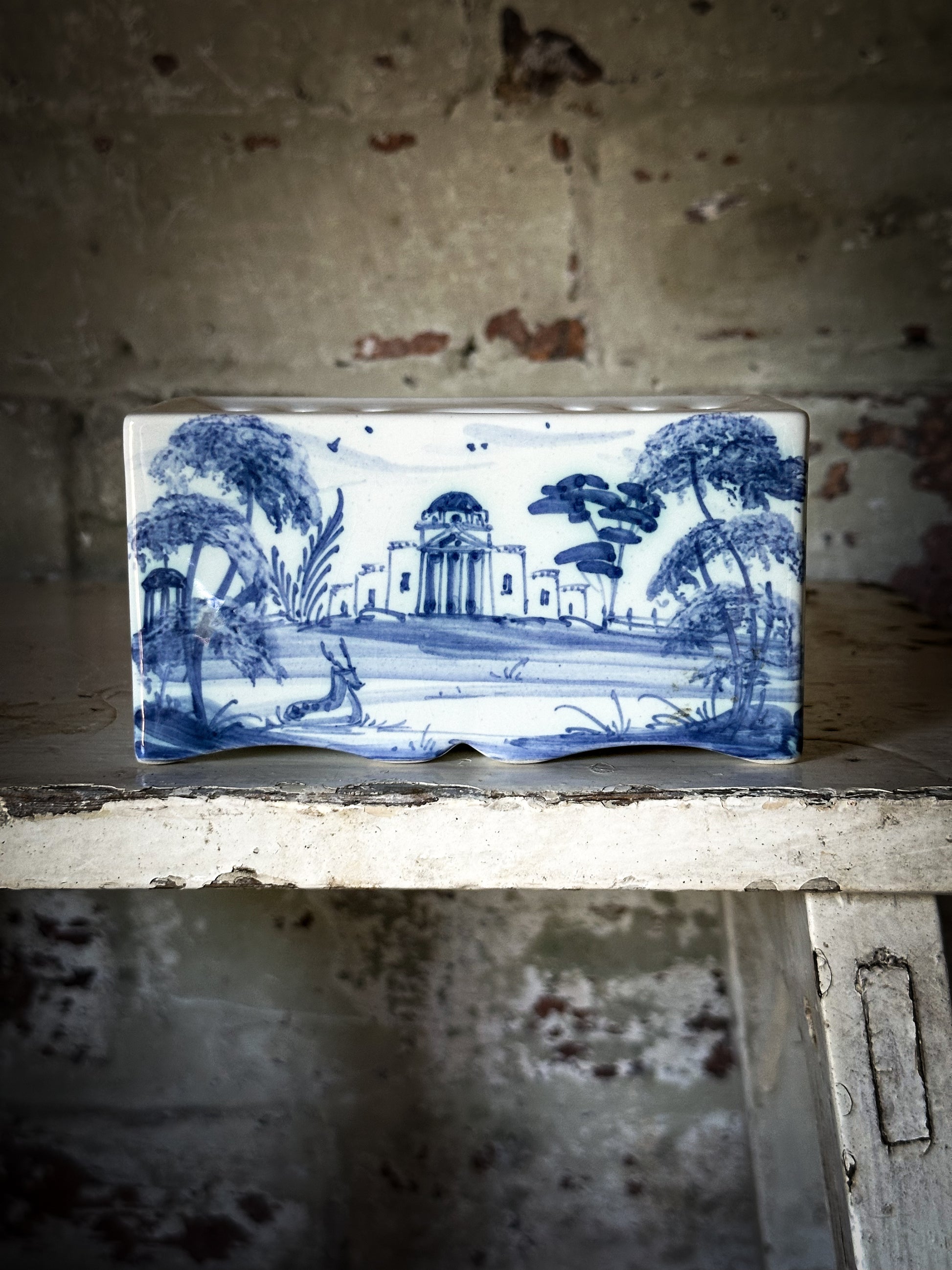 A beautiful Isis by Deborah seers Oxford, blue and white flower brick, tulipiere, flower frog, blue and white tin glaze vase