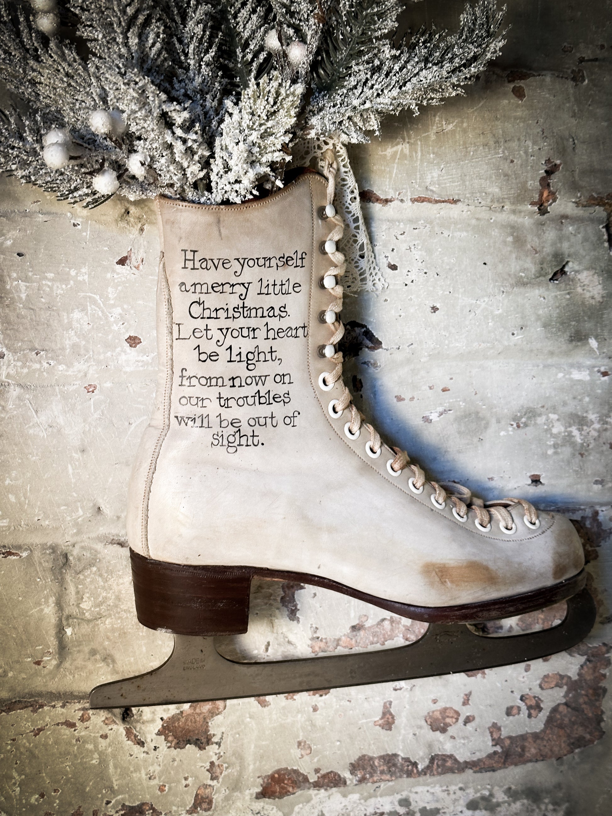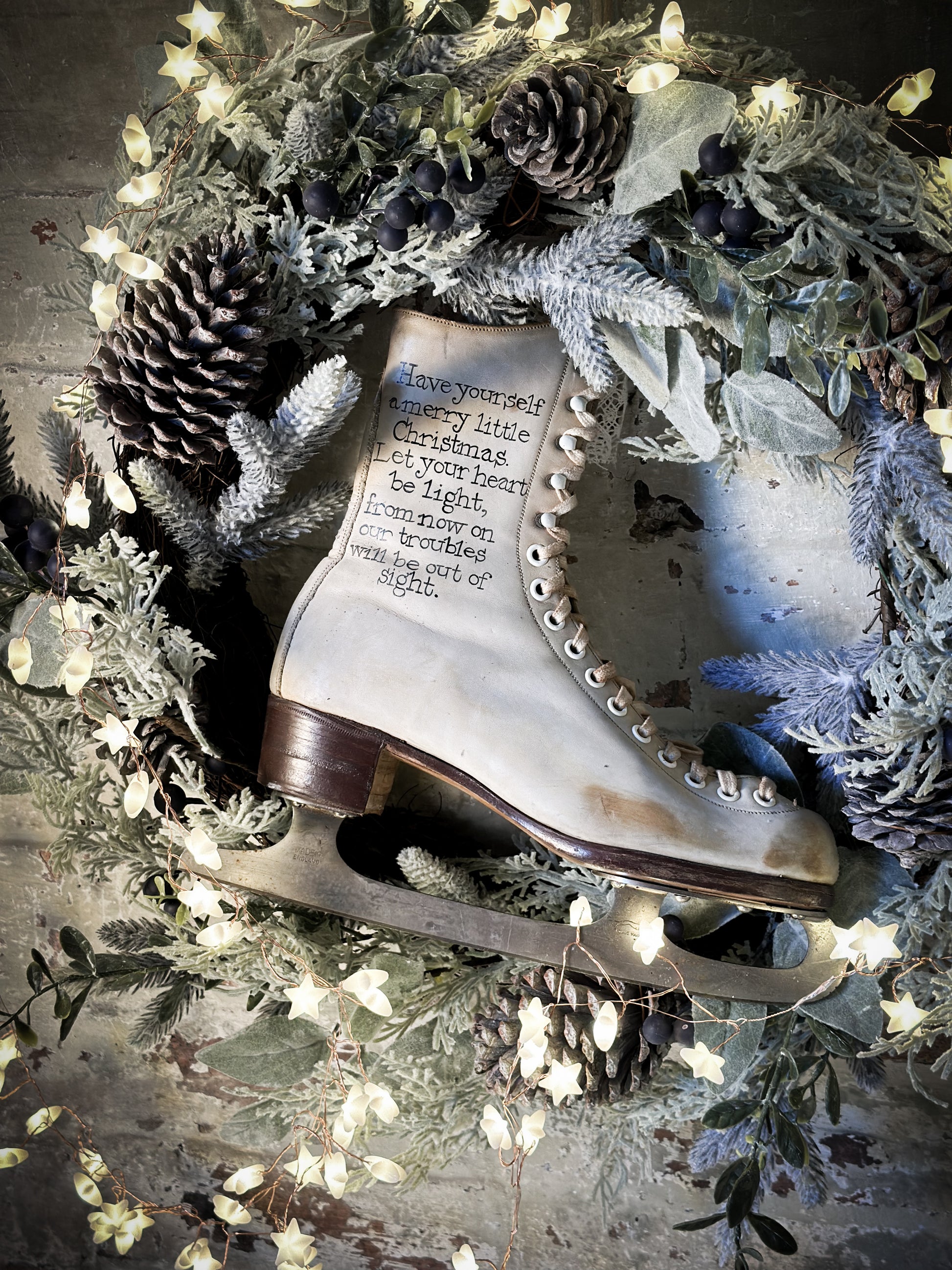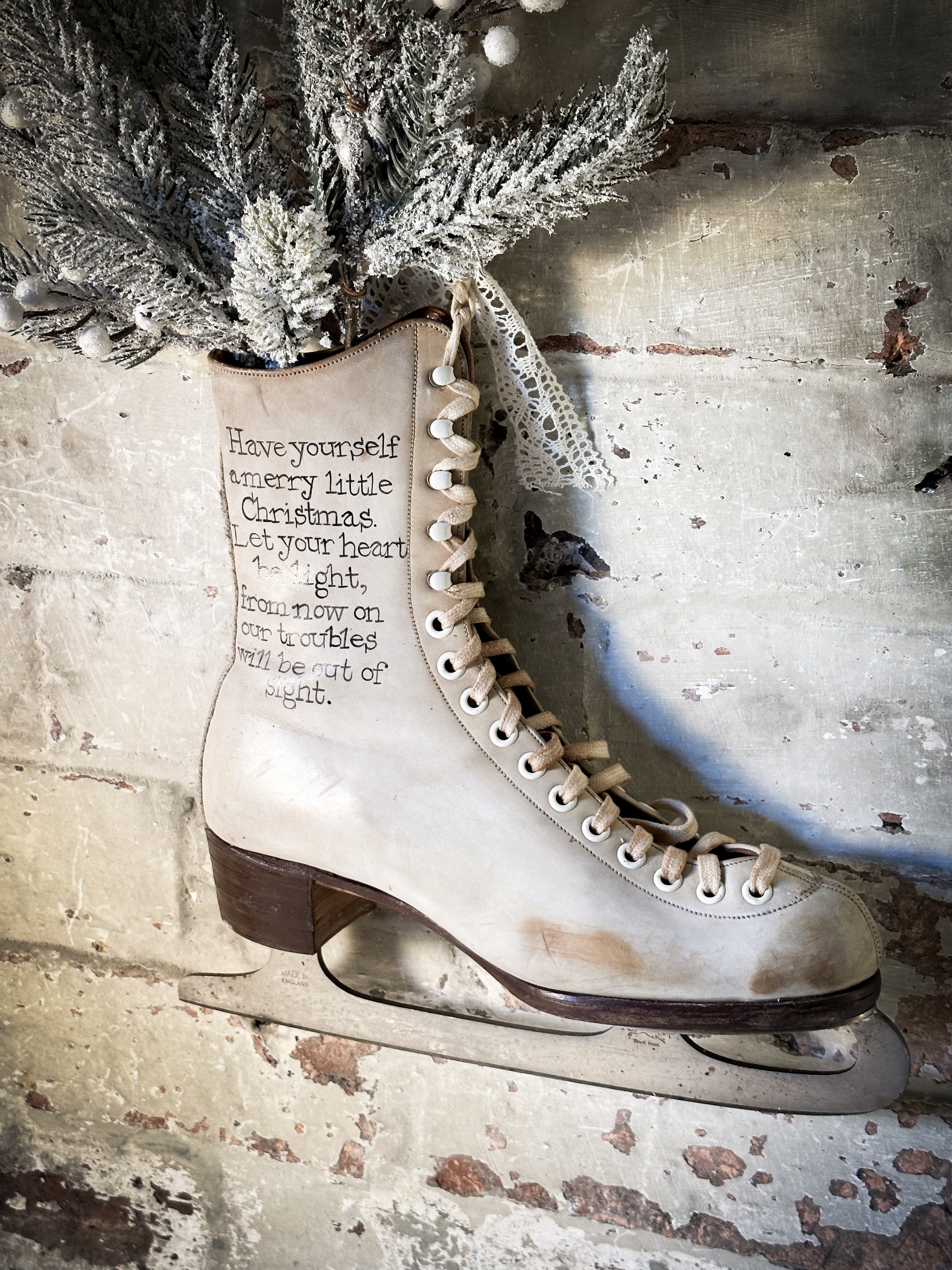 A beautiful vintage Christmas ice skate hand painted using traditional sign writer’s techniques and materials