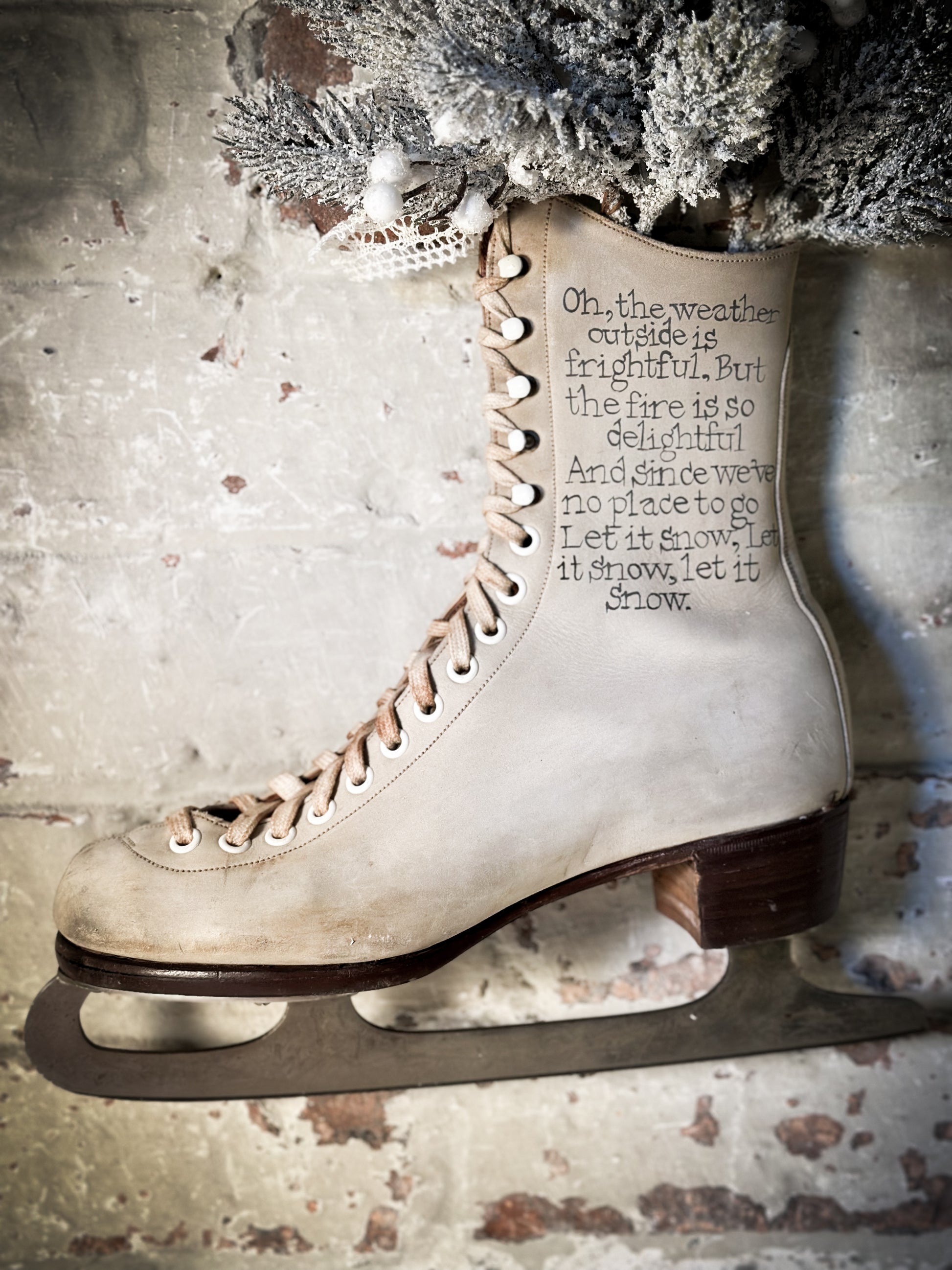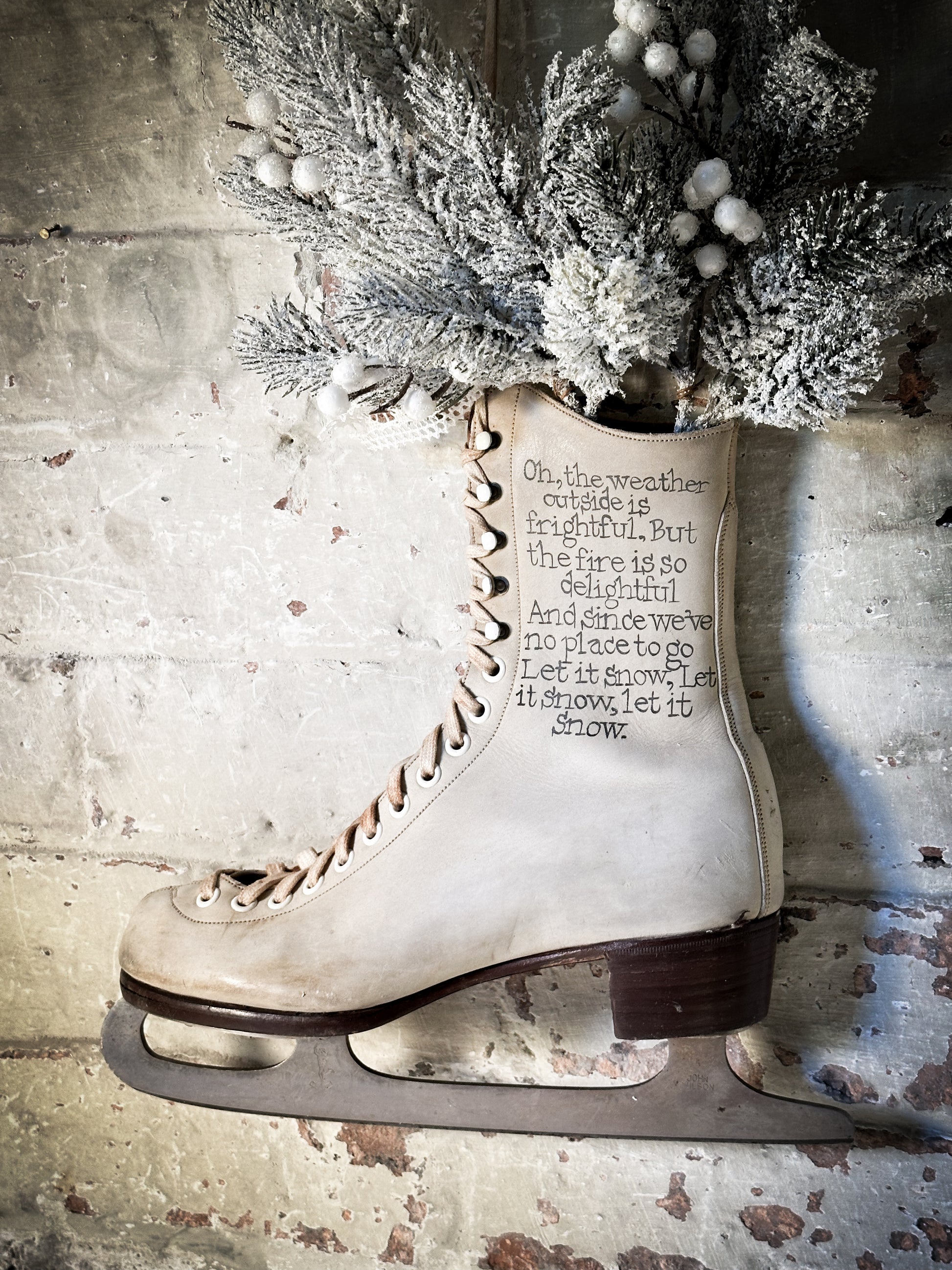 A beautiful vintage Christmas ice skate hand painted using traditional sign writer’s techniques and materials.