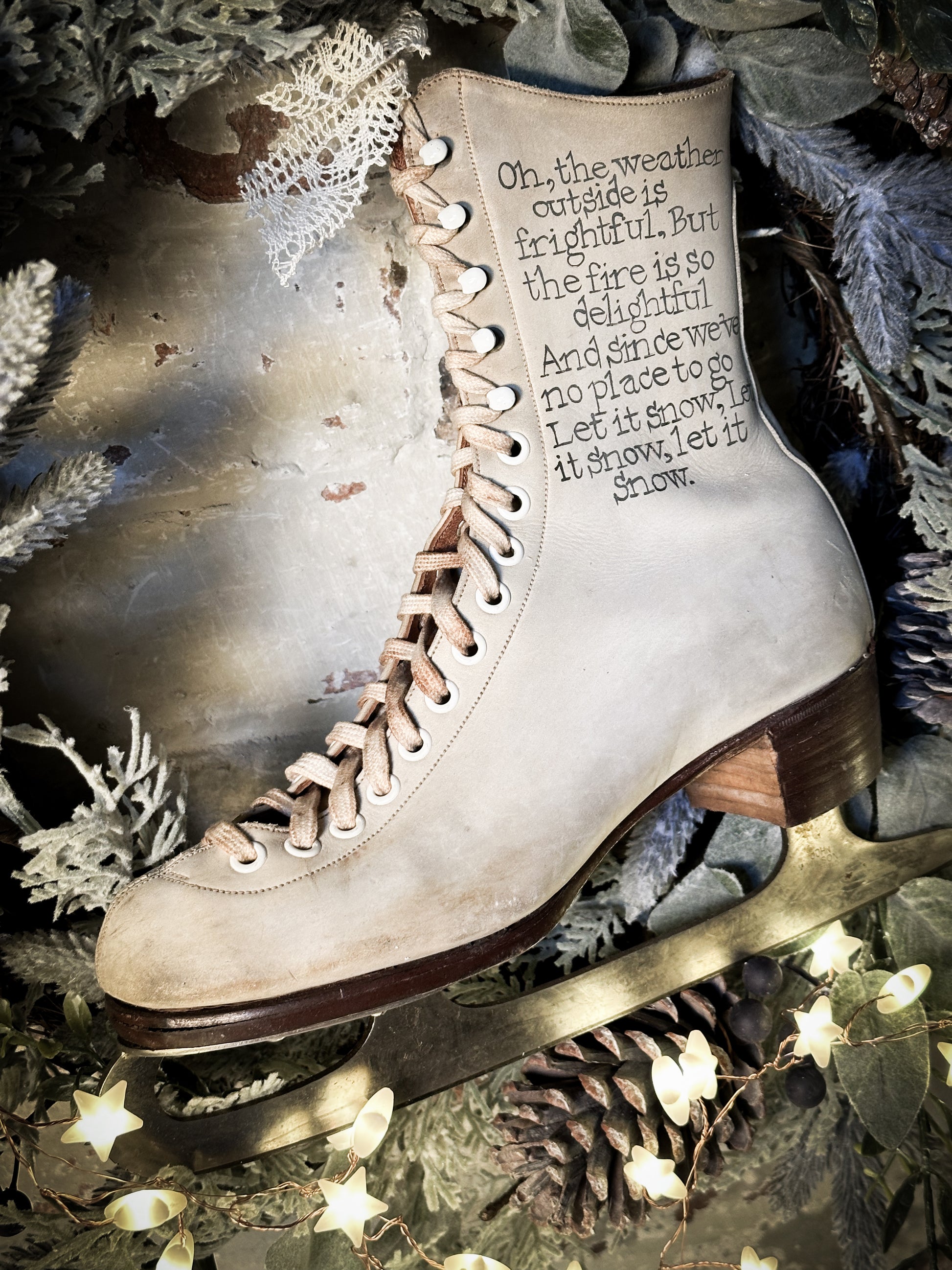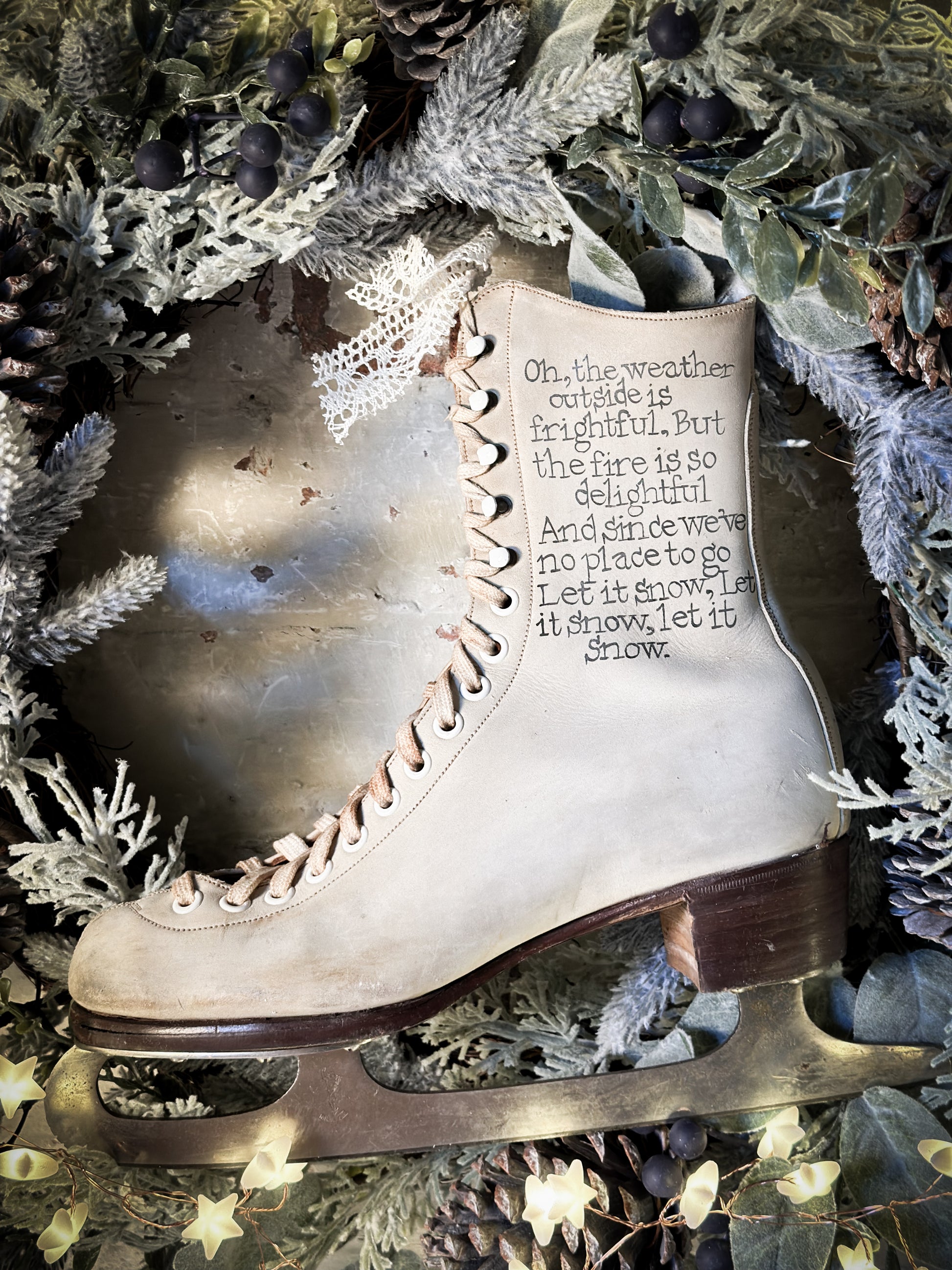 A beautiful vintage Christmas ice skate hand painted using traditional sign writer’s techniques and materials