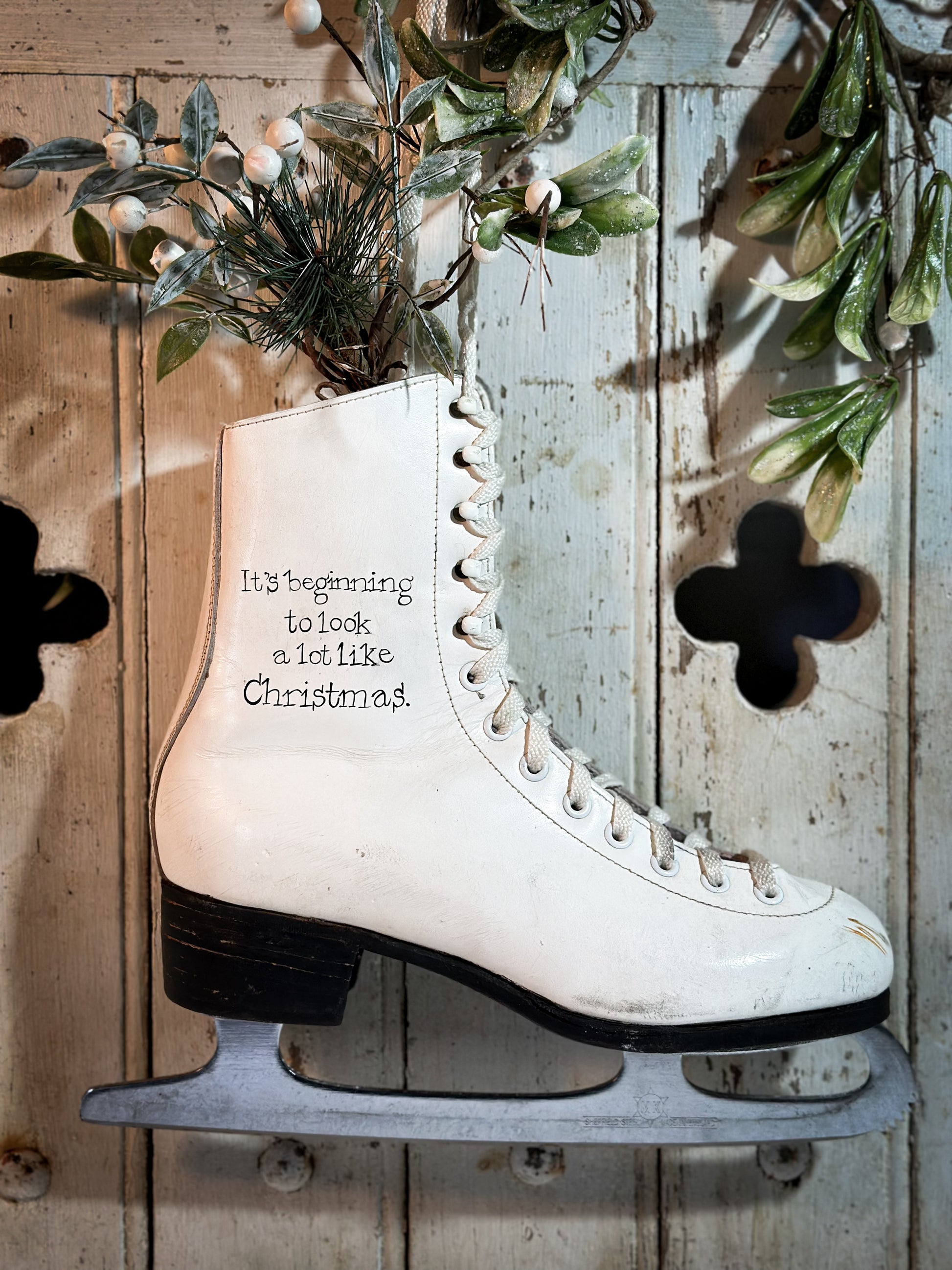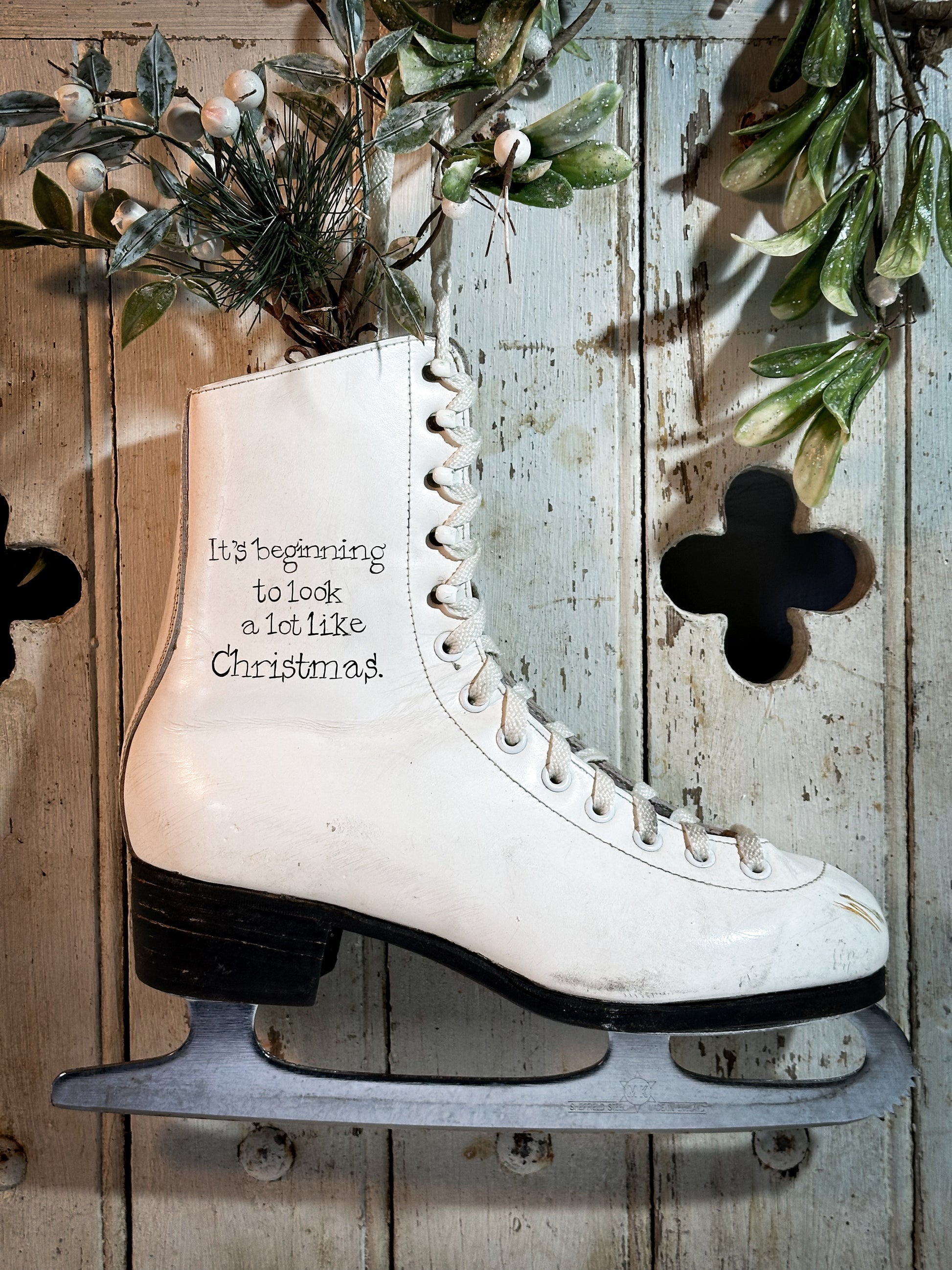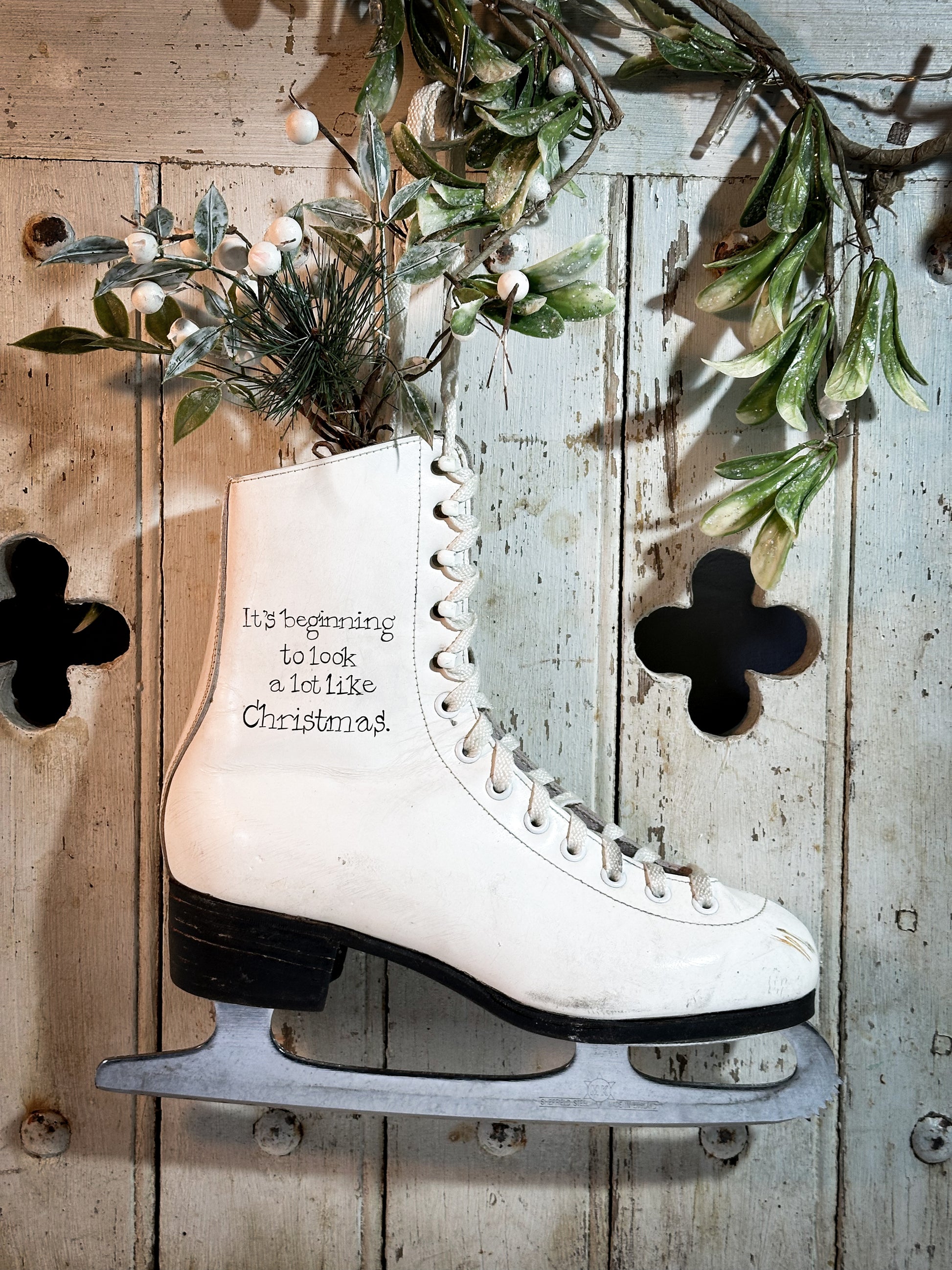A beautiful vintage Christmas ice skate hand painted using traditional sign writer’s techniques and materials