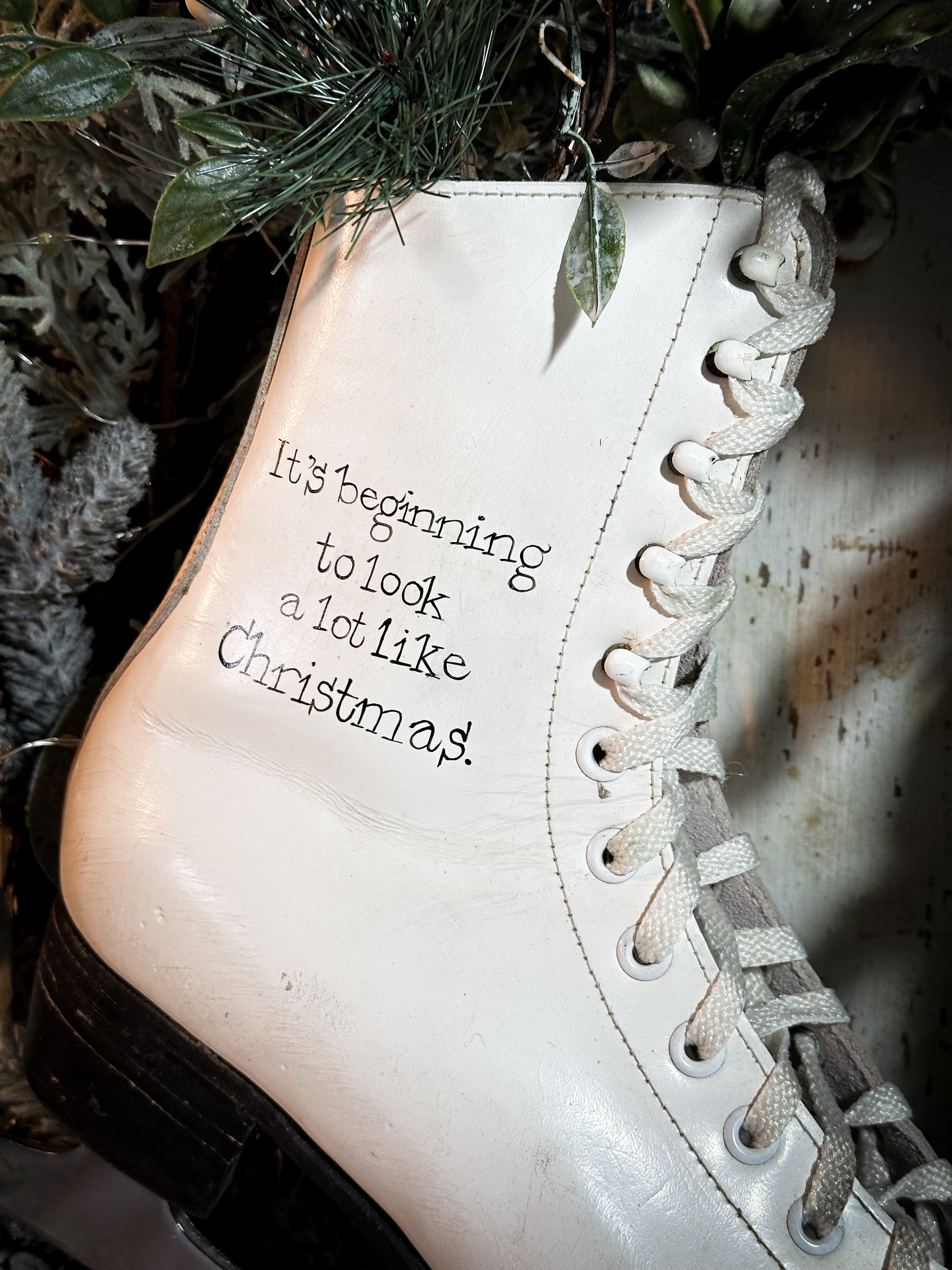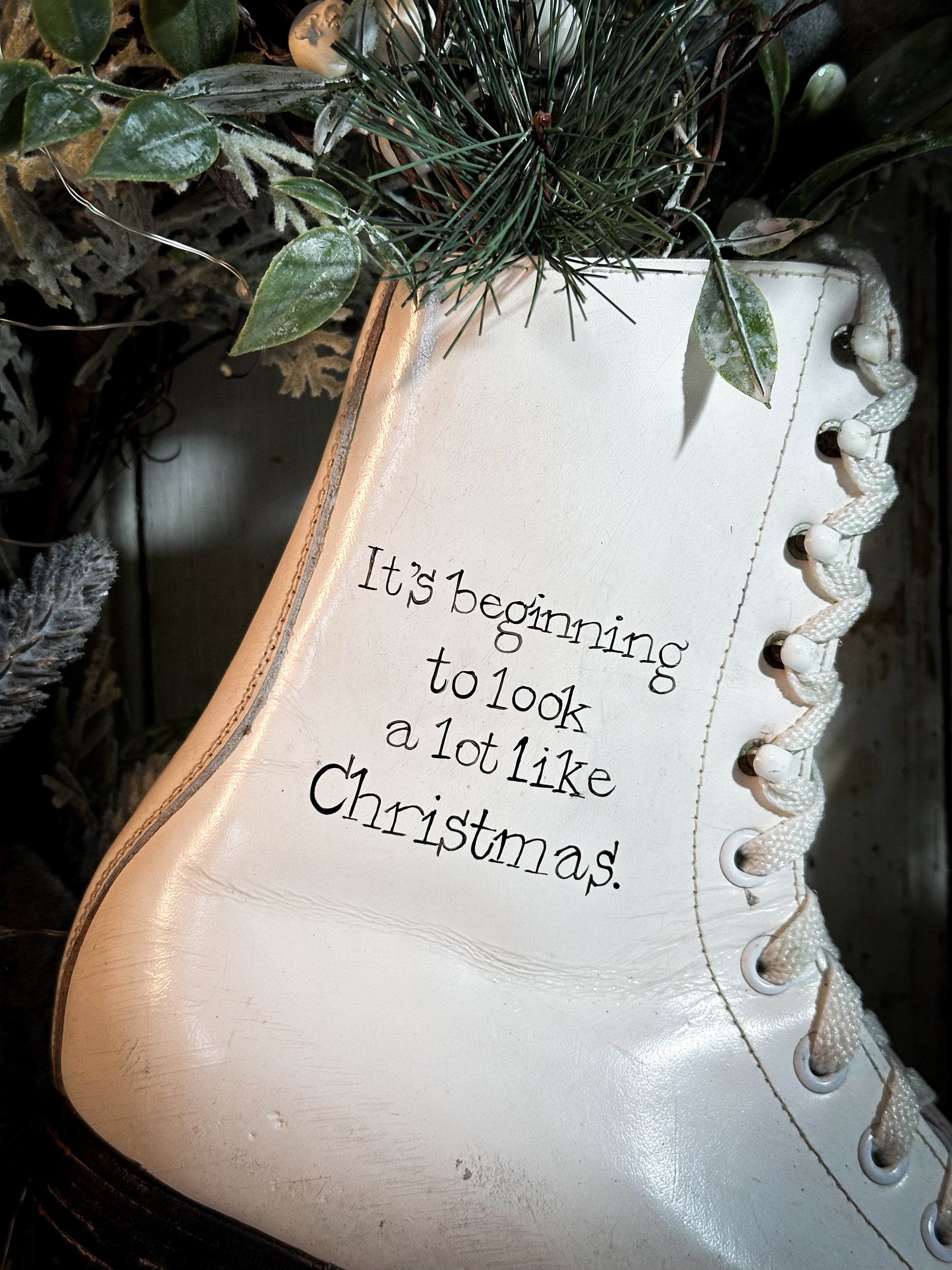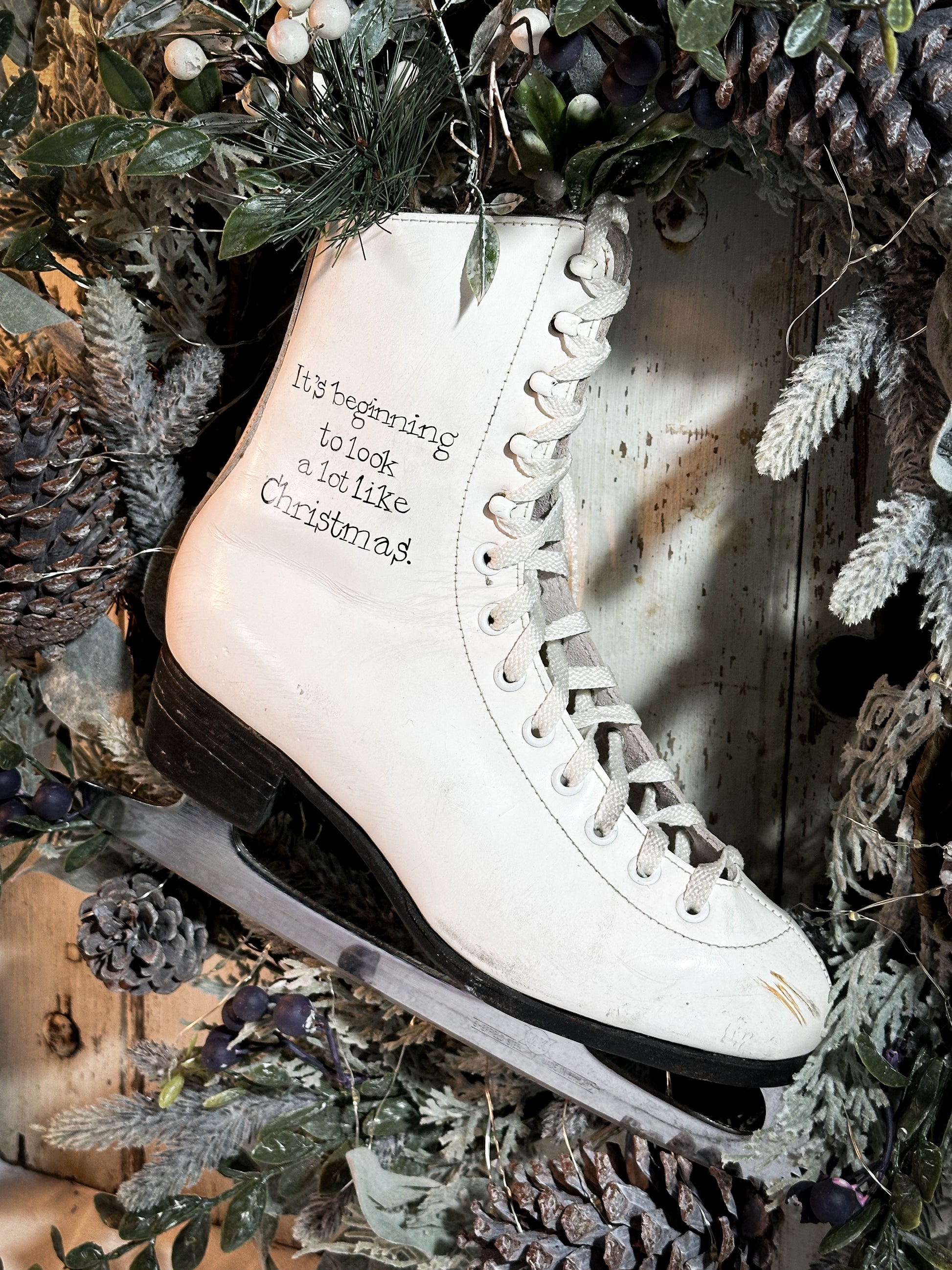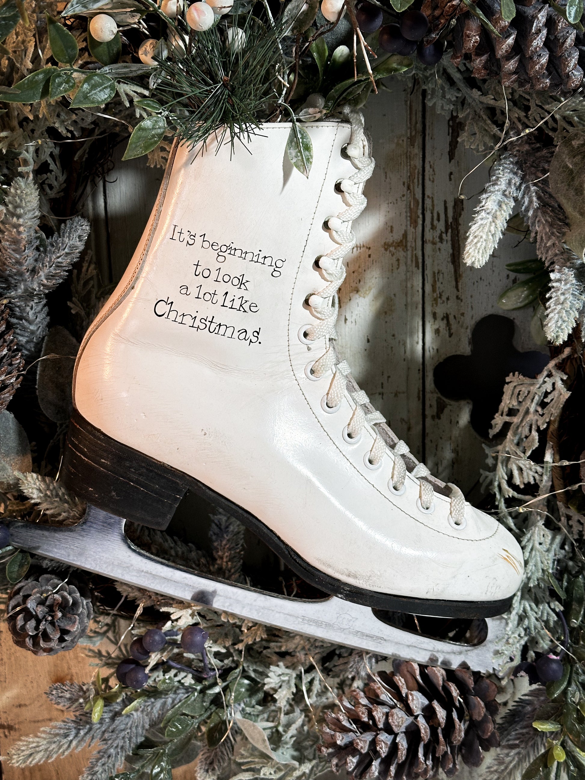 A beautiful vintage Christmas ice skate hand painted using traditional sign writer’s techniques and materials
