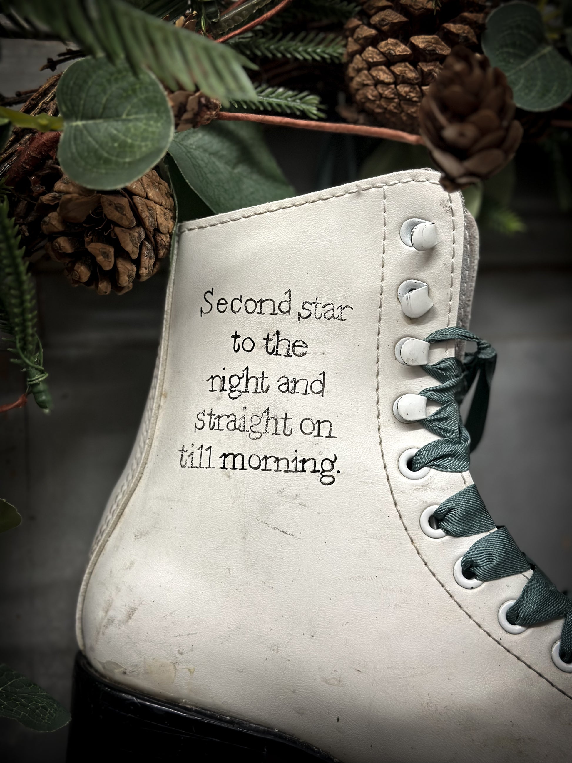 A beautiful vintage Christmas ice skate hand painted using traditional sign writer’s techniques and materials.
