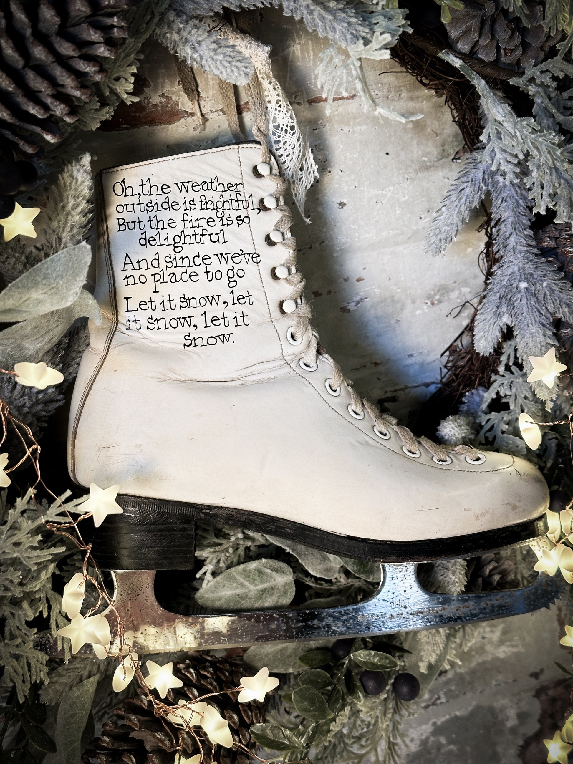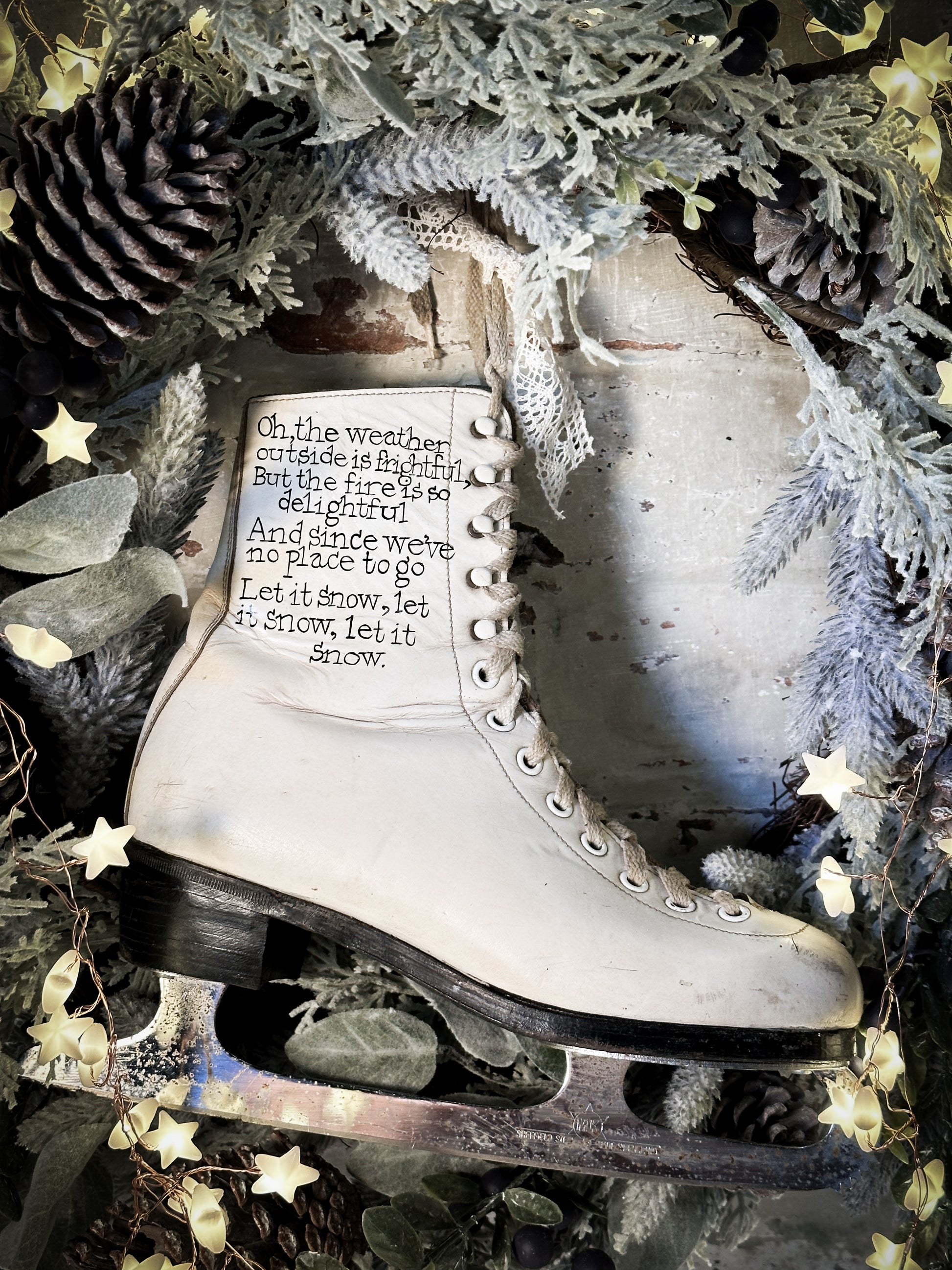 A beautiful vintage Christmas ice skate hand painted using traditional sign writer’s techniques and materials