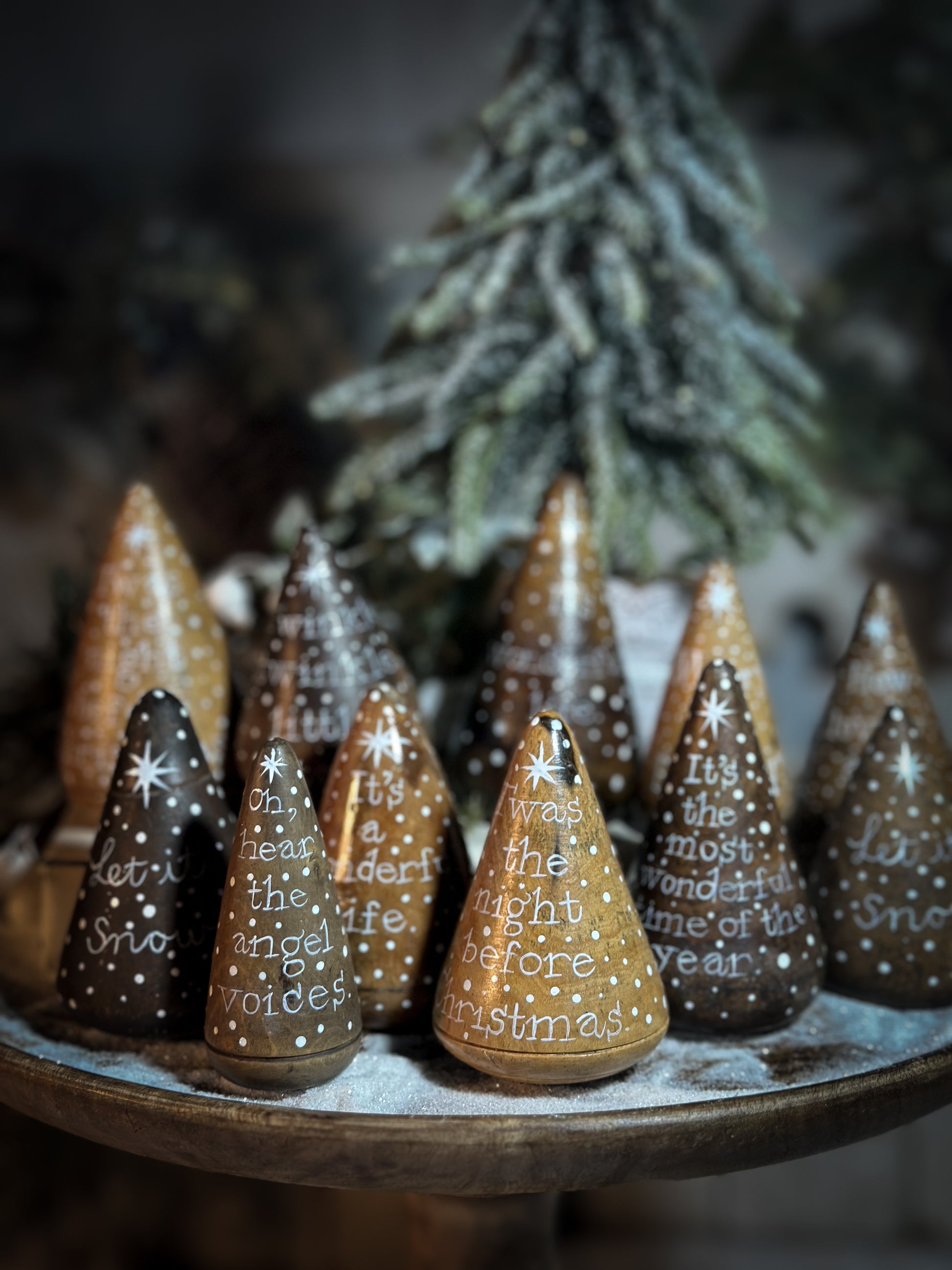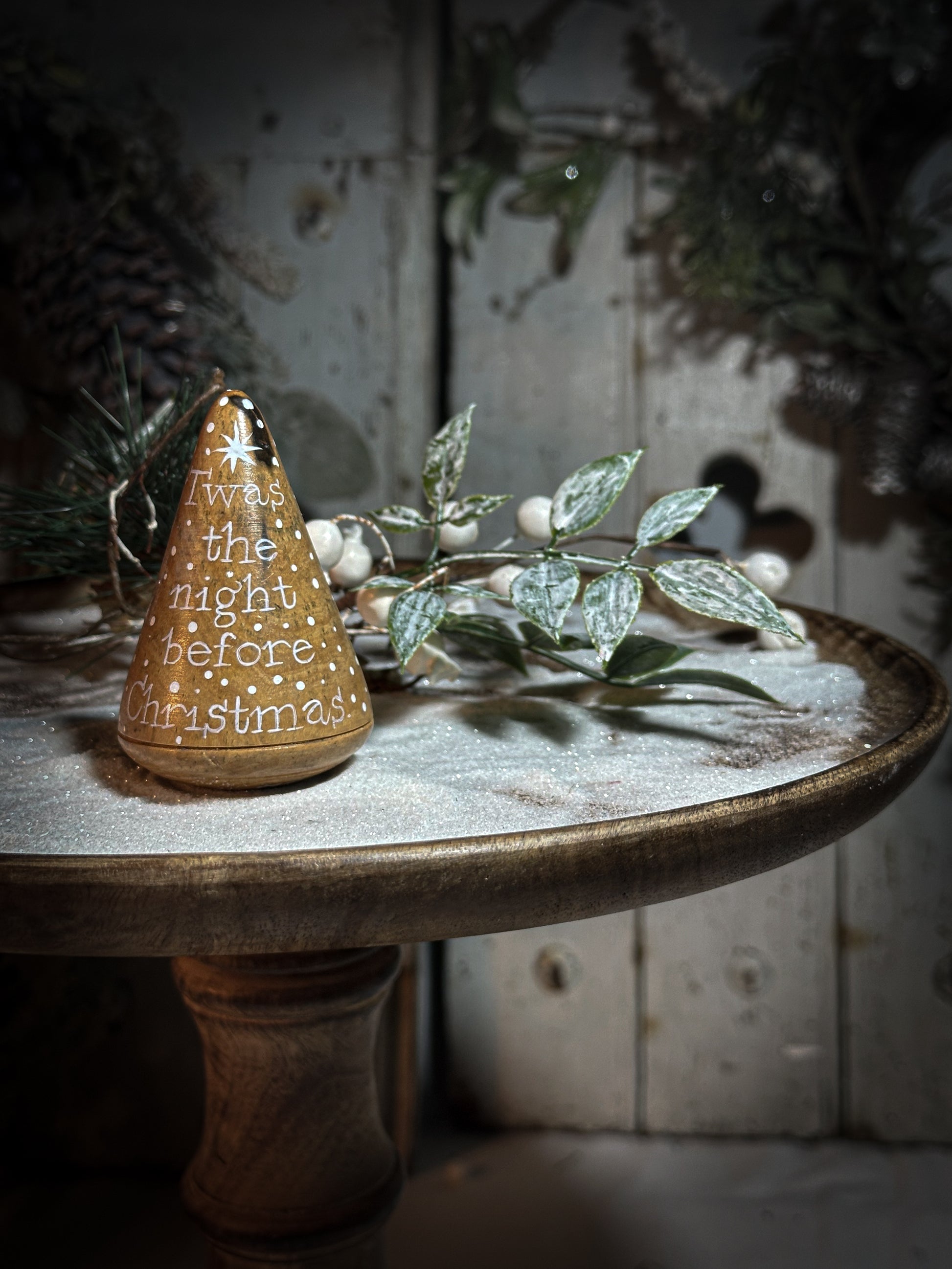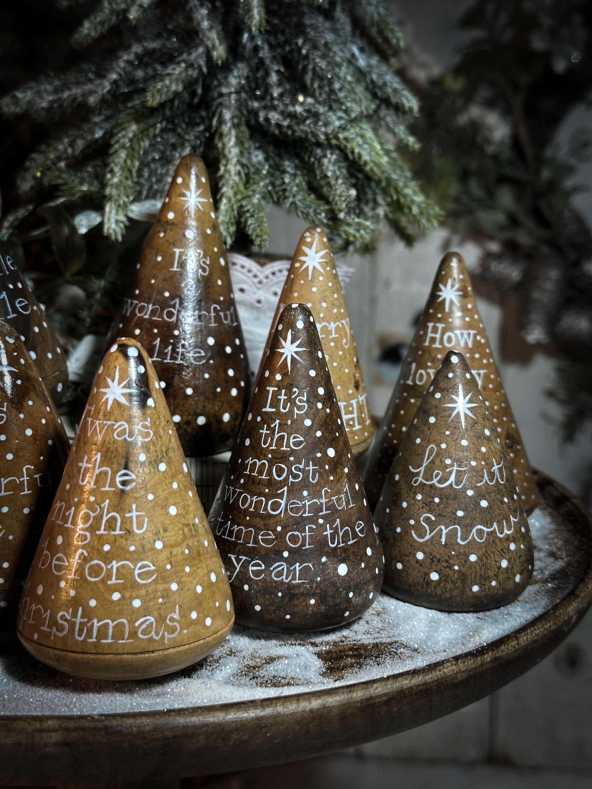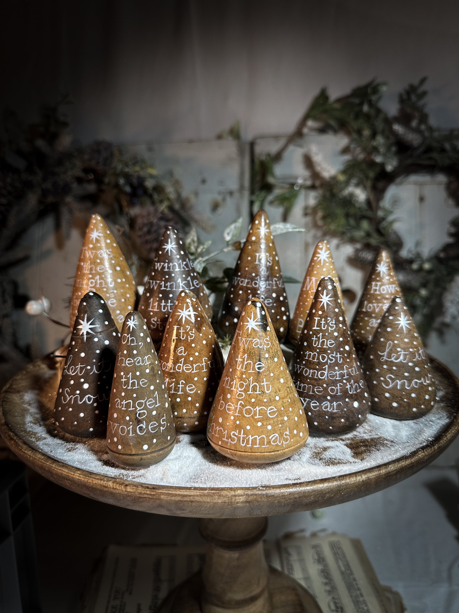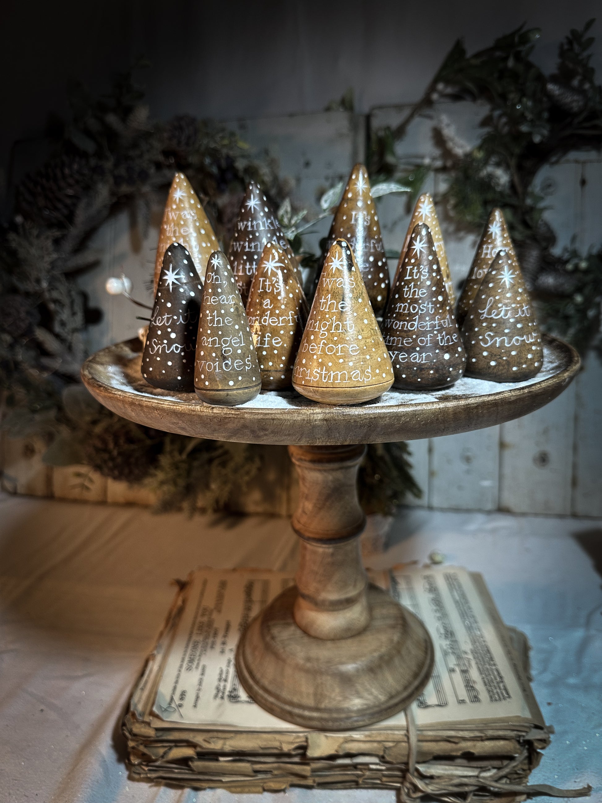 Made from the hardest wood known to mankind; Lignum vitae, these conical shaped tools were used to widen the end of copper piping so that they could slot into each other. Consequently, they have the most delightful patina, weigh a tonne and for our purposes, resemble divine little Christmas trees.