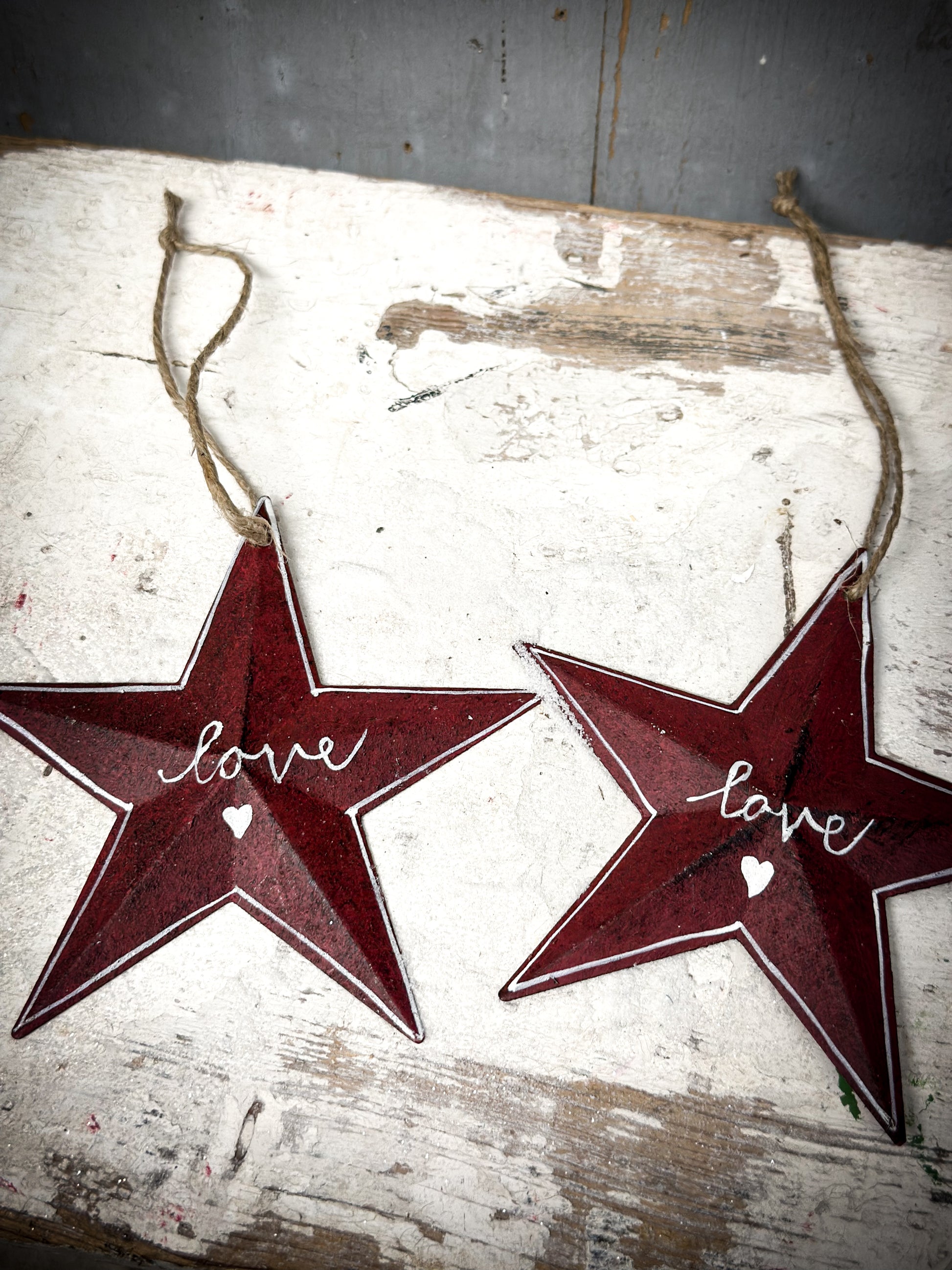 A Large Red Tin Barn Star Christmas Decoration “Love”
