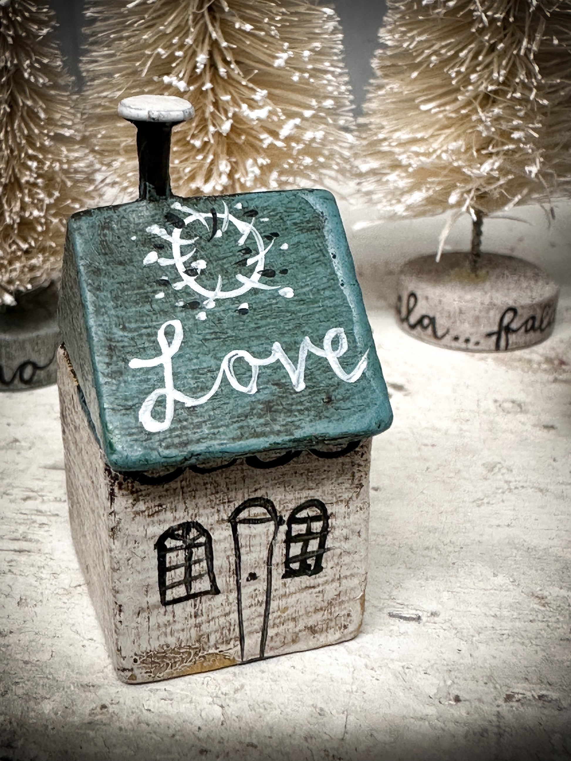 A mini Vintage German Erzgebirge Putz Wooden Village House “Love”