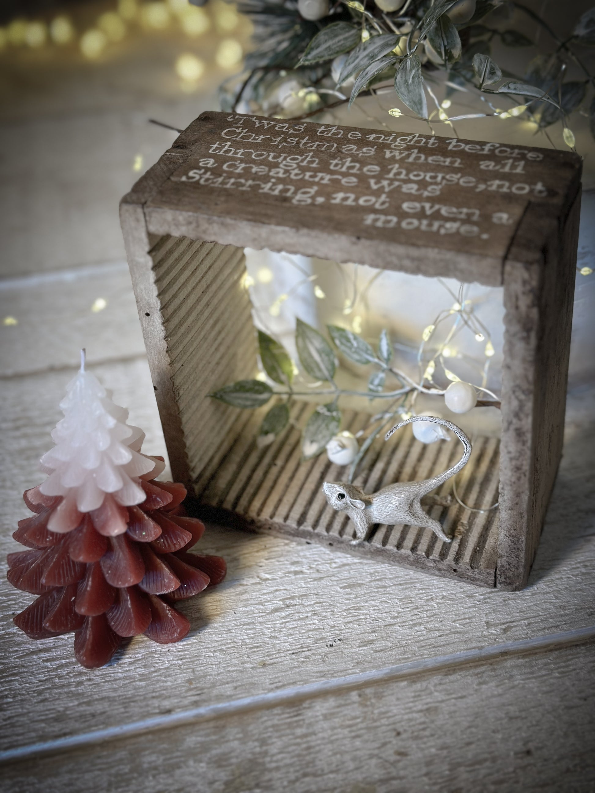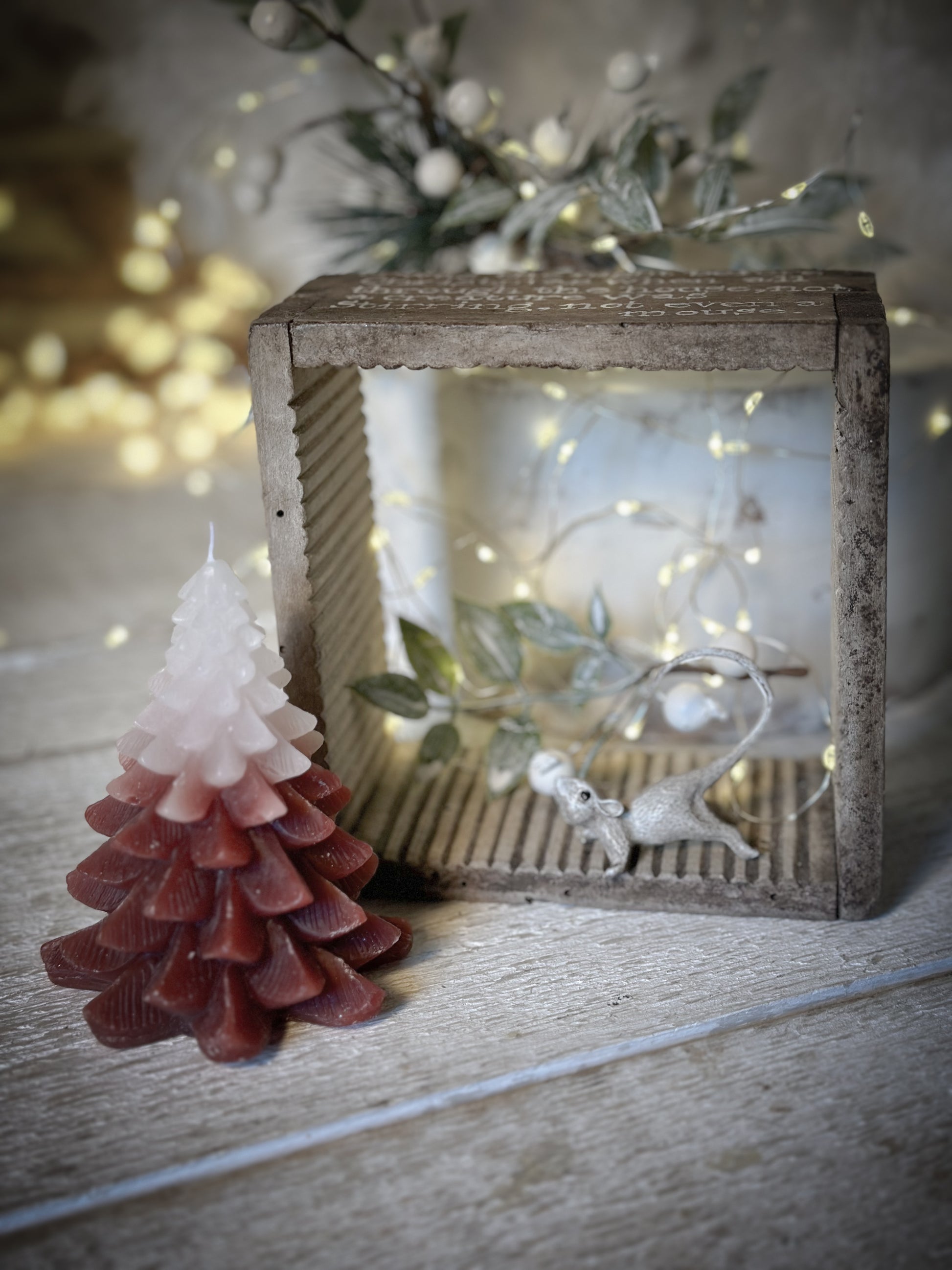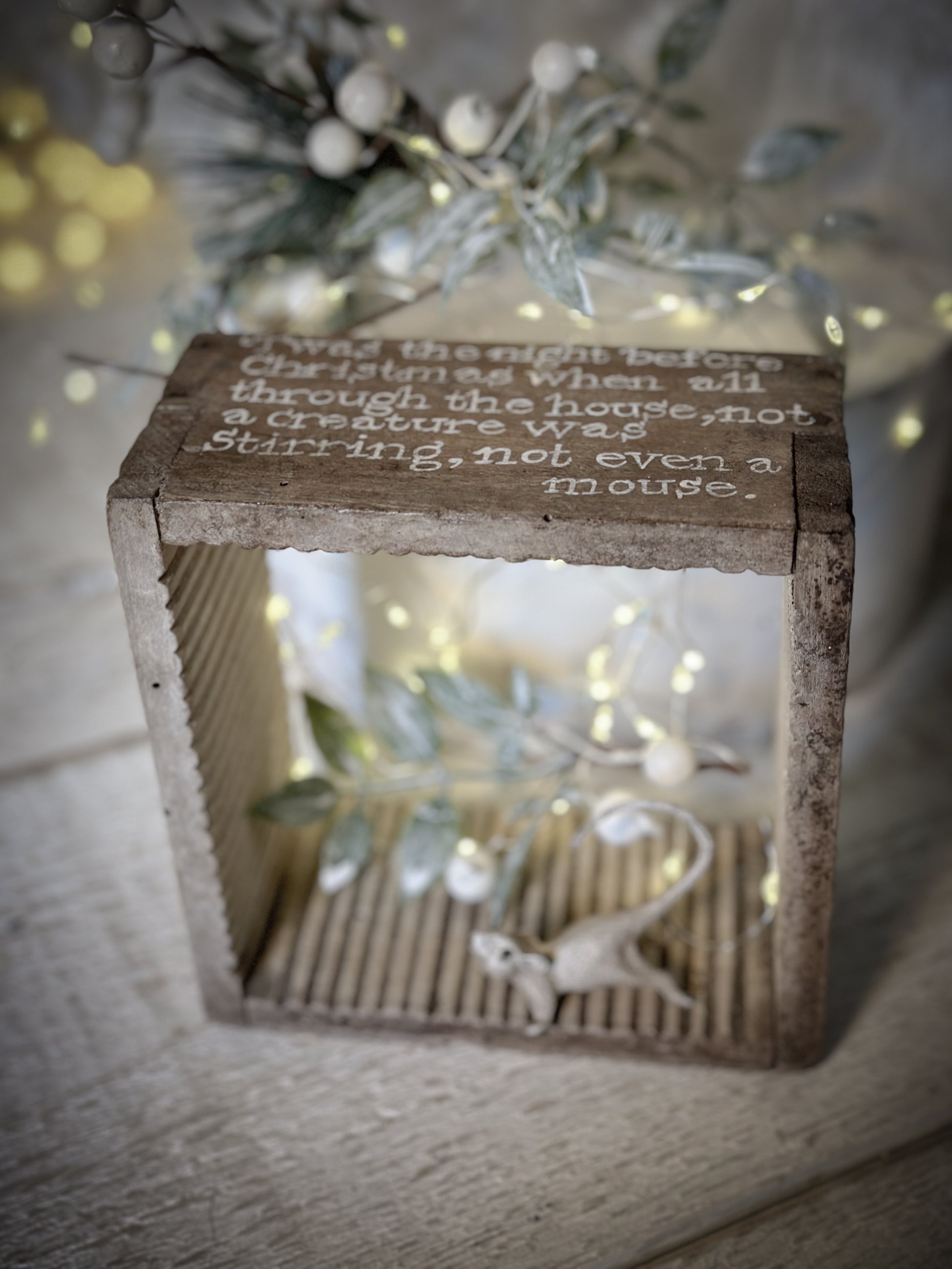Add some fairy lights and Christmas decorations for an unusual, rustic display. Create your own Christmas vignette.