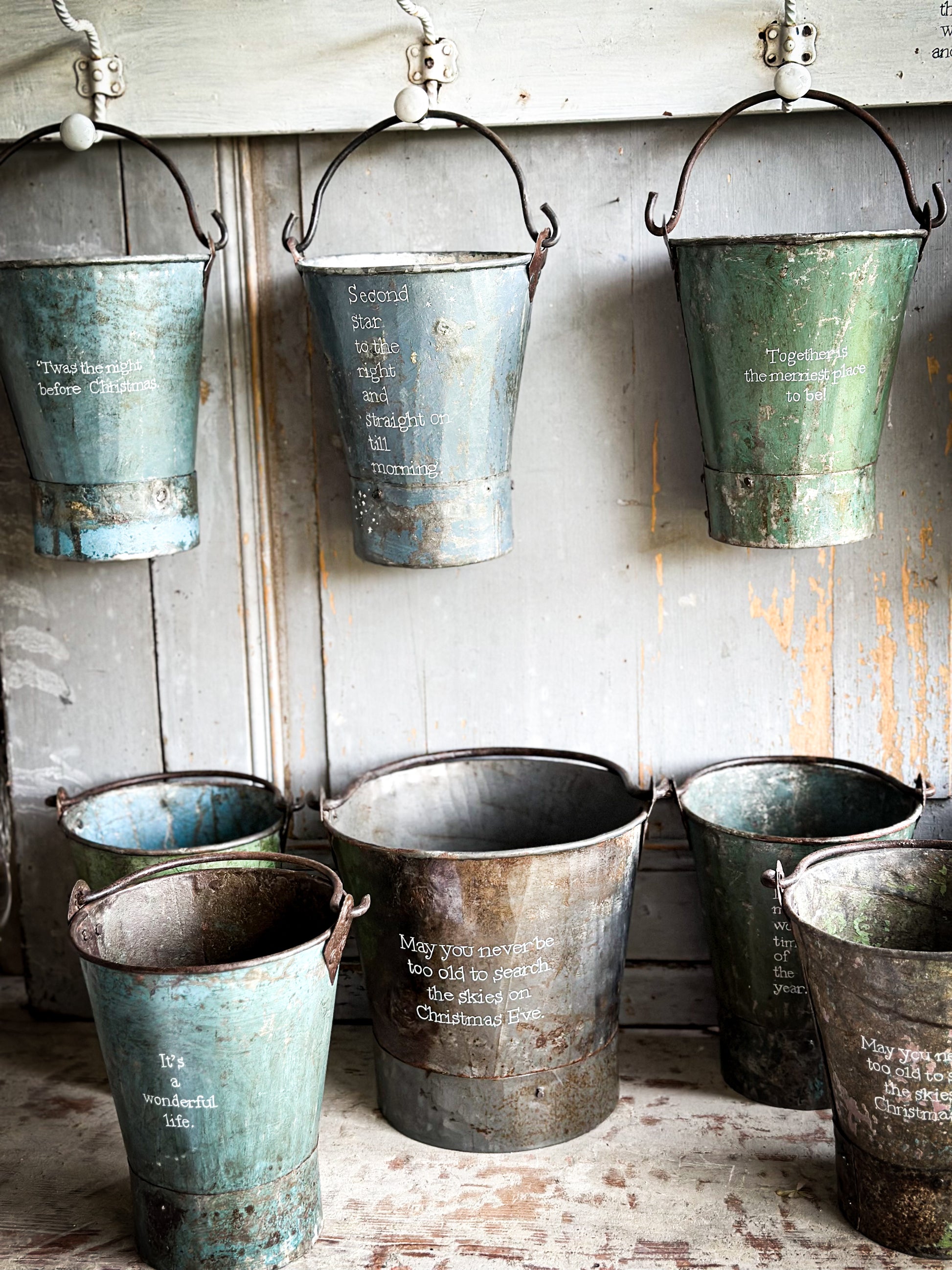 Each recycled metal bucket is selected for its original qualities and as such, bare the signs of time and use. We scout the countryside and beyond to find these wonderful vessels but please be aware, they are recycled and will show rust and patina.