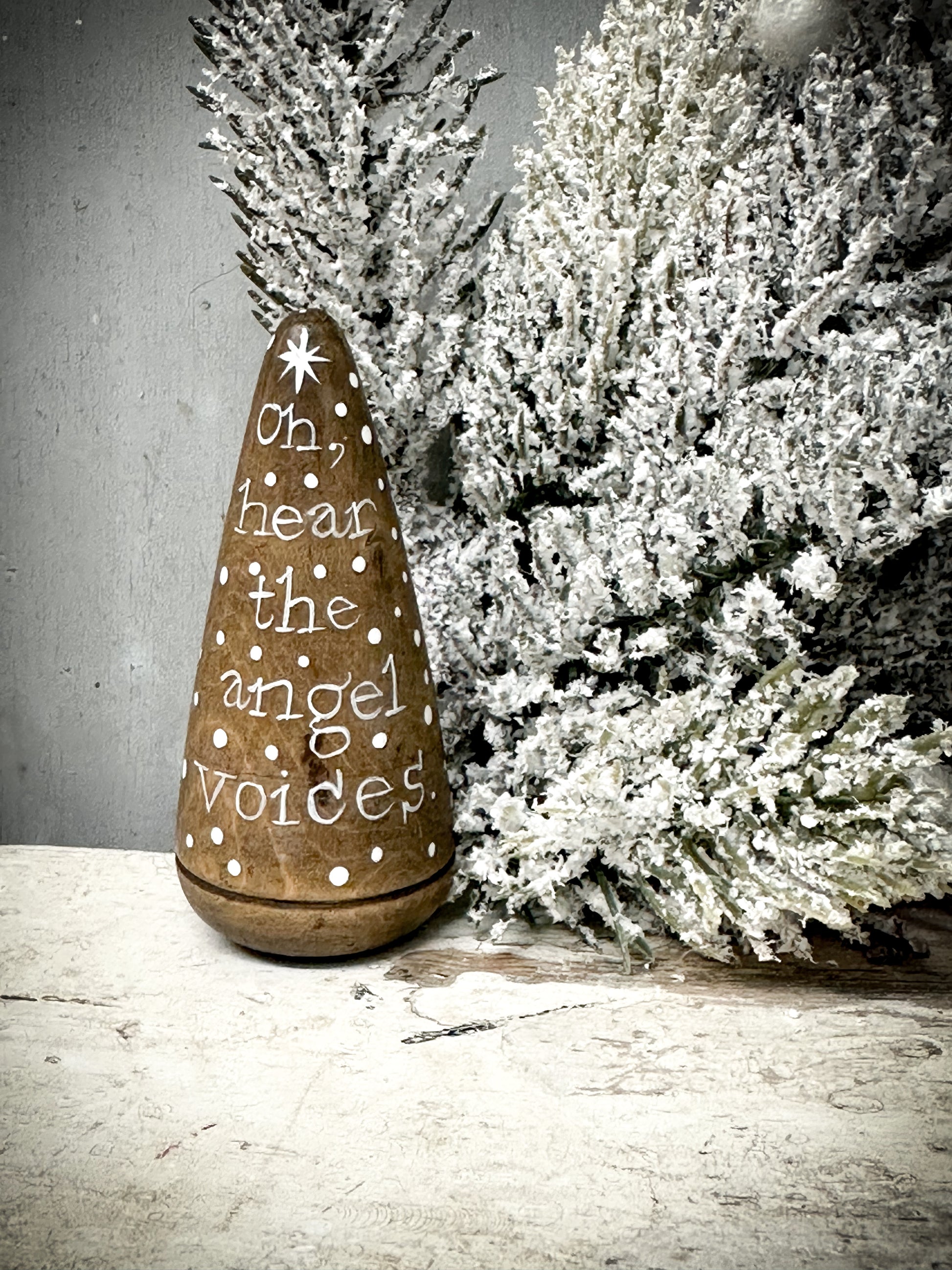 Made from the hardest wood known to mankind; Lignum vitae, these conical shaped tools were used to widen the end of copper piping so that they could slot into each other. Consequently, they have the most delightful patina, weigh a tonne and for our purposes, resemble divine little Christmas trees.