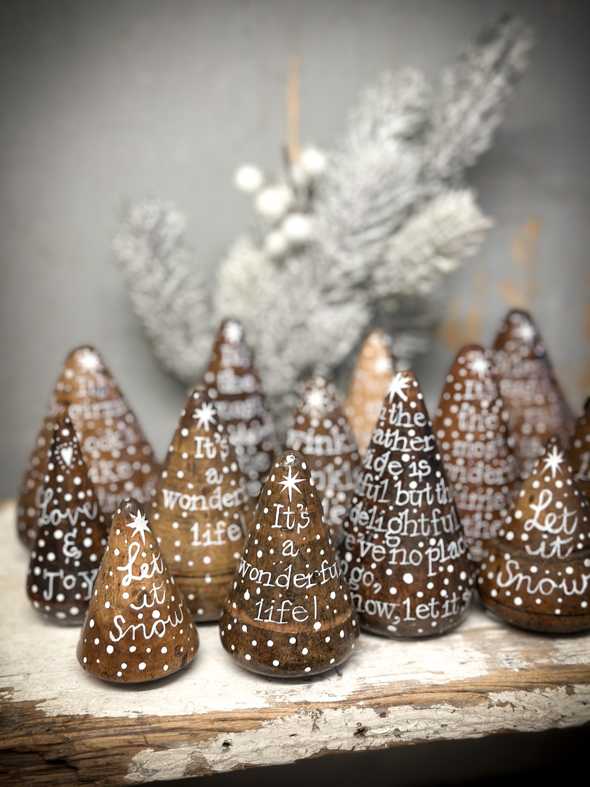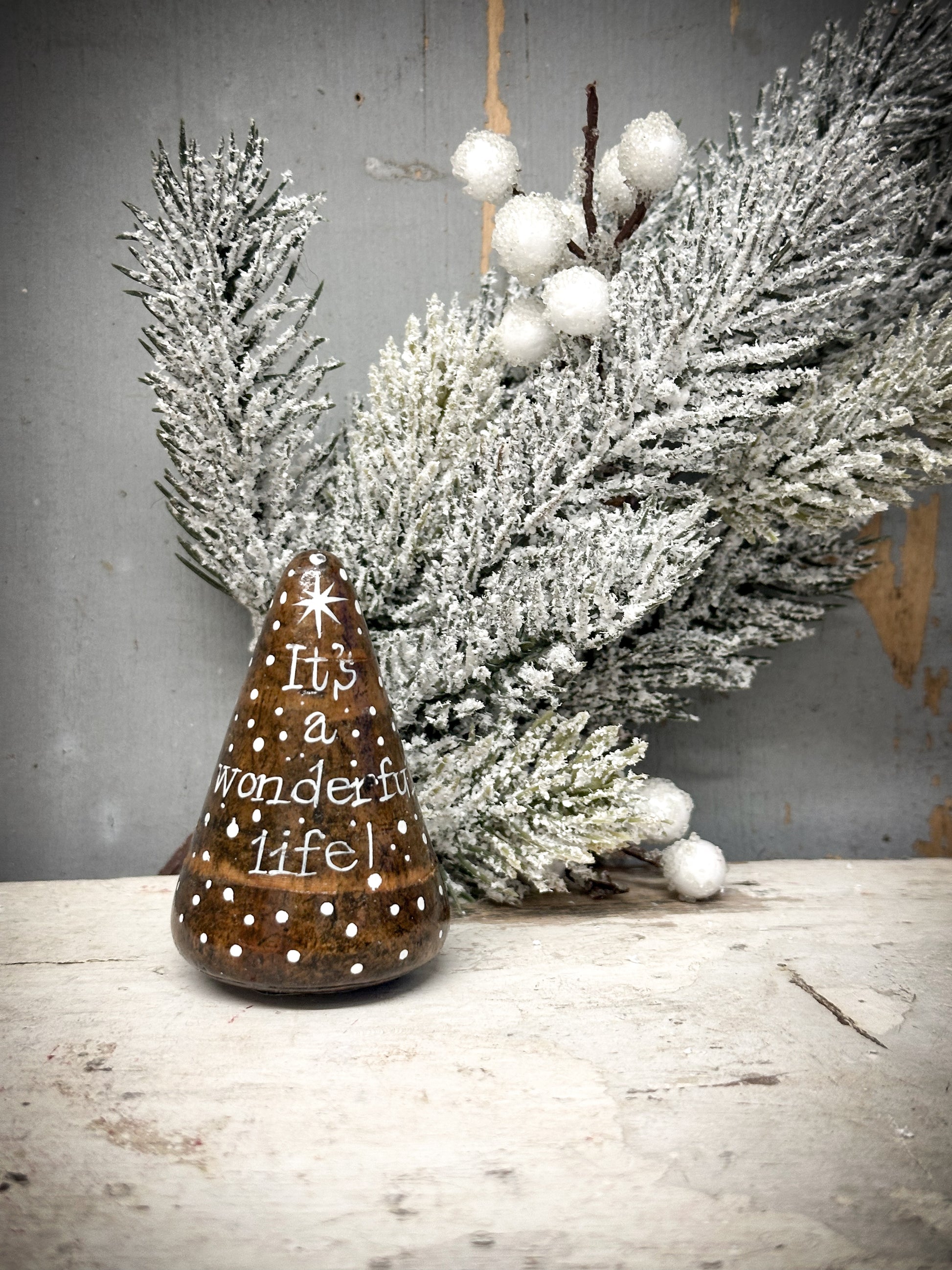Made from the hardest wood known to mankind; Lignum vitae, these conical shaped tools were used to widen the end of copper piping so that they could slot into each other. Consequently, they have the most delightful patina, weigh a tonne and for our purposes, resemble divine little Christmas trees.