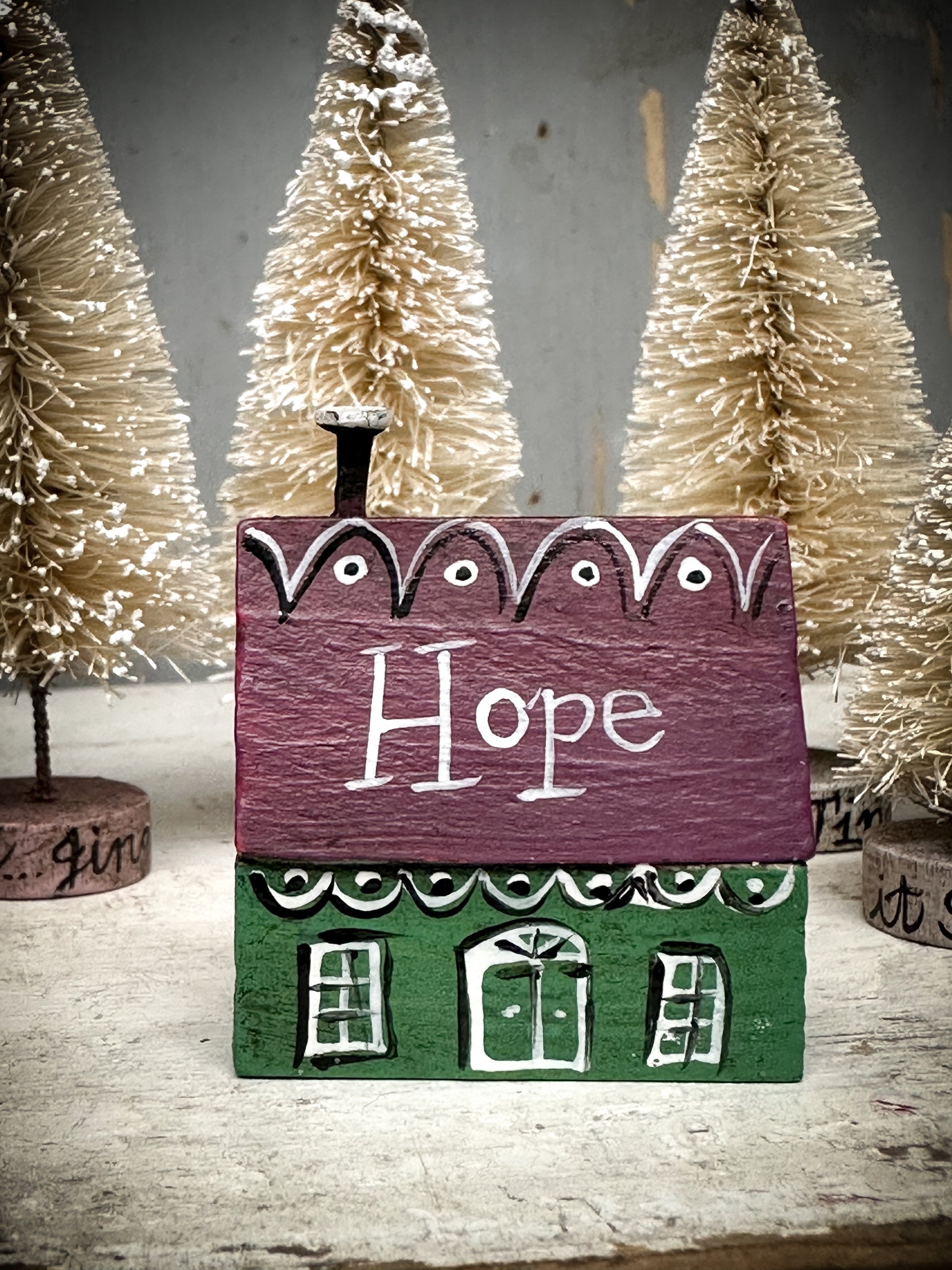 A small Vintage German Erzgebirge Putz Wooden Village House “Hope”