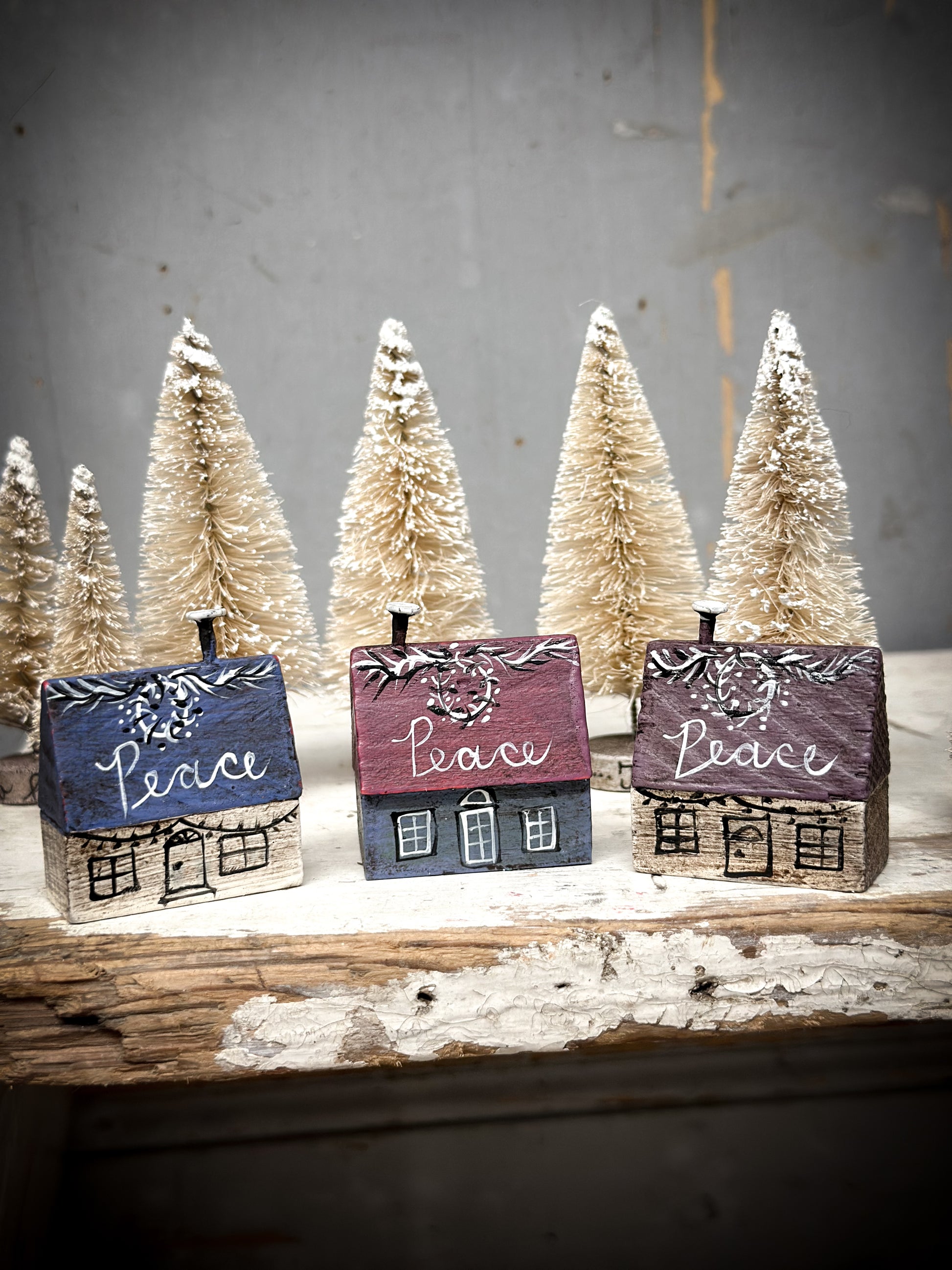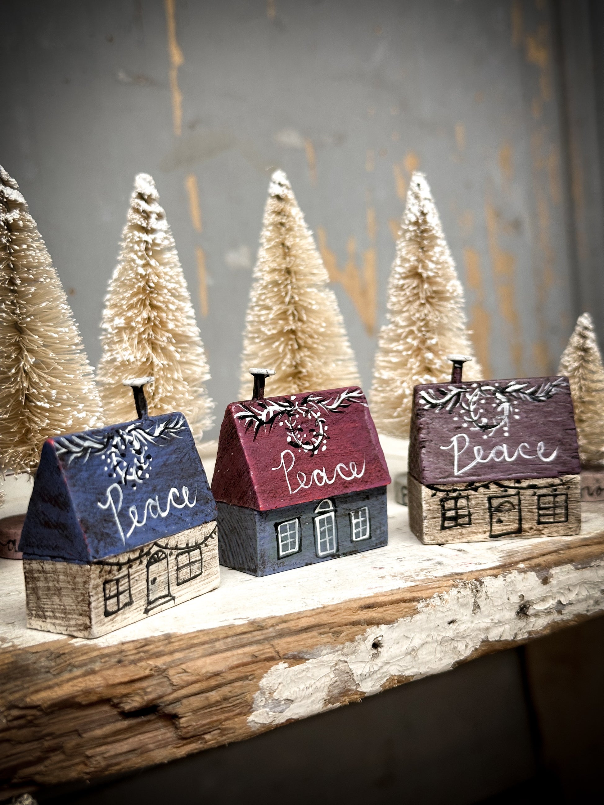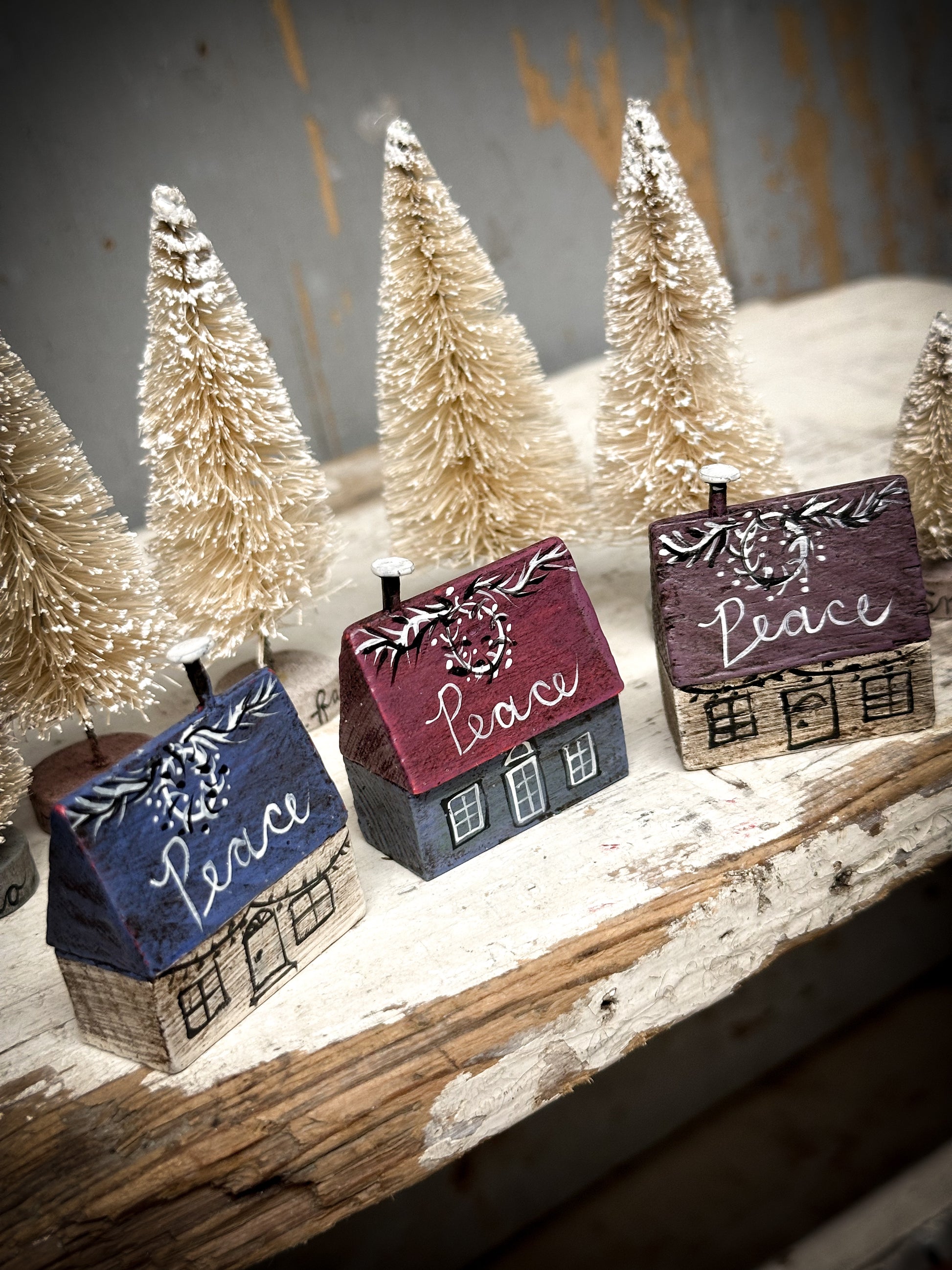 A small Vintage German Erzgebirge Putz Wooden Village House “Peace”