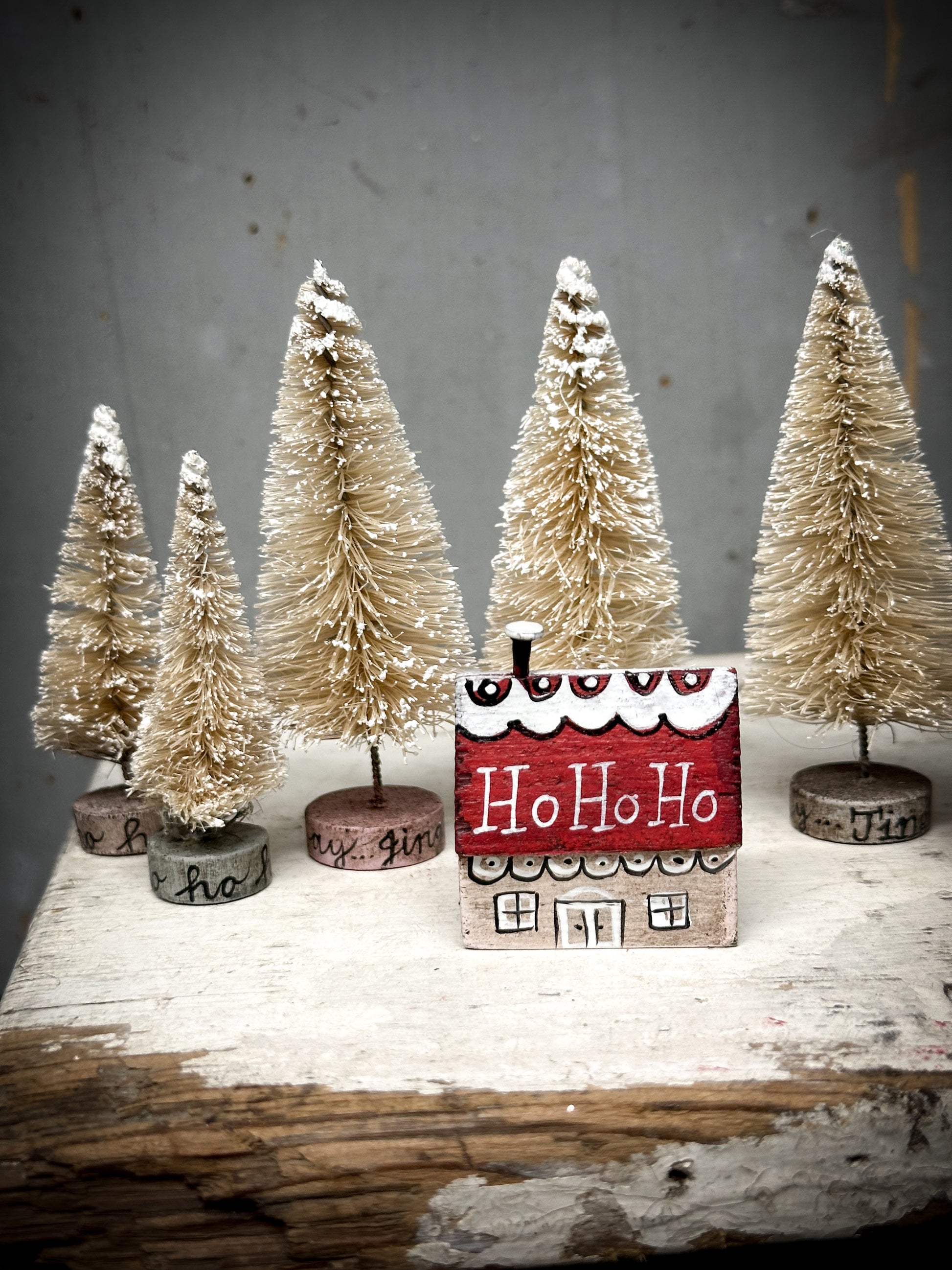 A small Vintage German Erzgebirge Putz Wooden Village House “Ho Ho Ho”