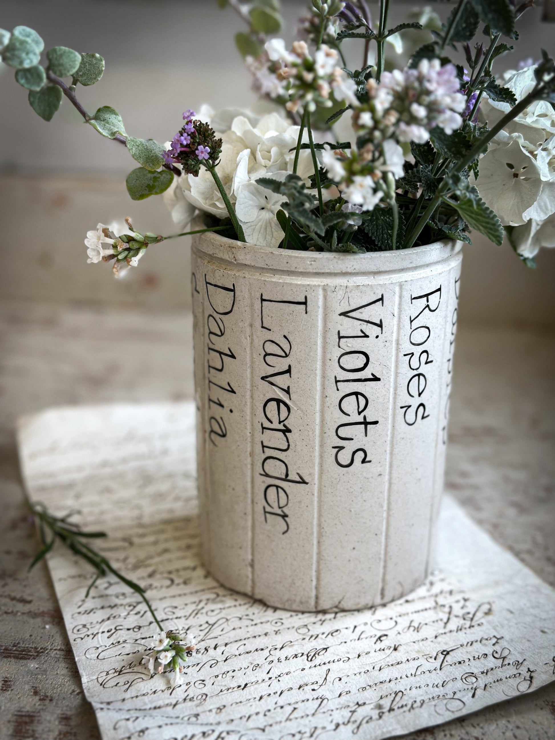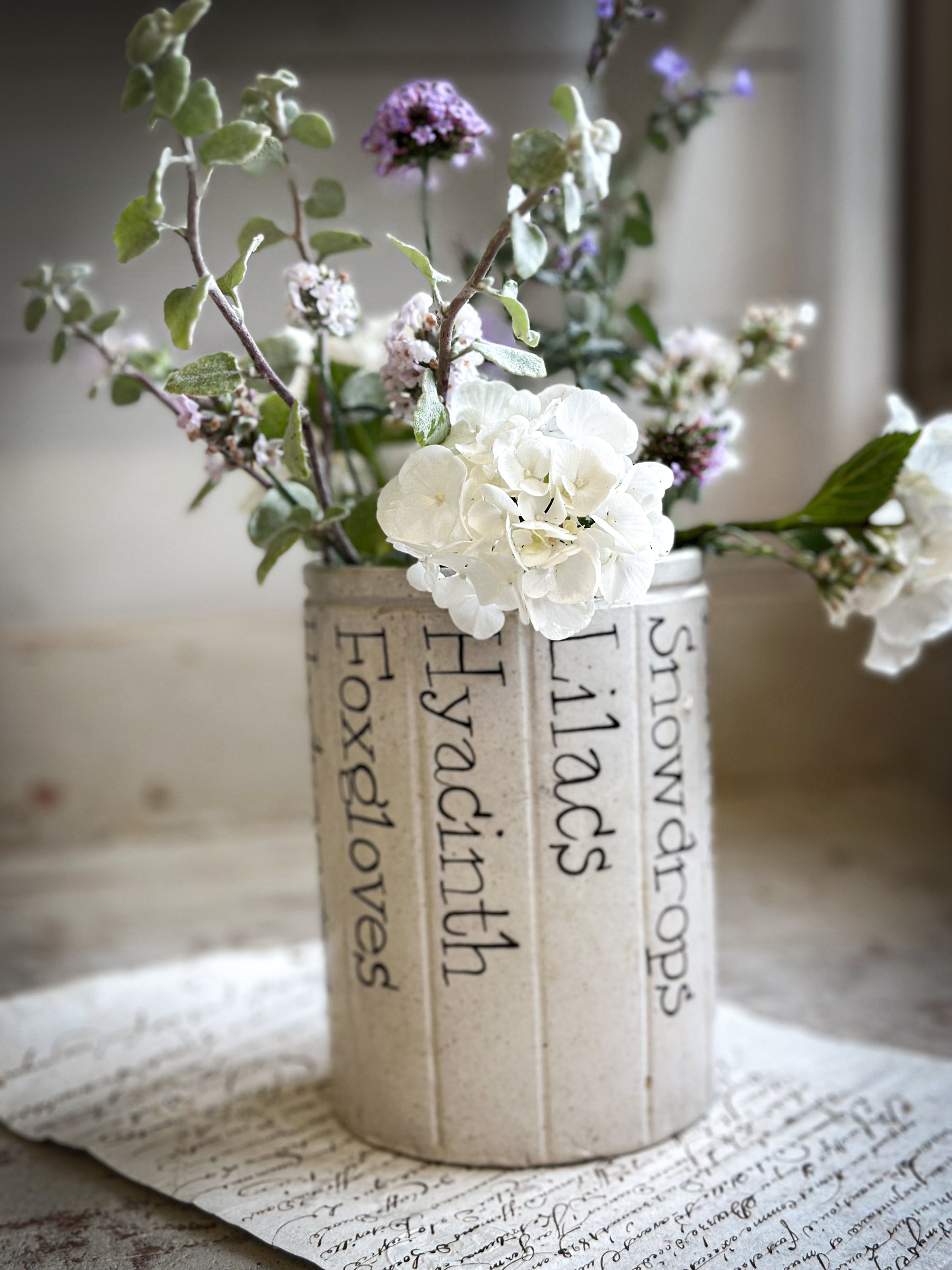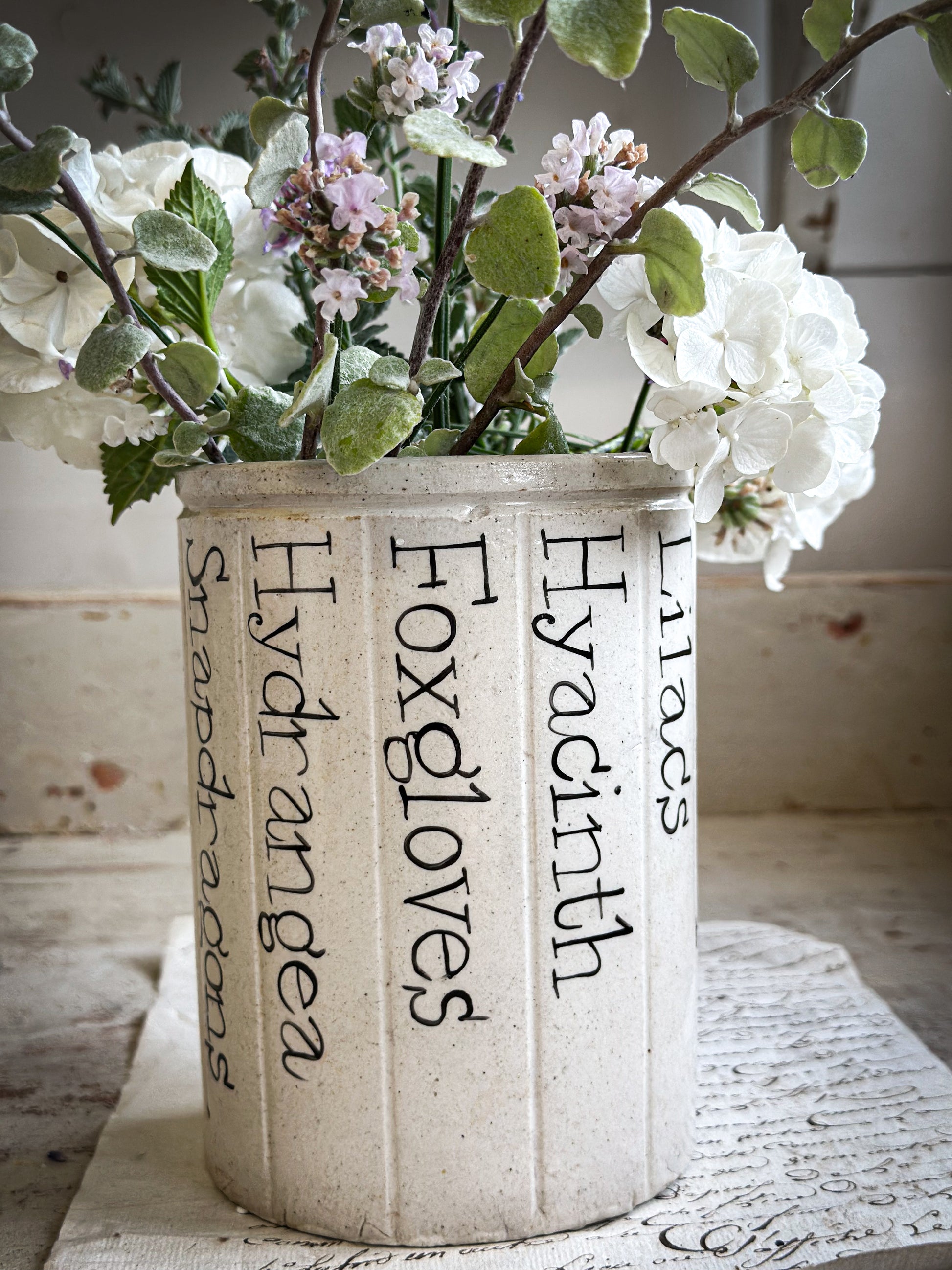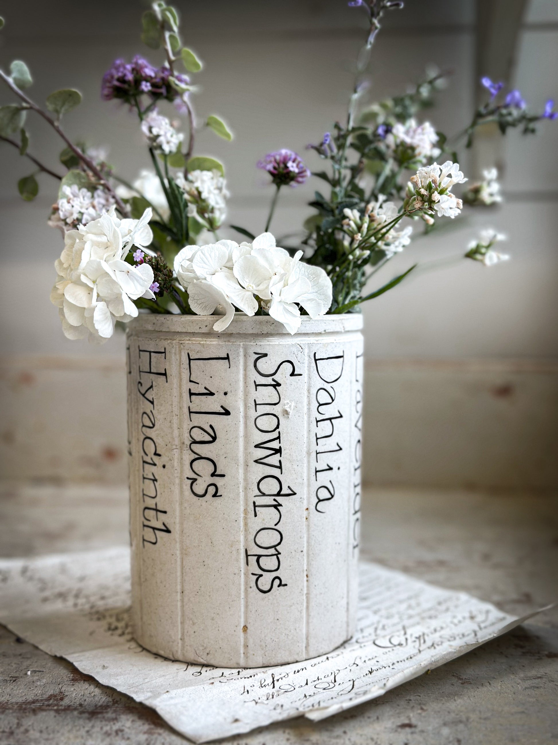 *Care instructions- as these pieces are hand painted we recommend avoiding abrasive cloths or detergents. A soft, dry cloth lightly applied is best. Although the paint we use is waterproof, when filling and emptying the vase take care to avoid spillage as this could damage the lettering.