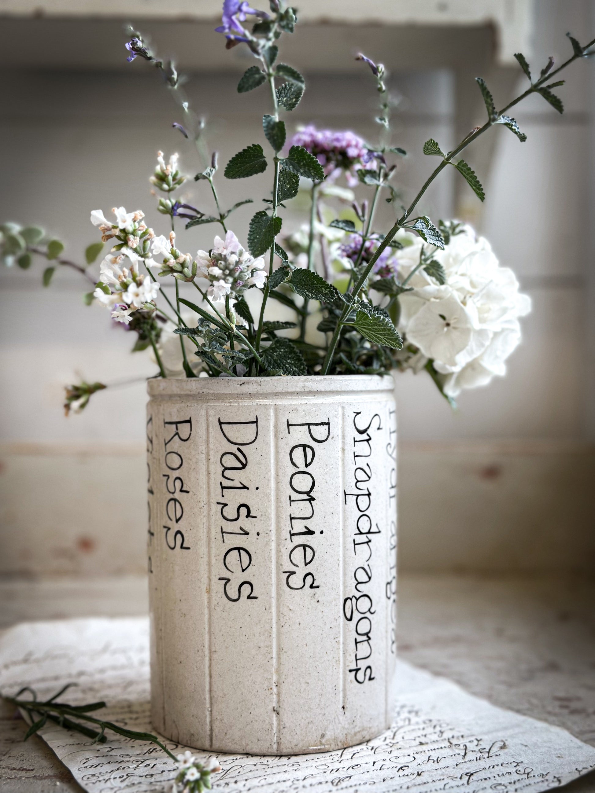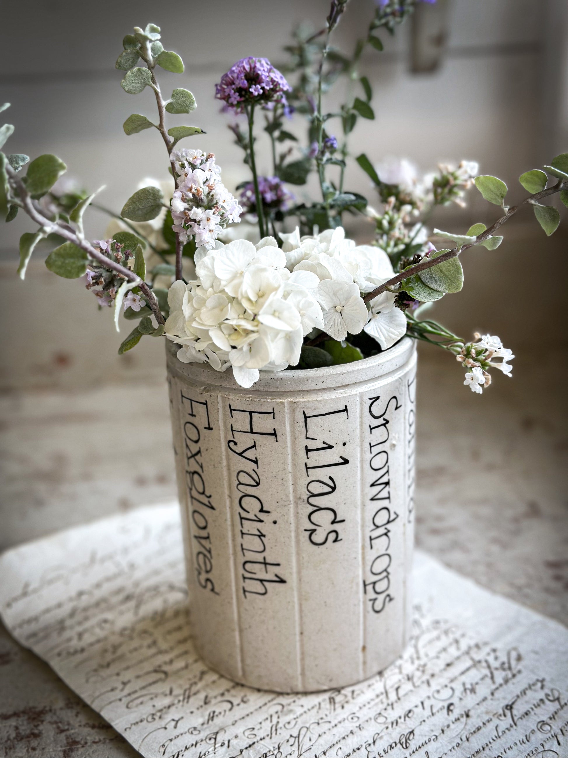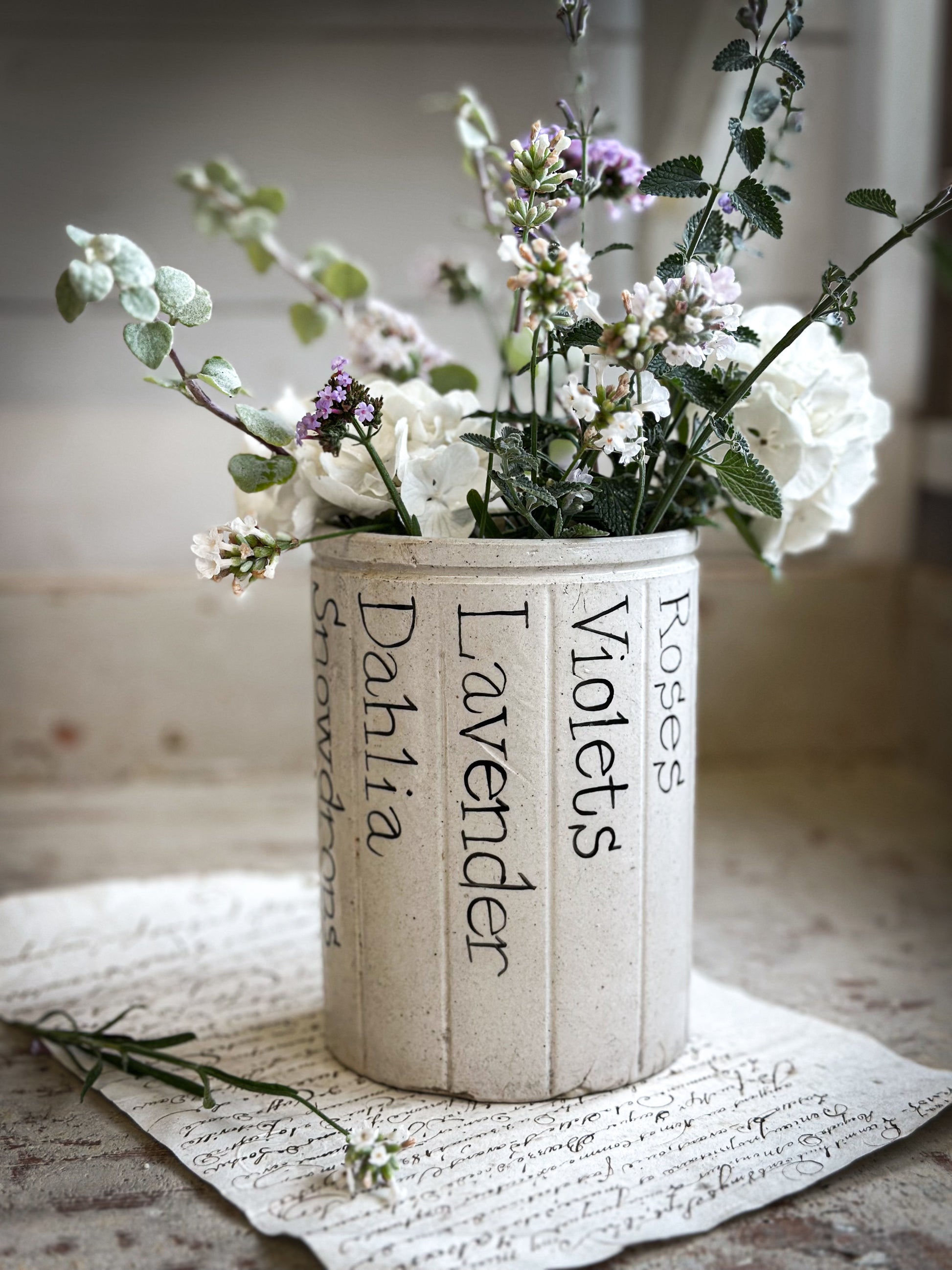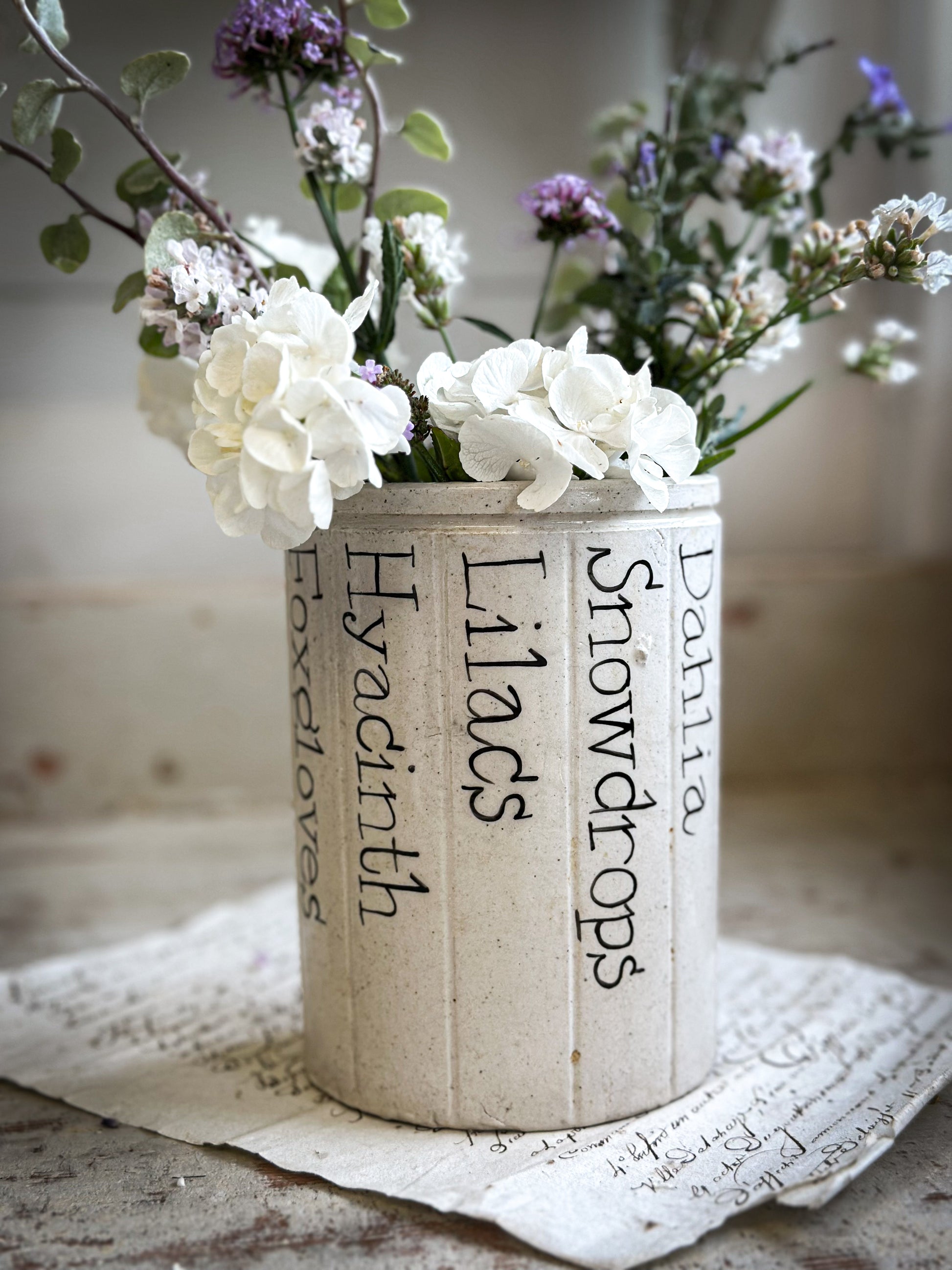 *Care instructions- as these pieces are hand painted we recommend avoiding abrasive cloths or detergents. A soft, dry cloth lightly applied is best. Although the paint we use is waterproof, when filling and emptying the vase take care to avoid spillage as this could damage the lettering.