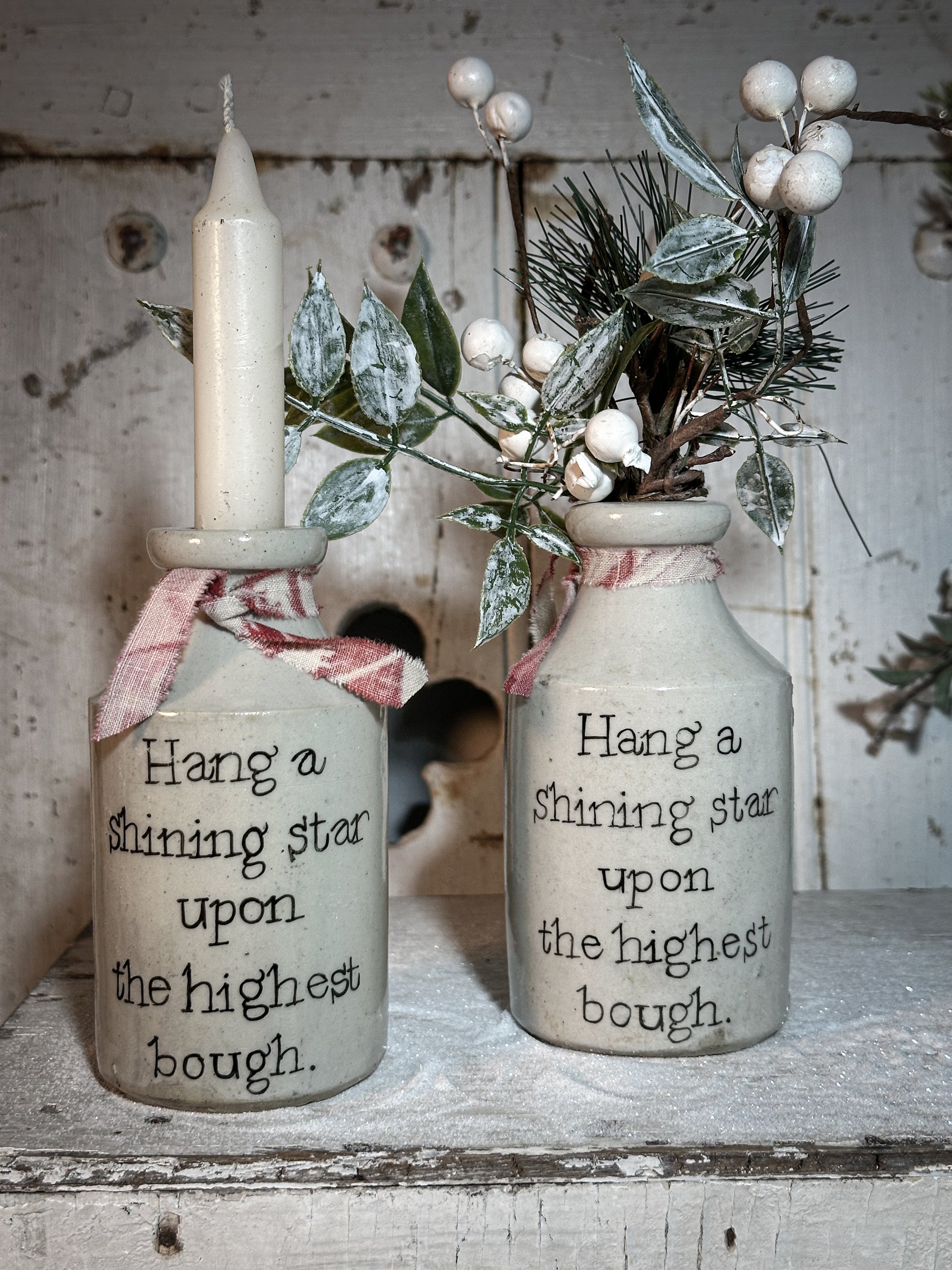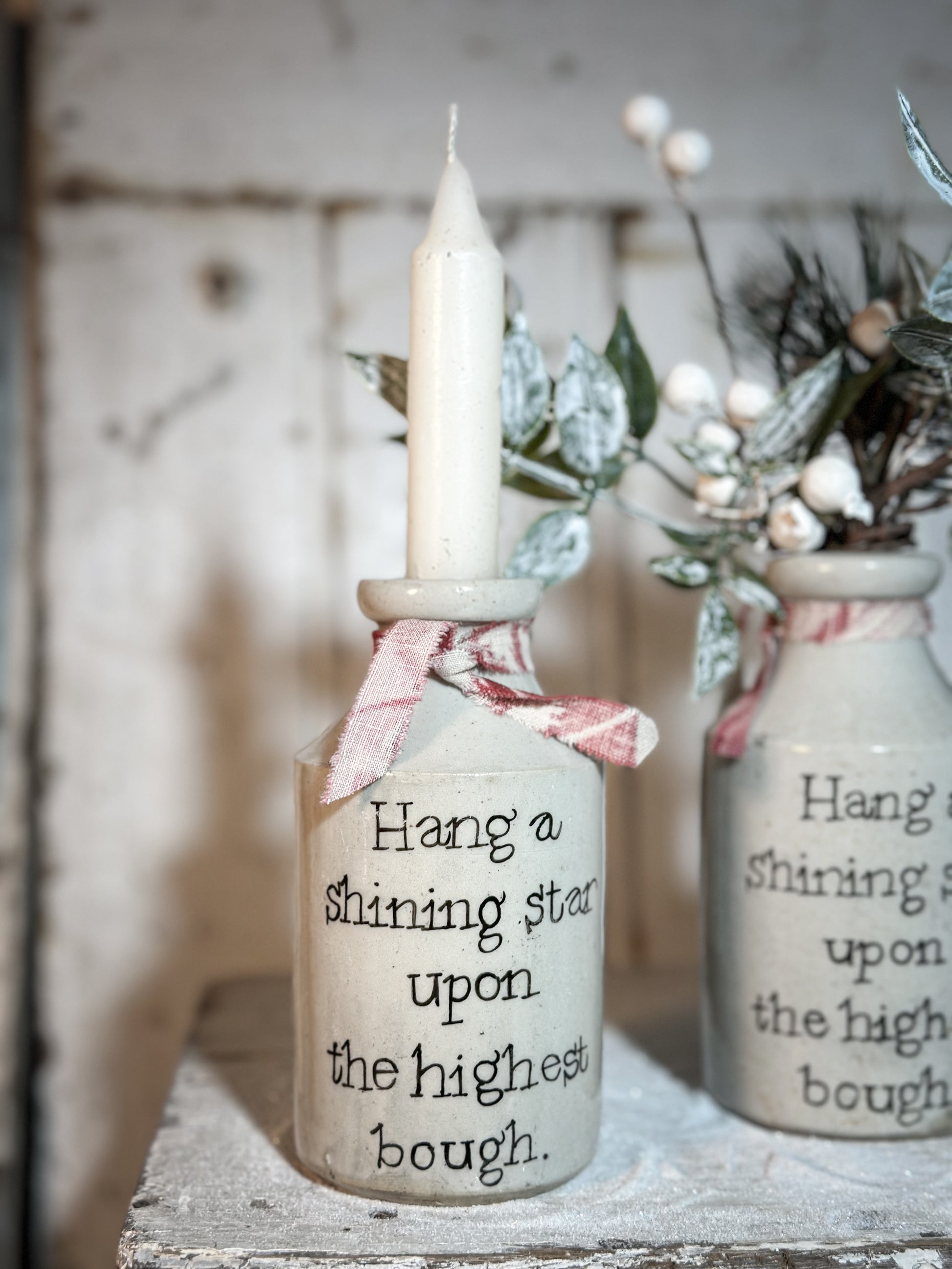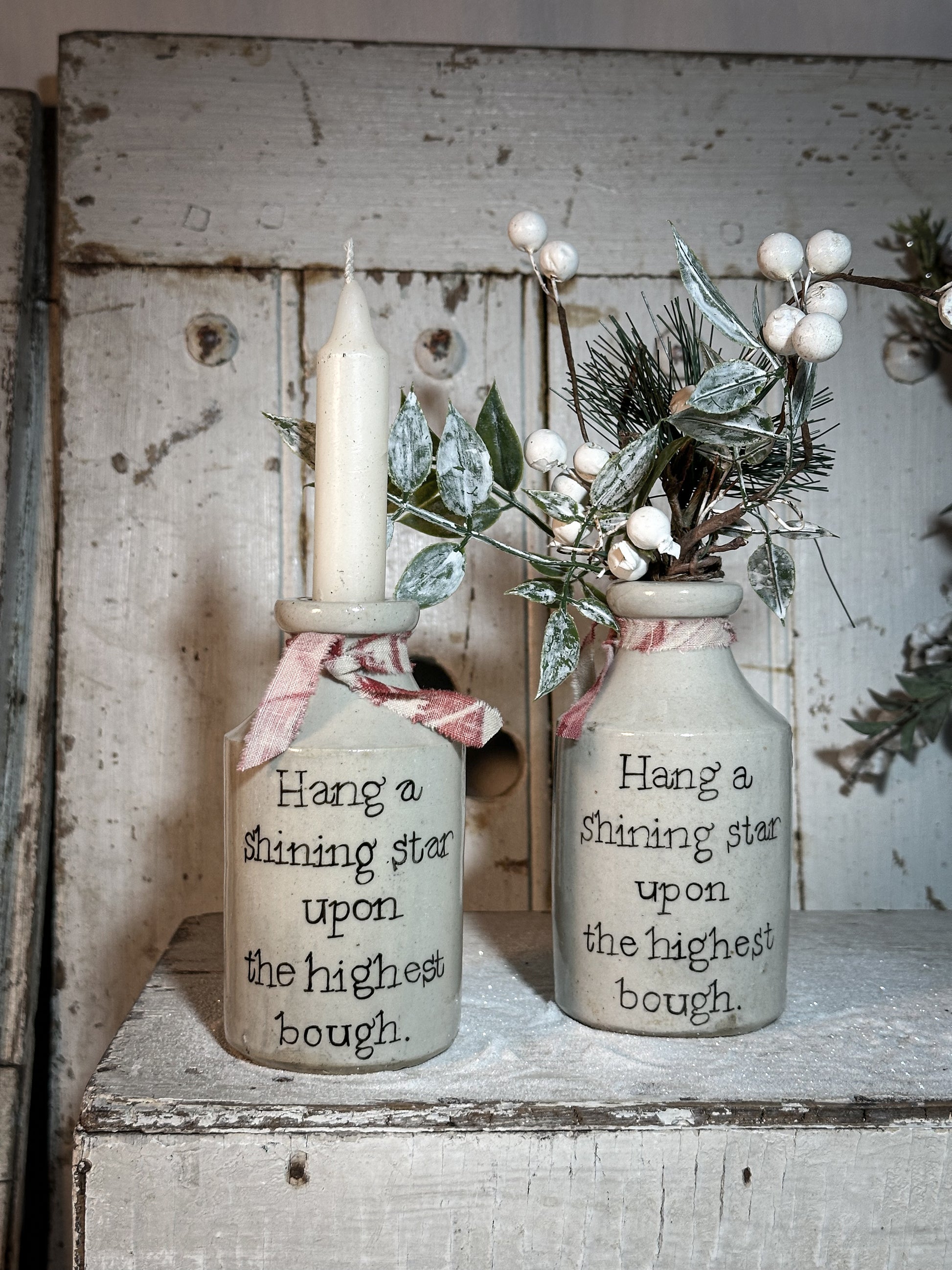 A Victorian unearthed stoneware pottery bottle with a hand painted quote.