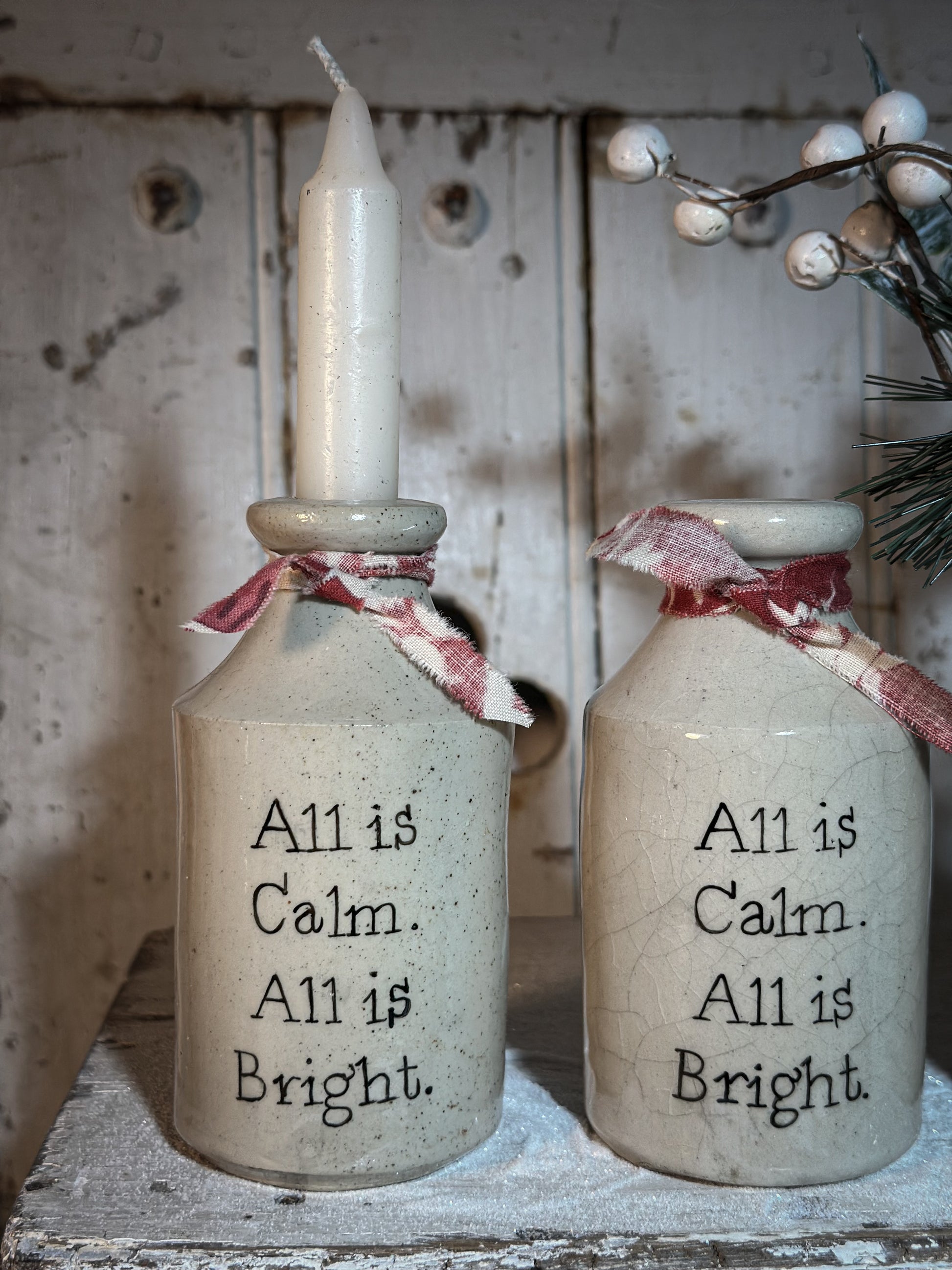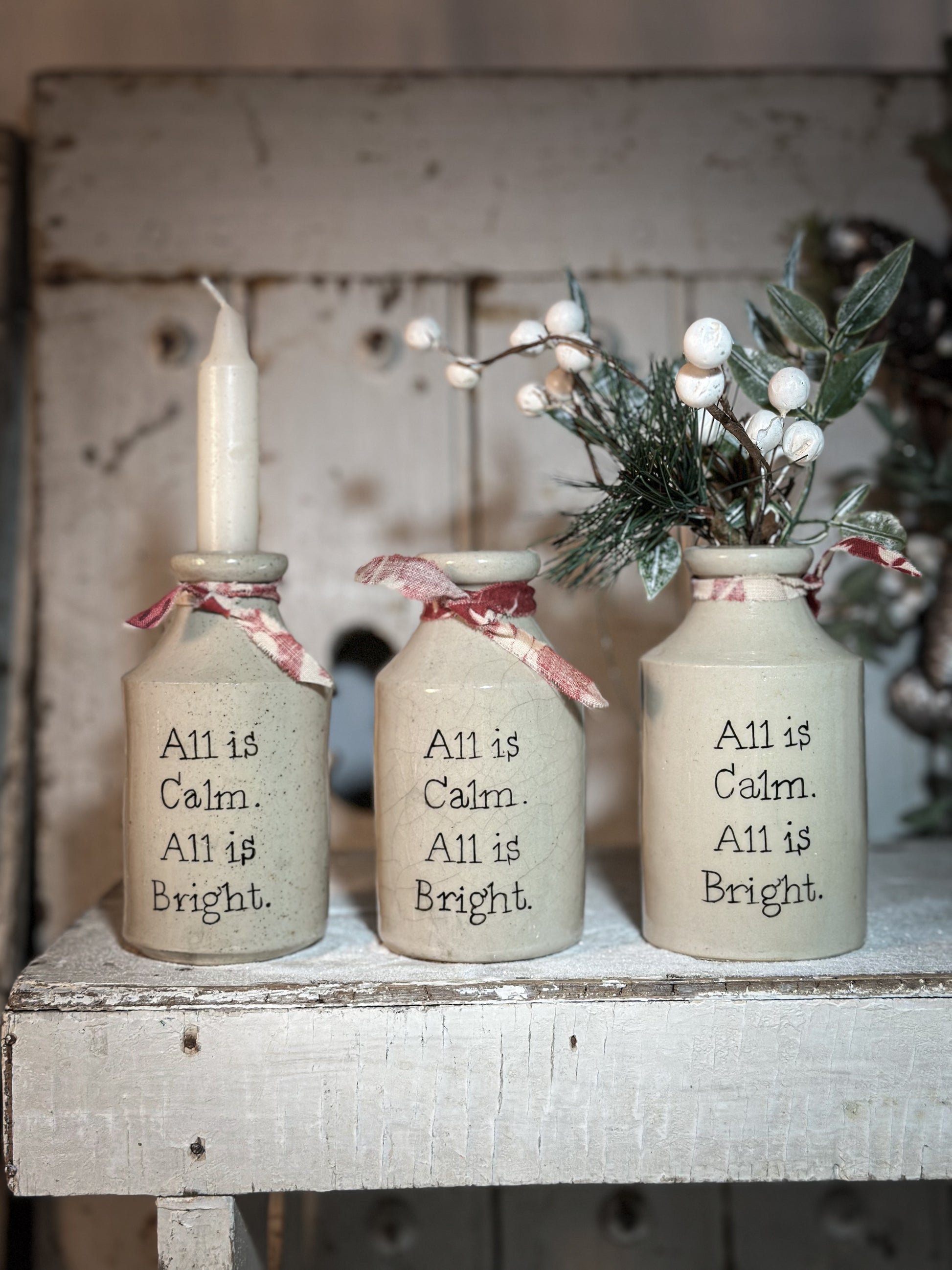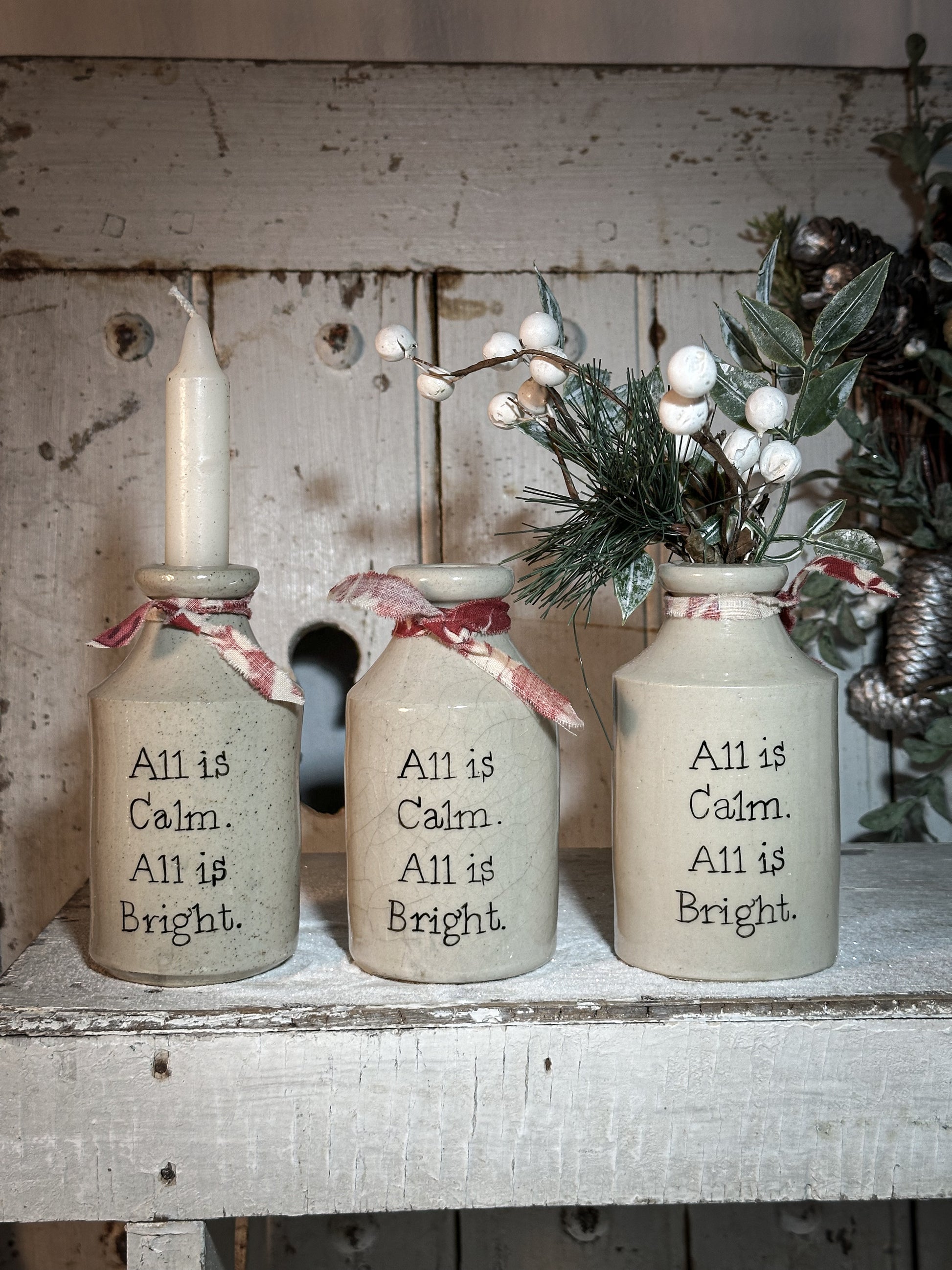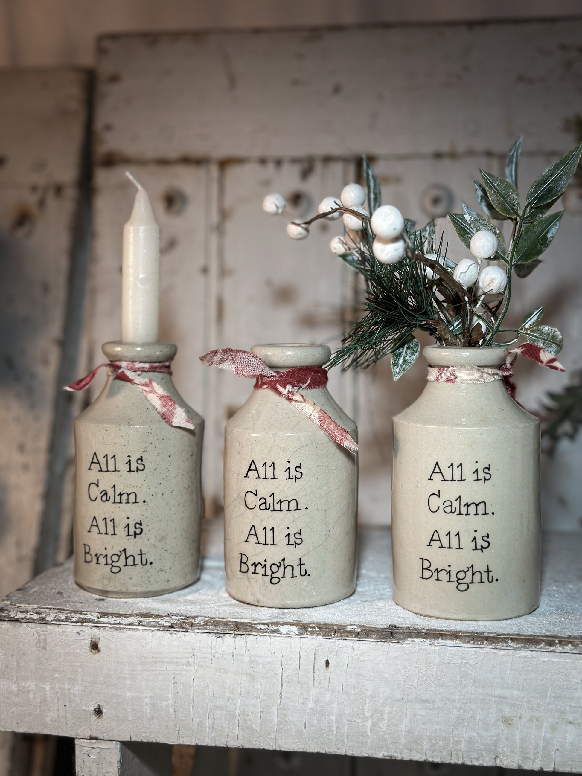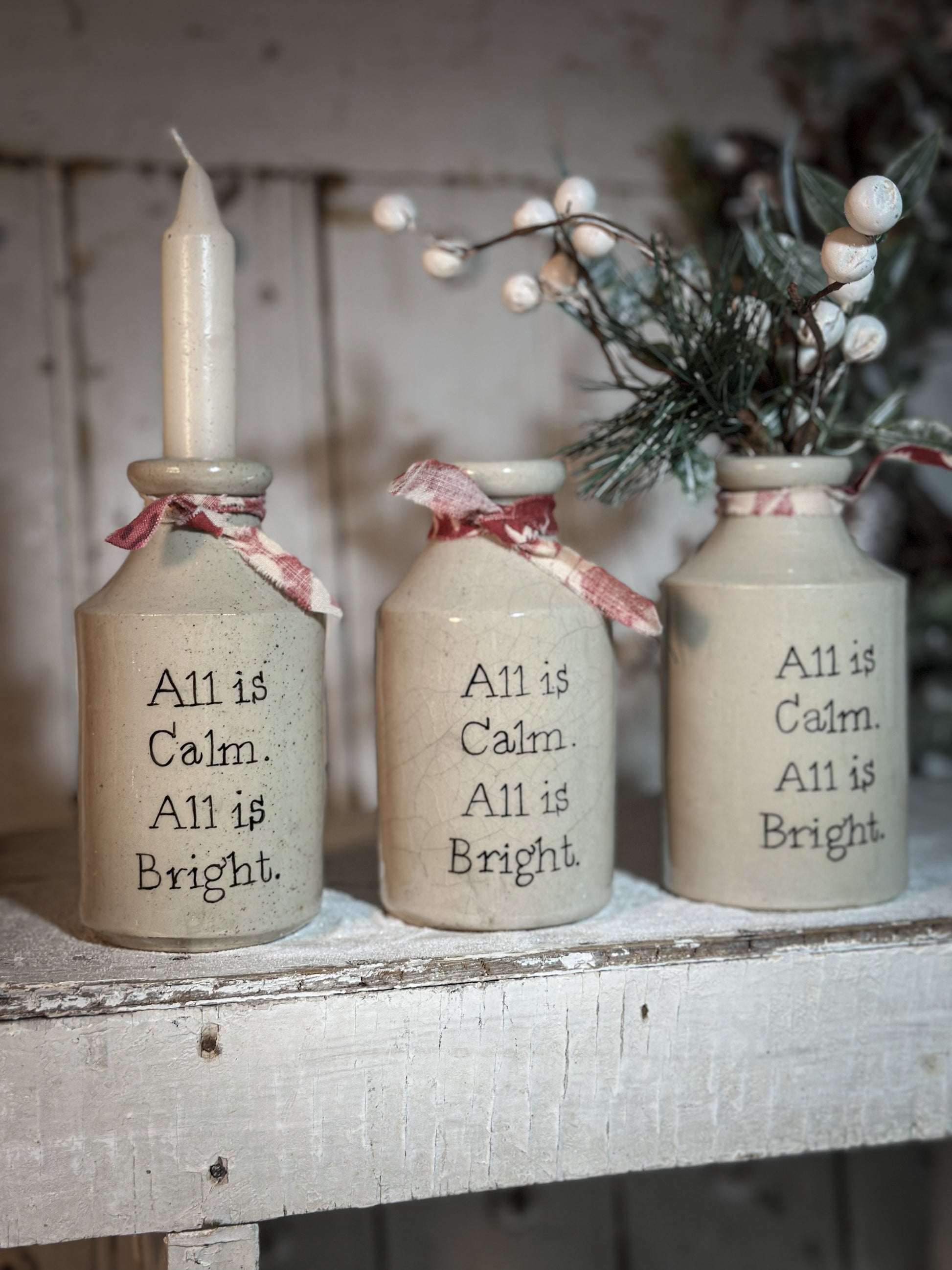 A Victorian unearthed stoneware pottery bottle with a hand painted quote.