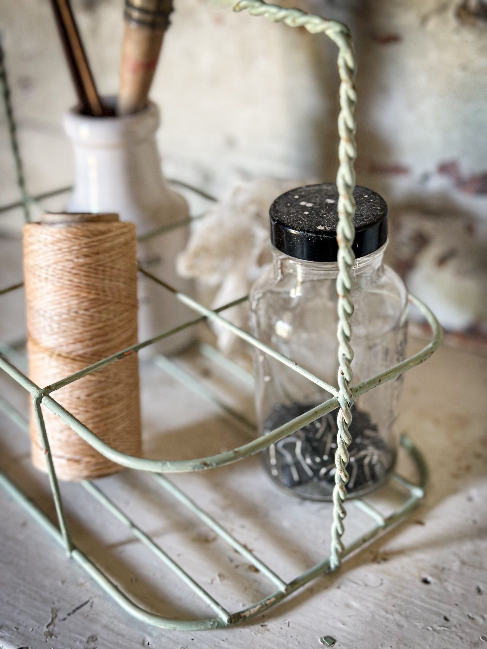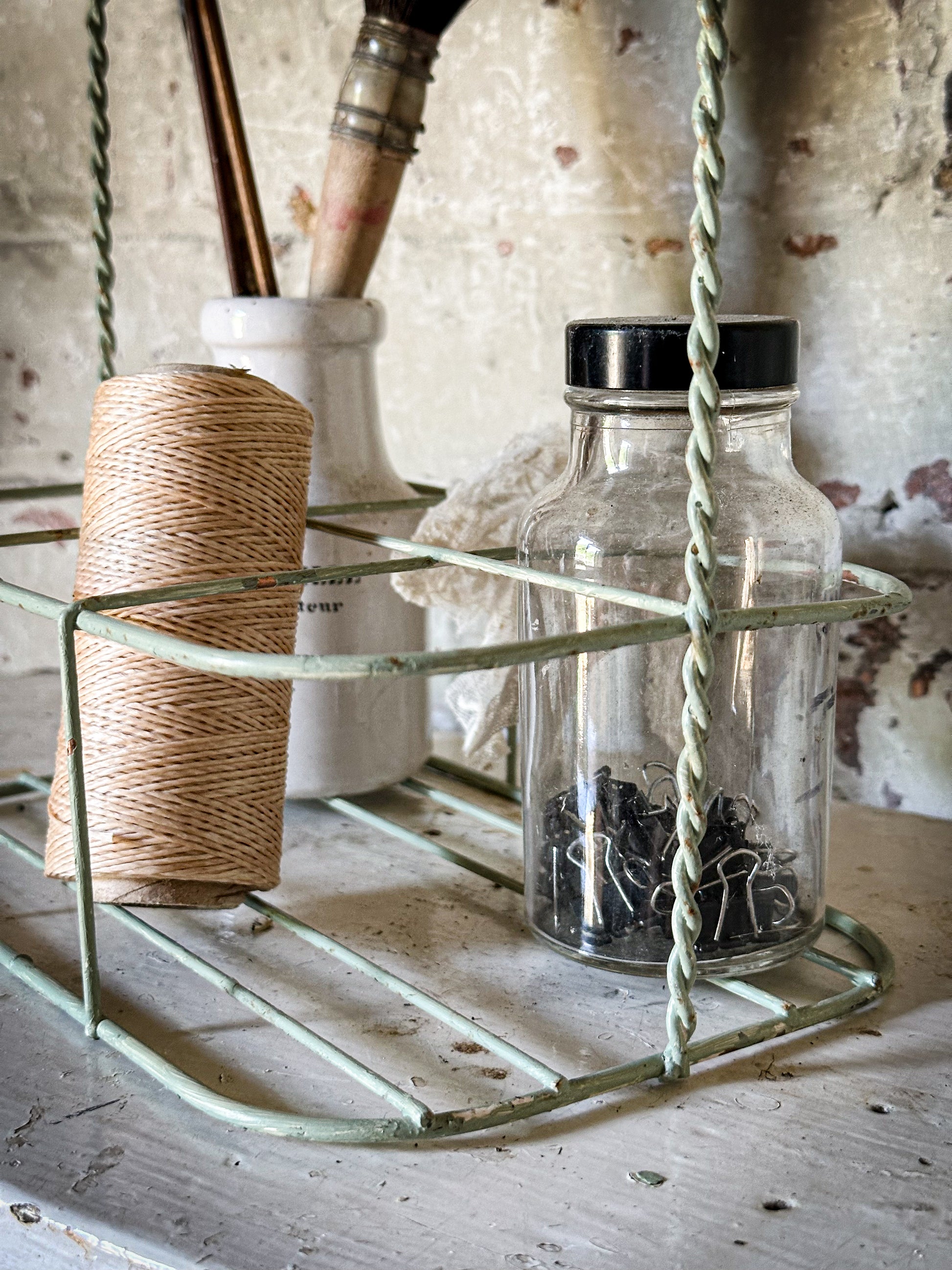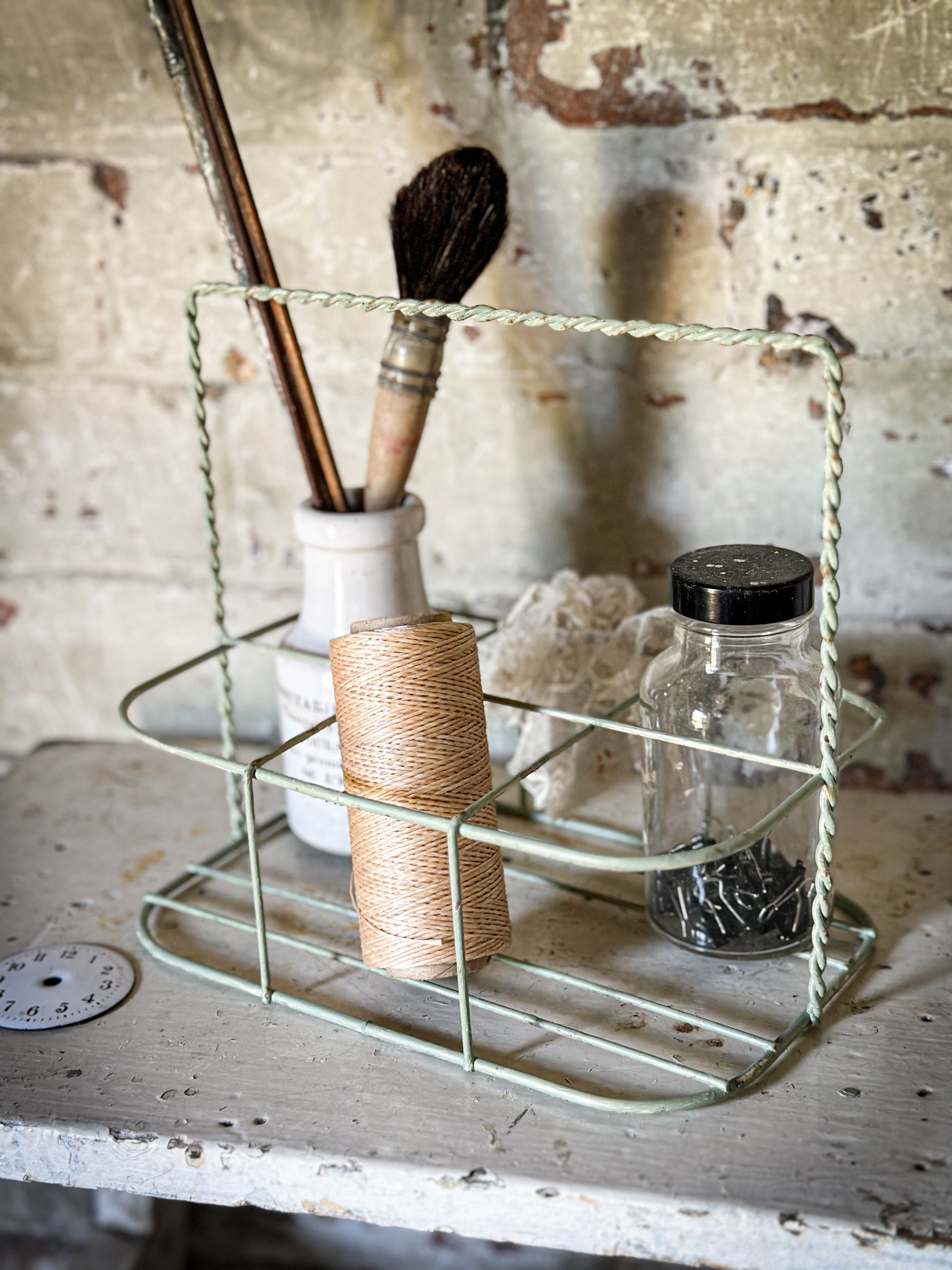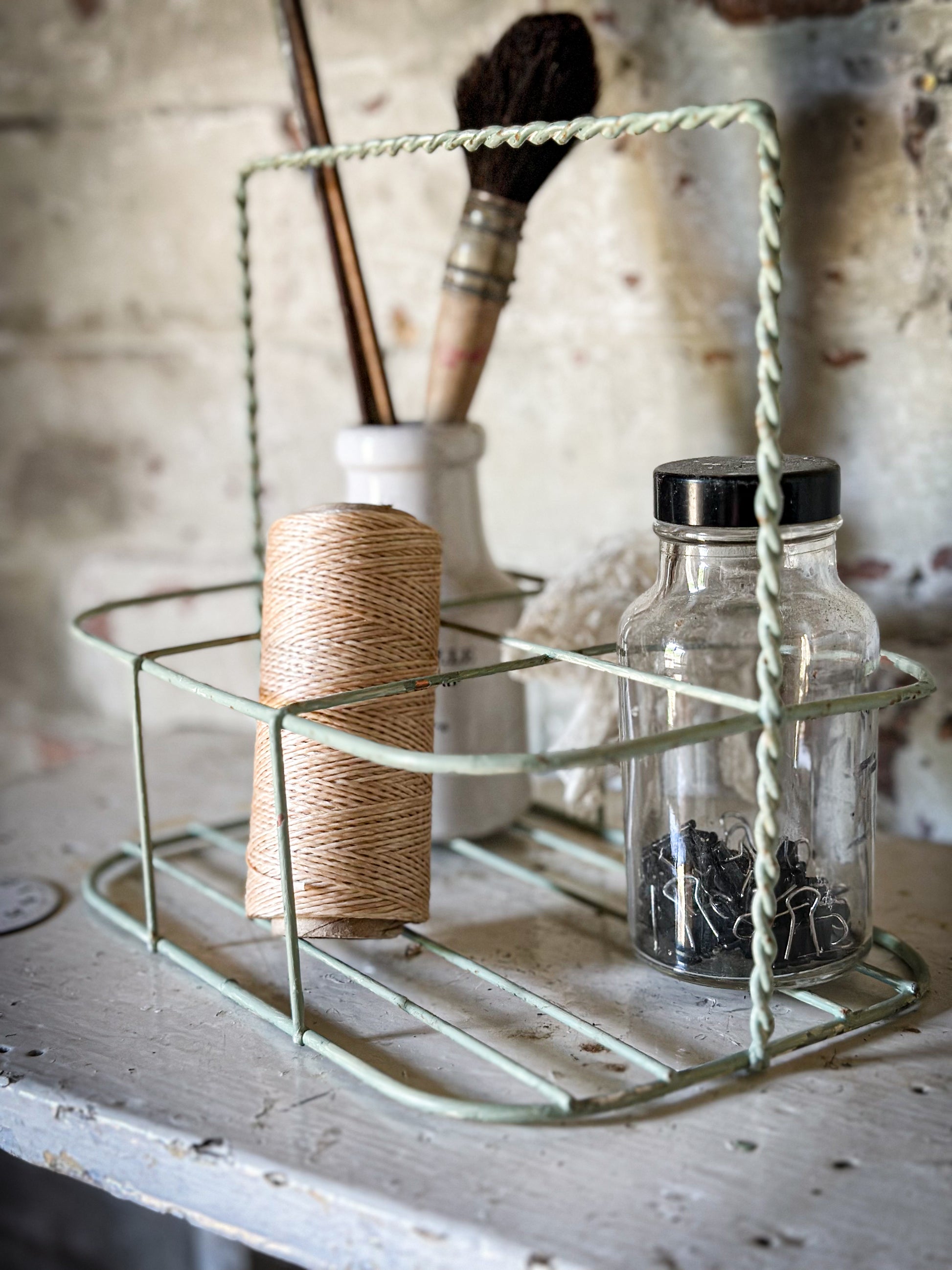 In good condition. Great to hold little bottles of flowers, a craft store or even condiments.