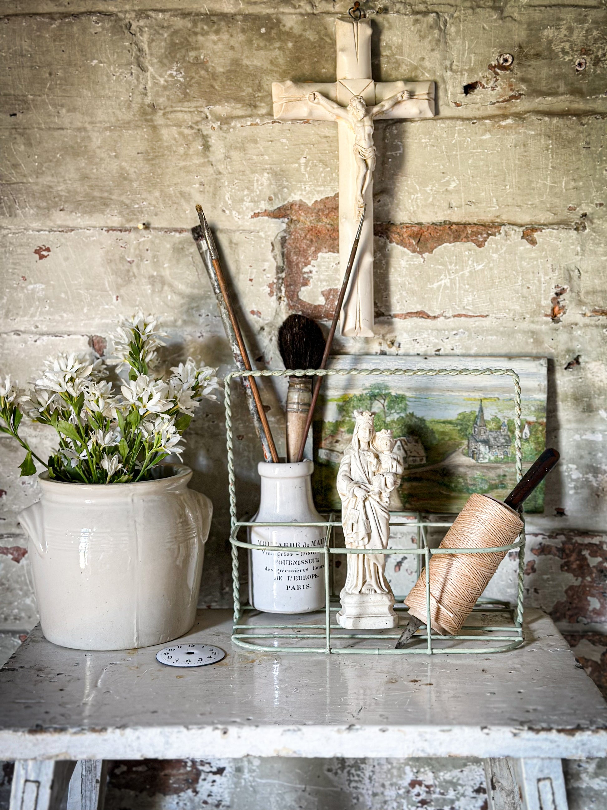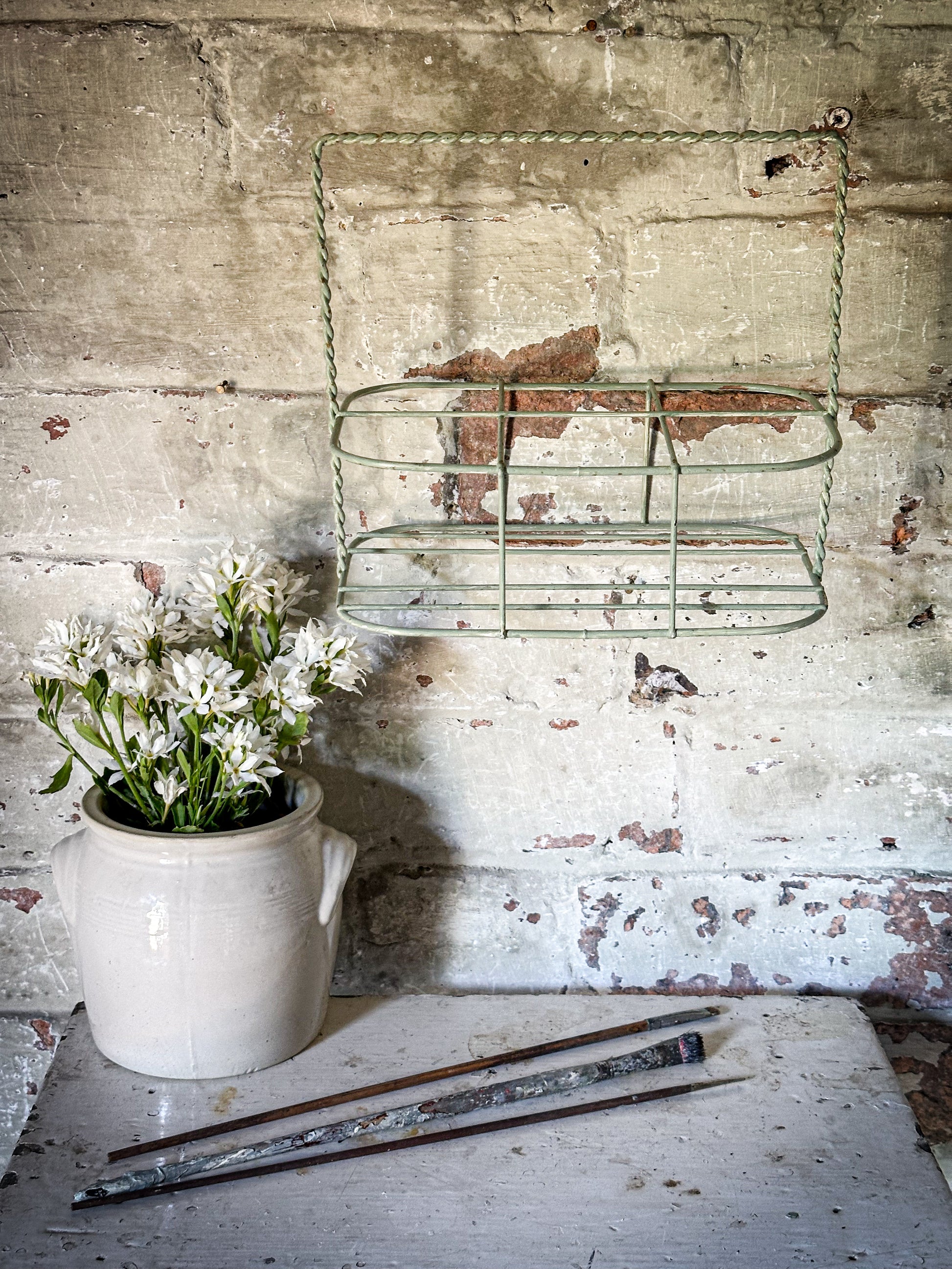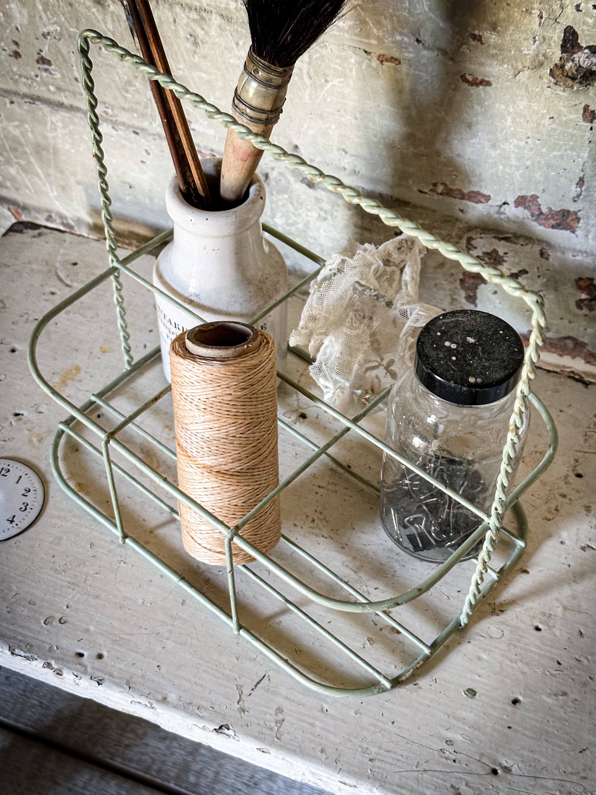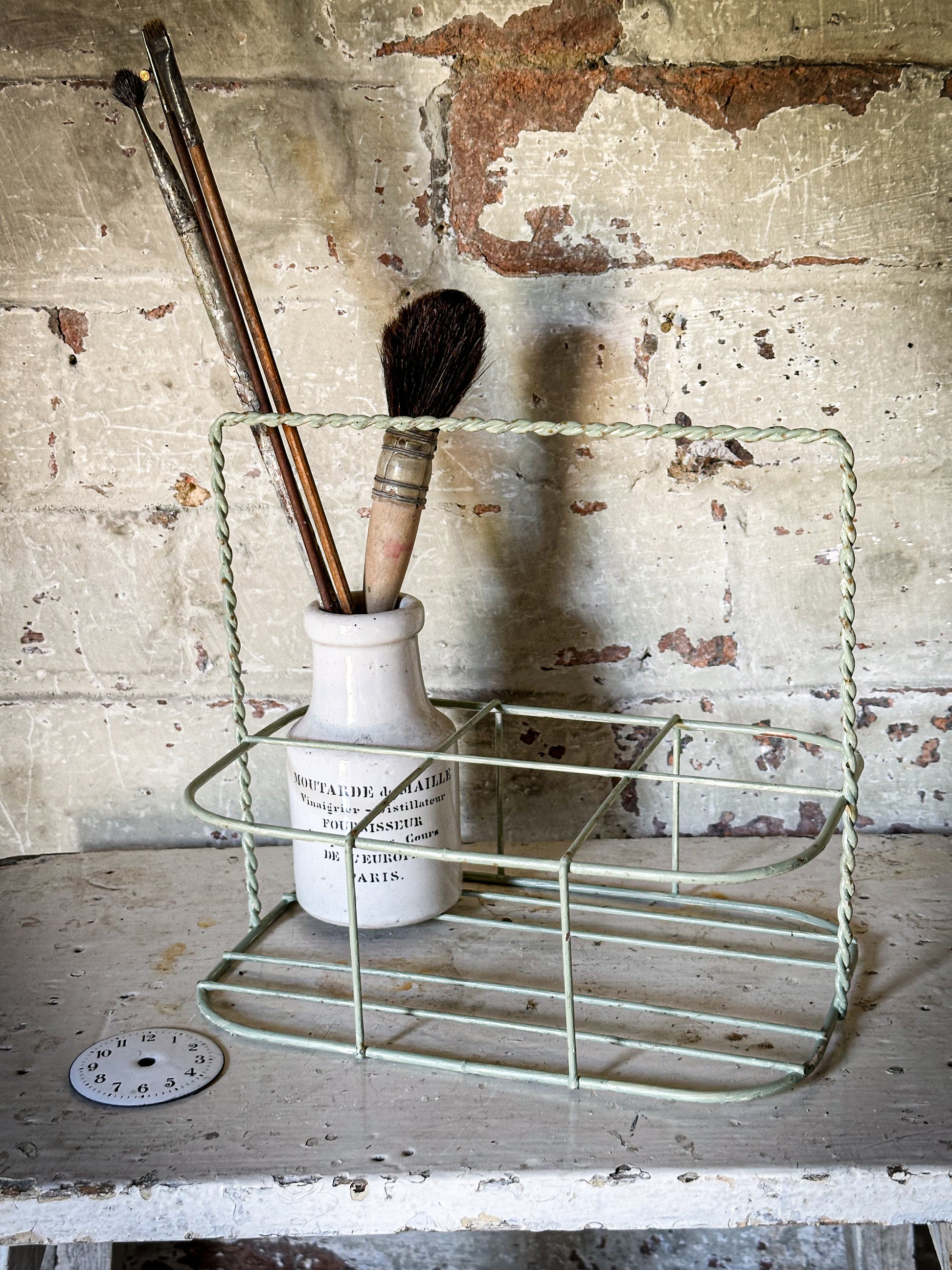 In good condition. Great to hold little bottles of flowers, a craft store or even condiments.