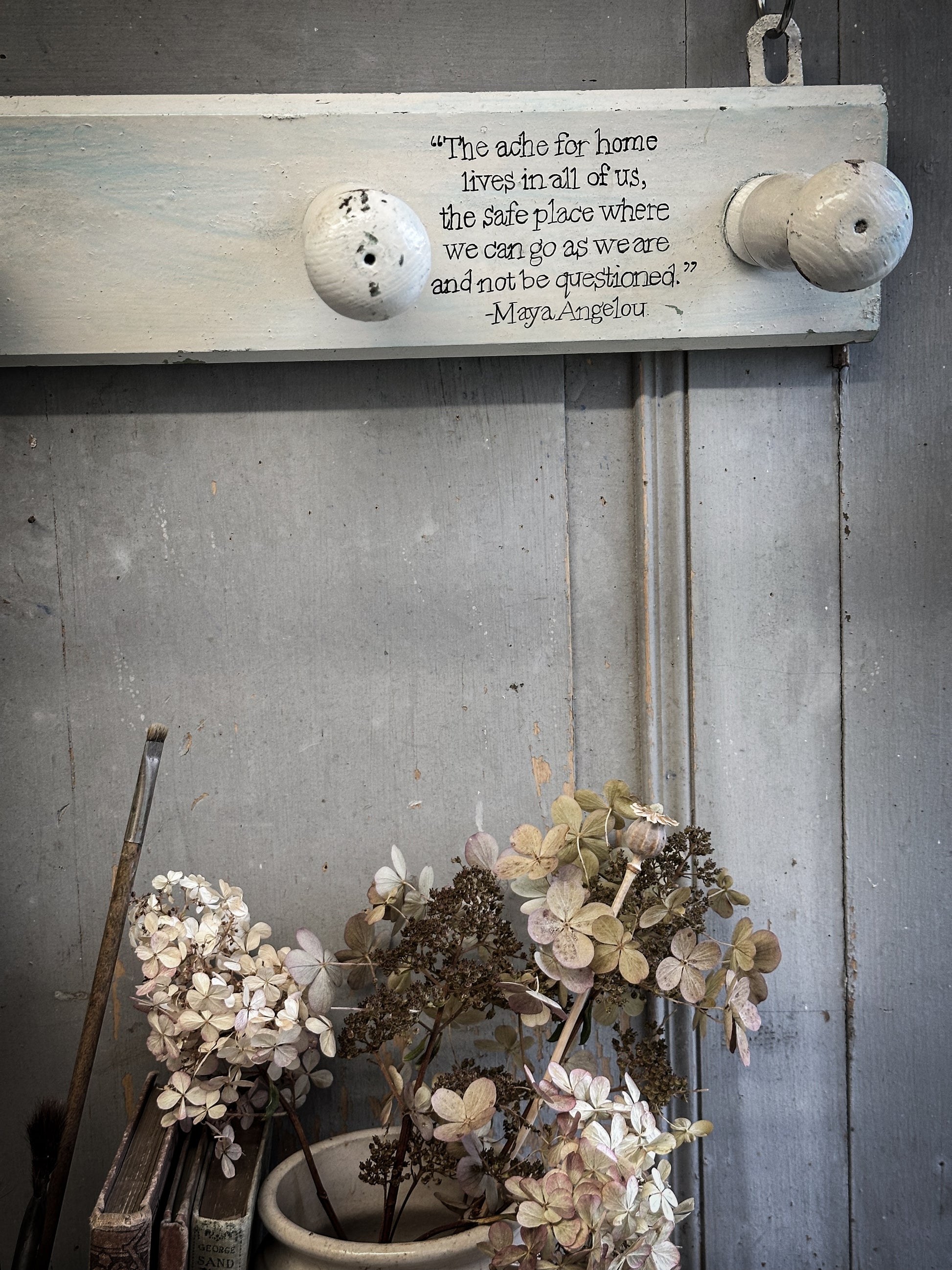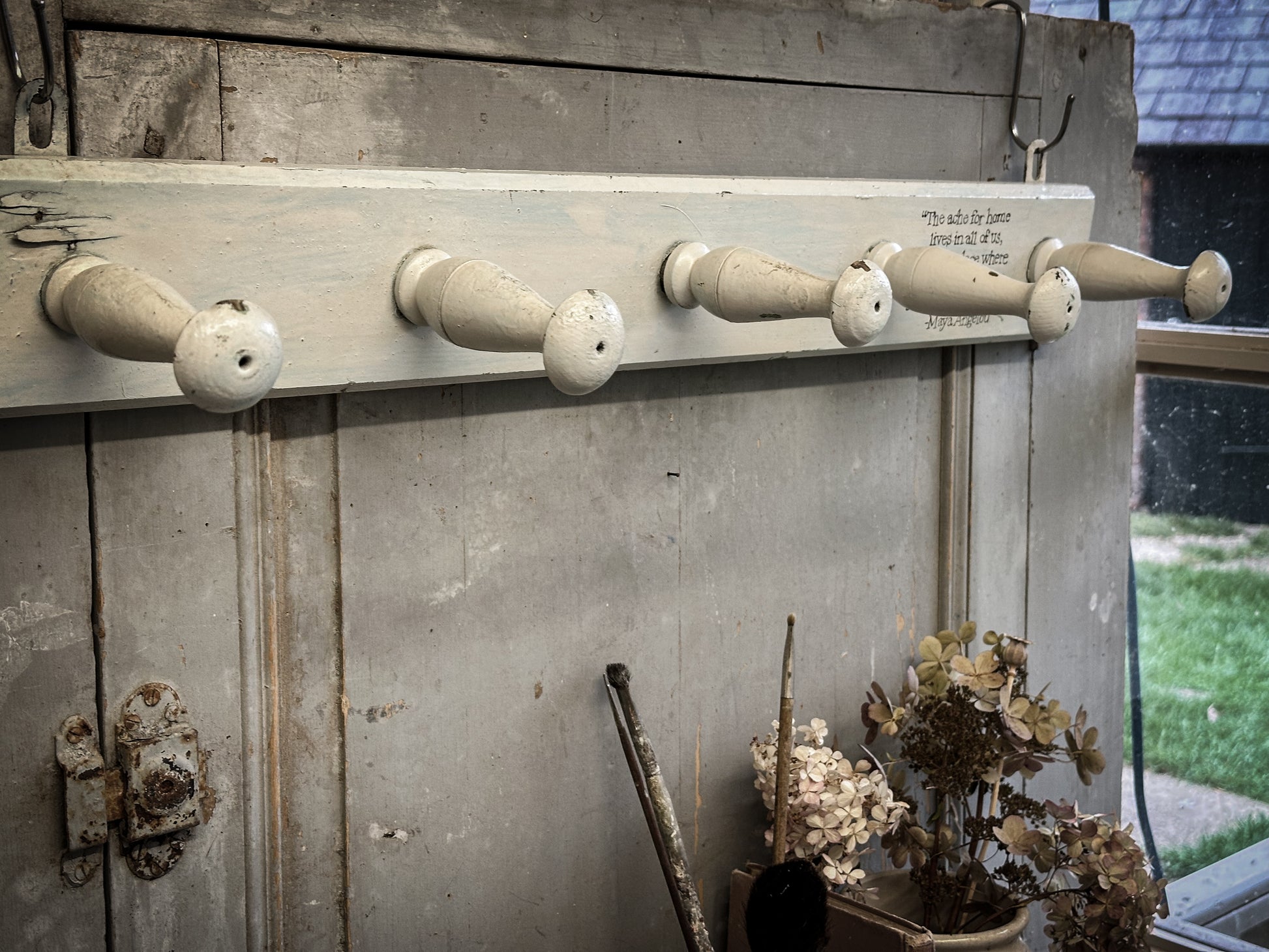 A Vintage Wooden French Coat Peg With Hand Painted Quote