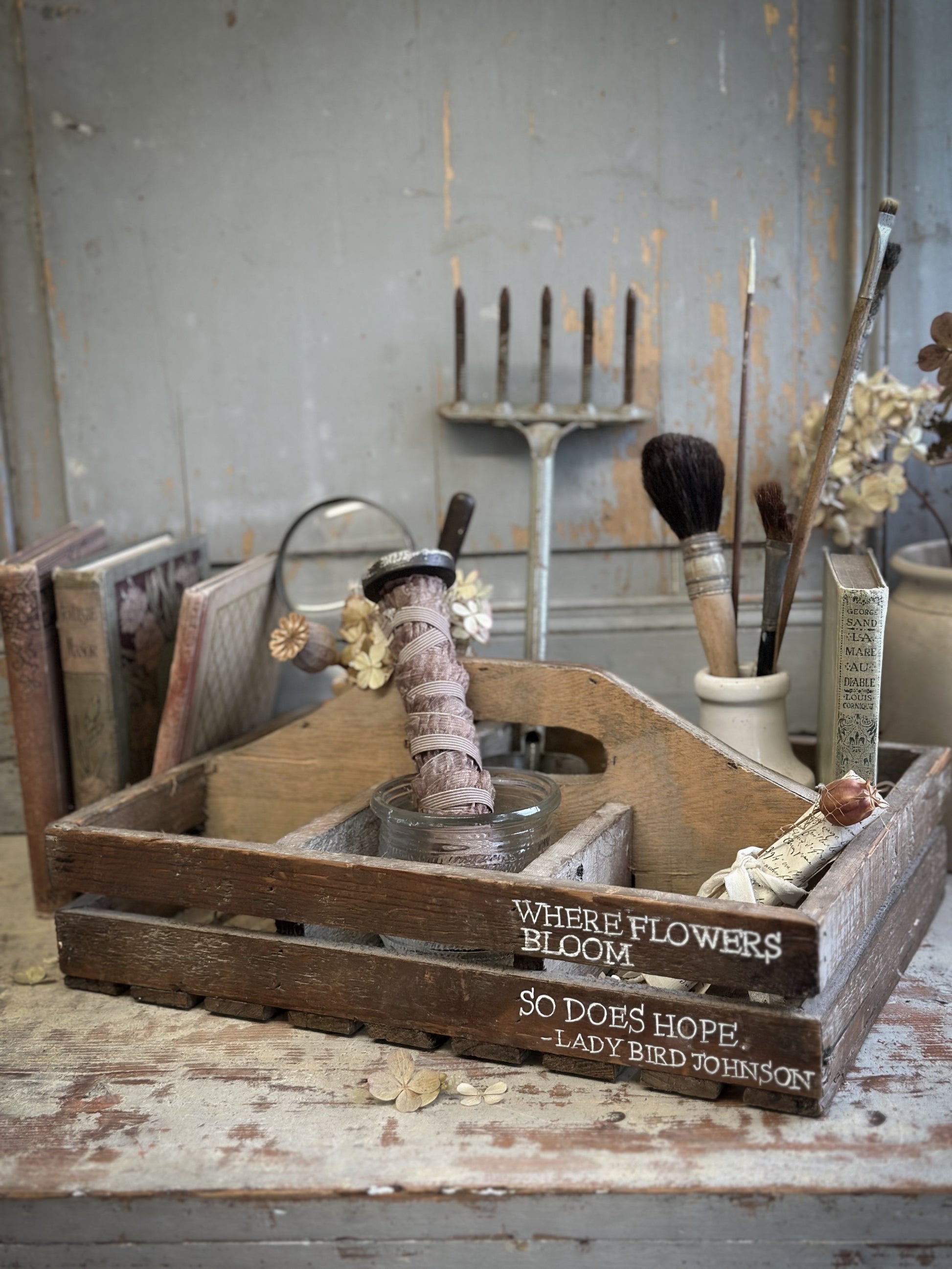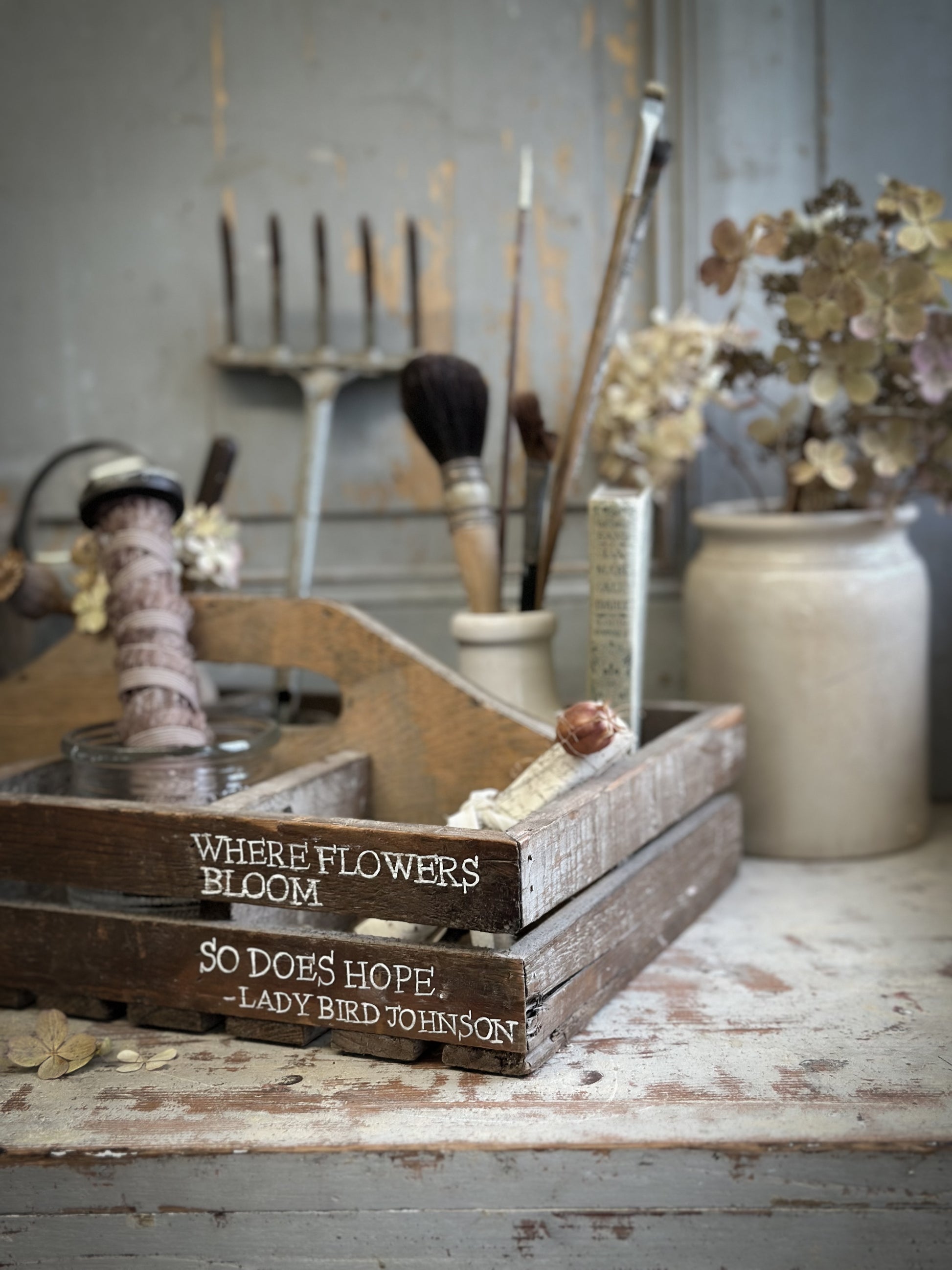 A Vintage Wooden Garden Trug With Hand Painted Quote