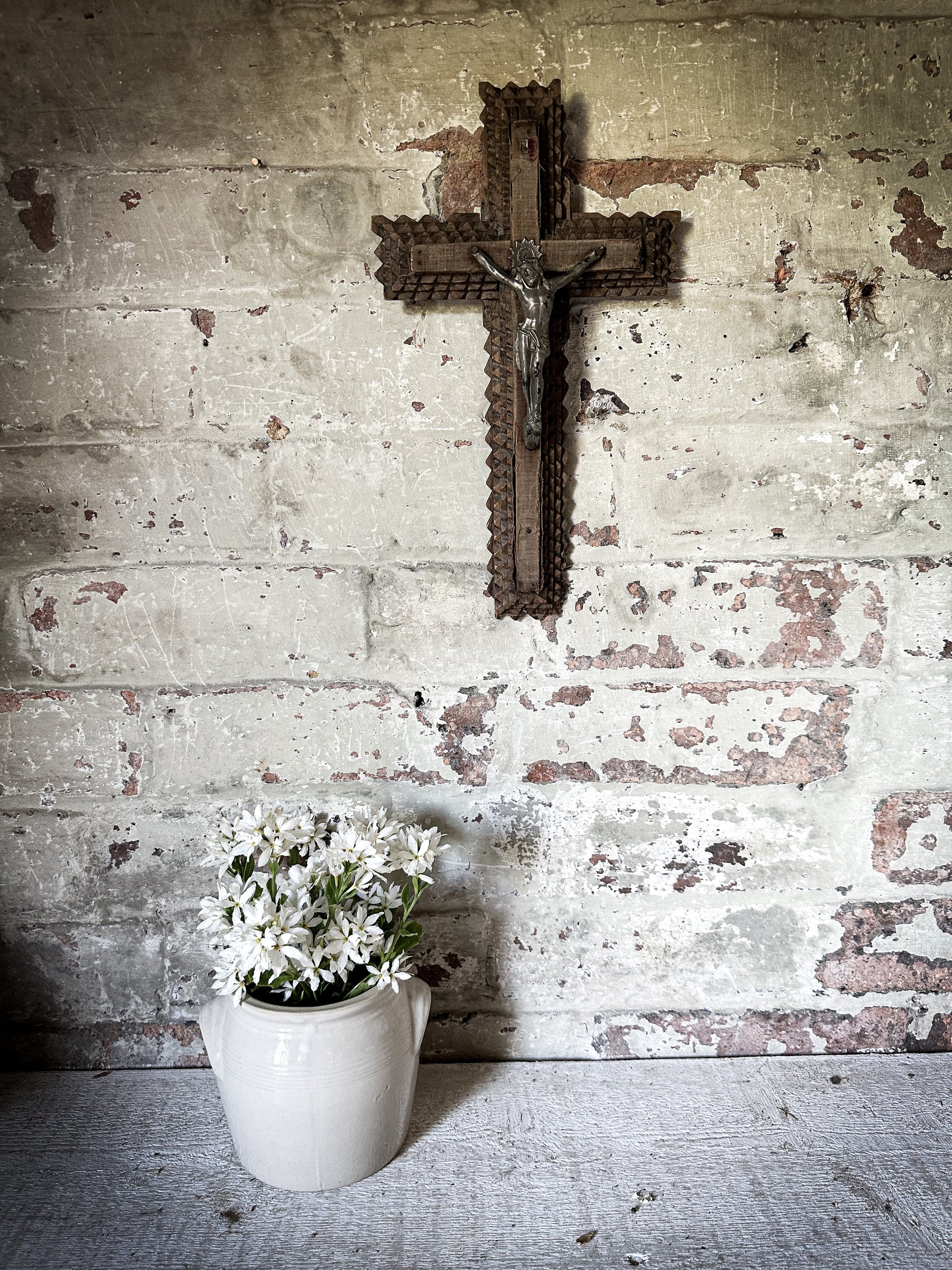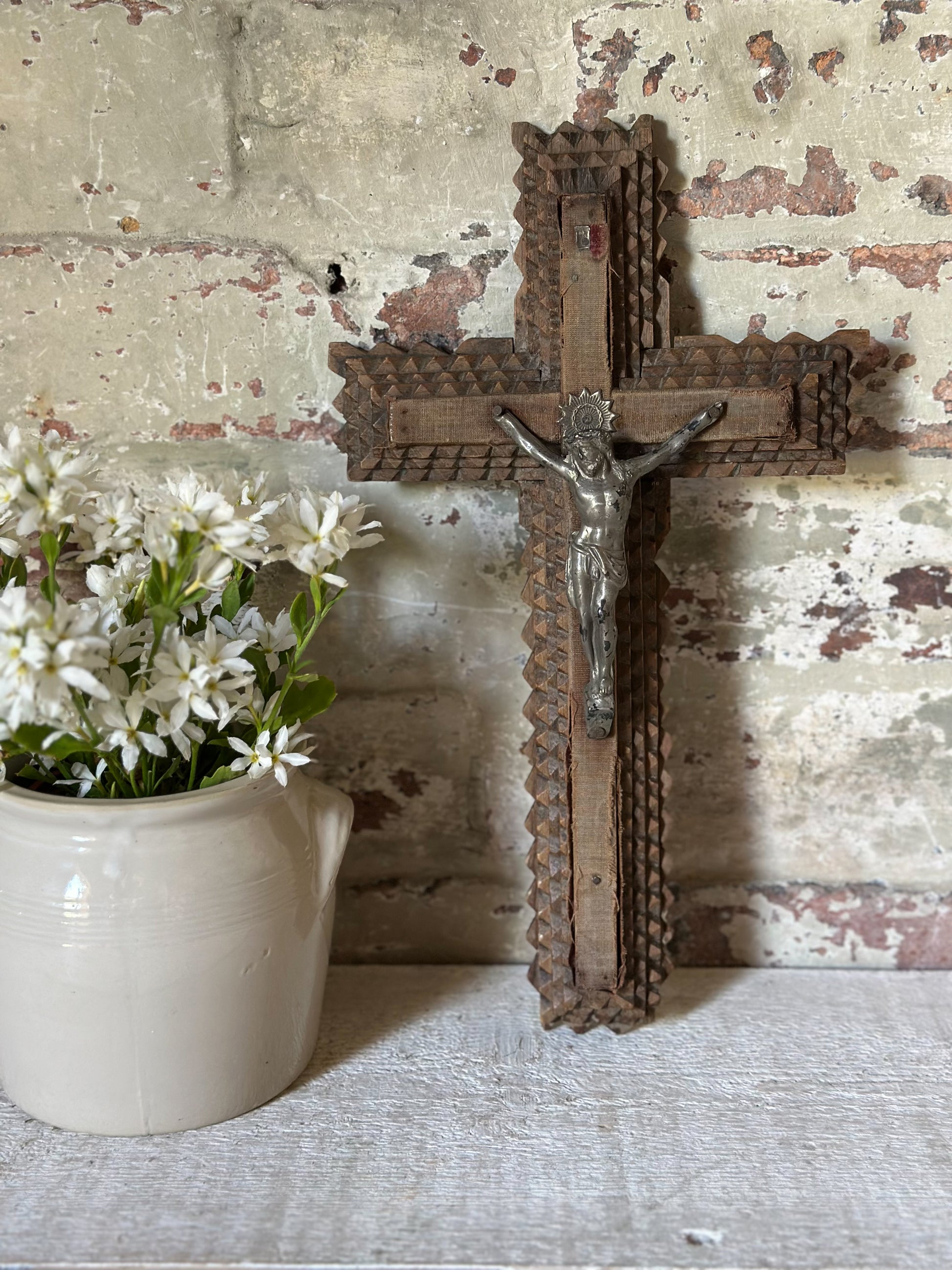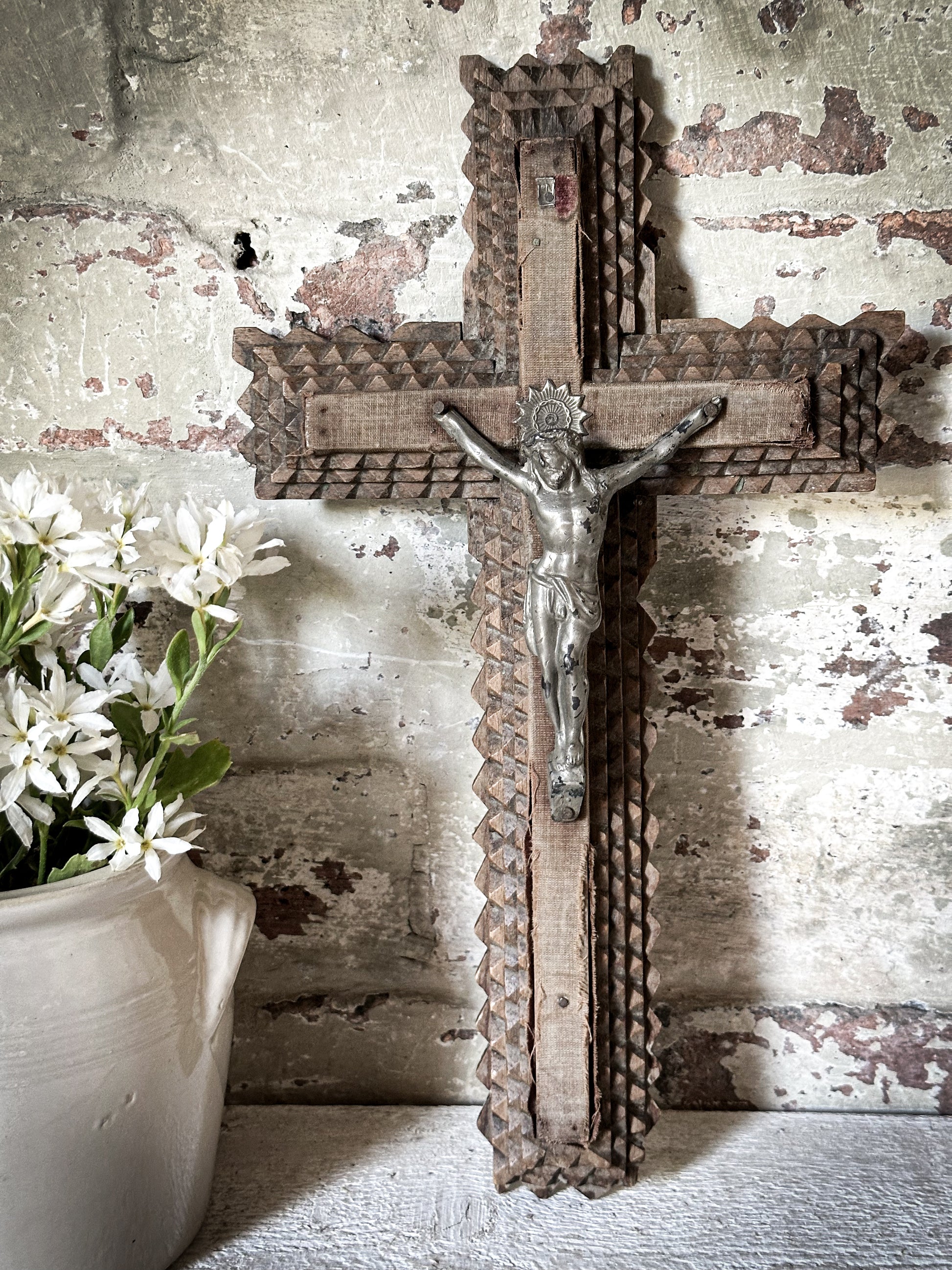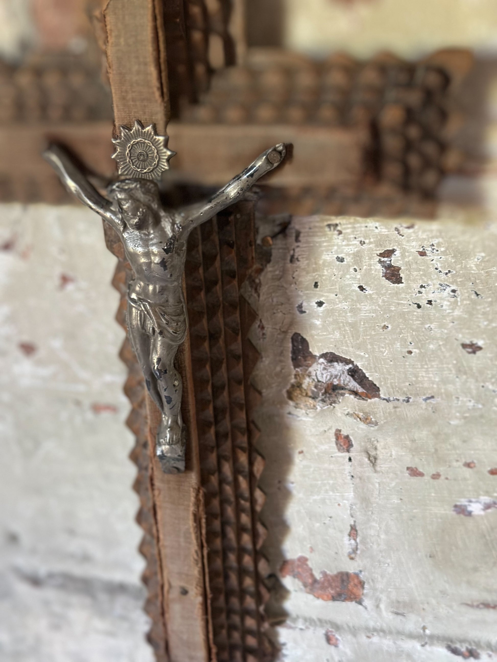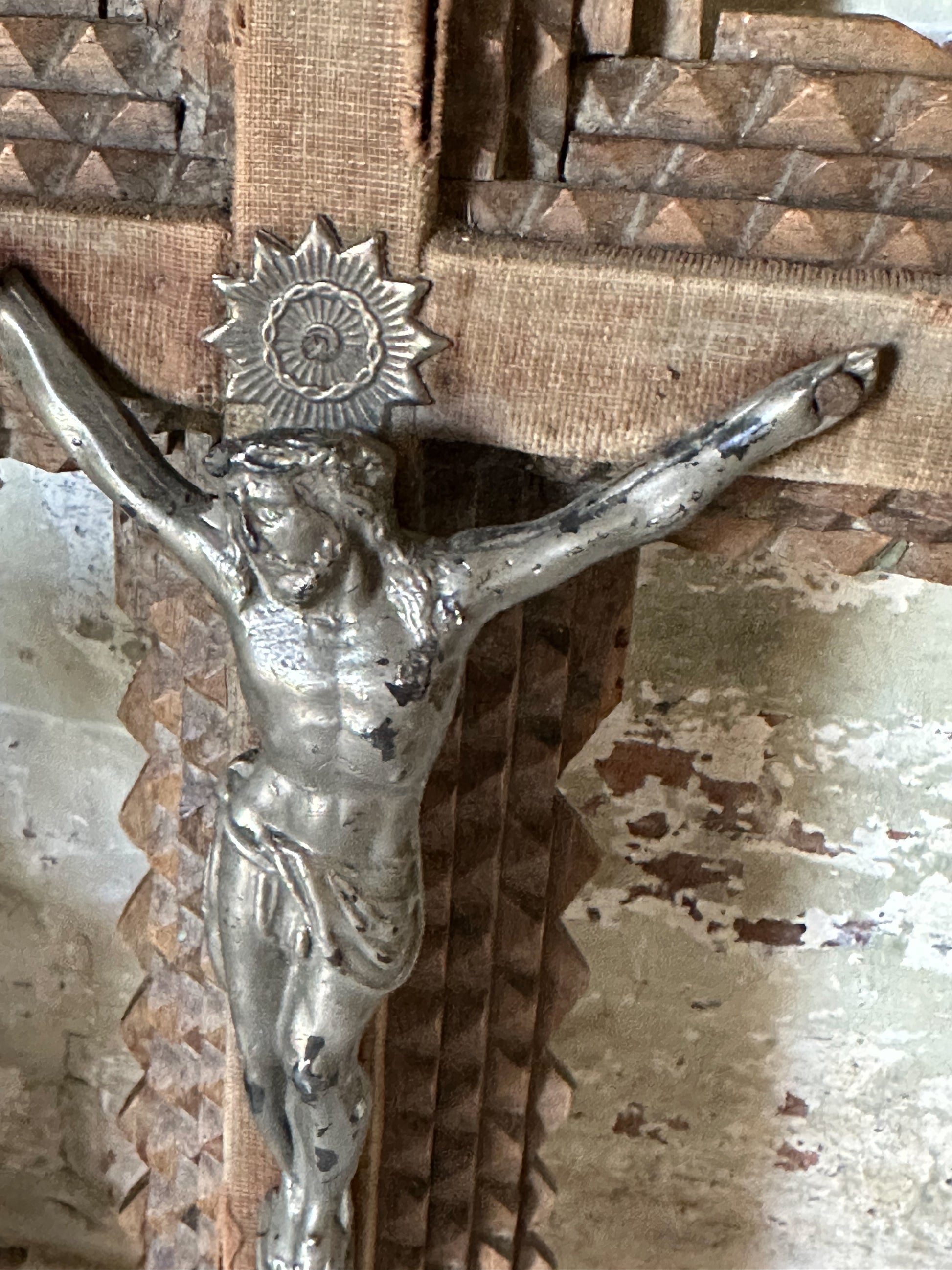 Quite a few losses to the wood and the velvet is very worn but this is a great faded glory piece.
