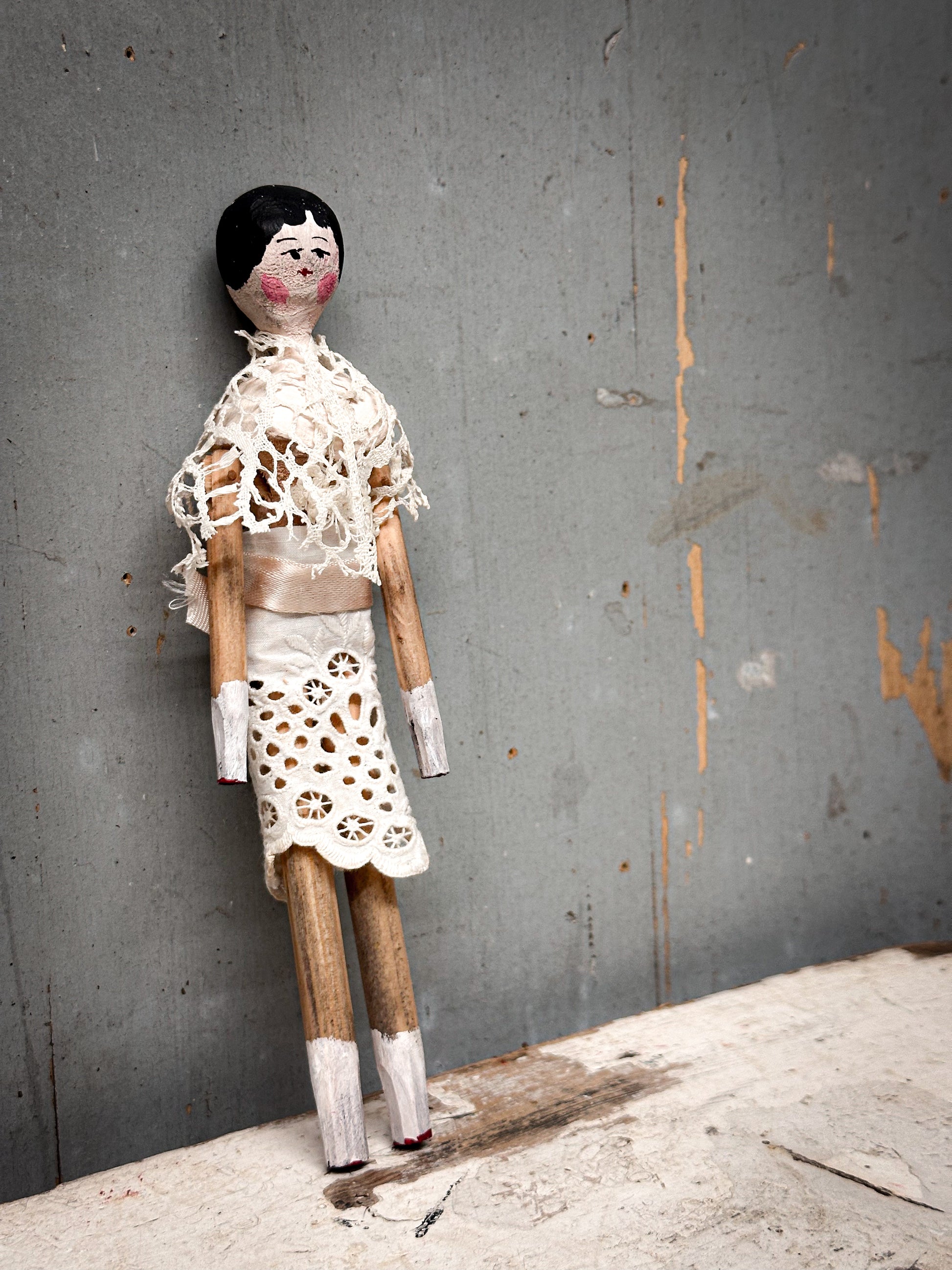 A sweet, characterful folk doll set with timeless charm.