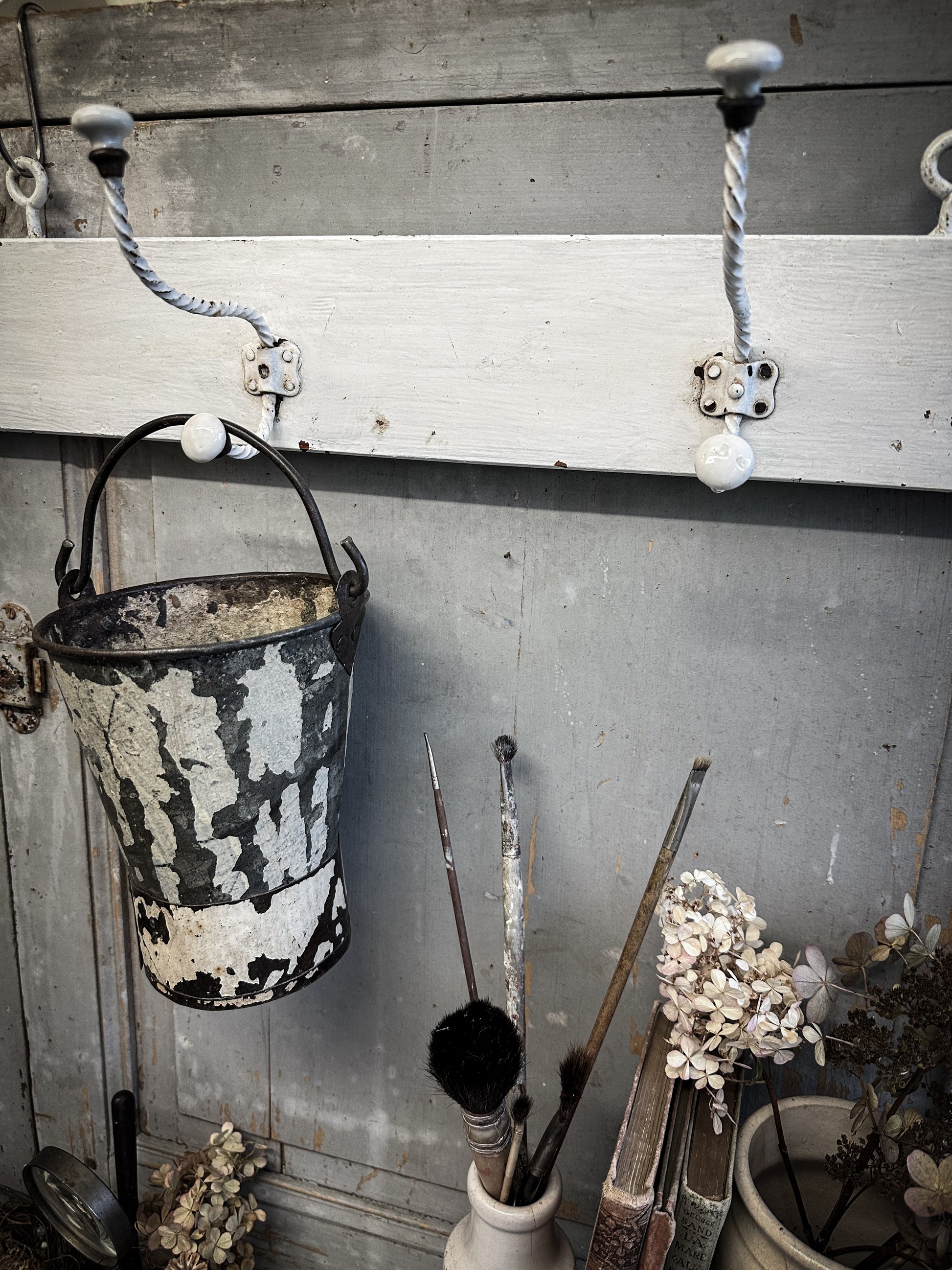 A Vintage Wooden French Coat Peg With Hand Painted Quote