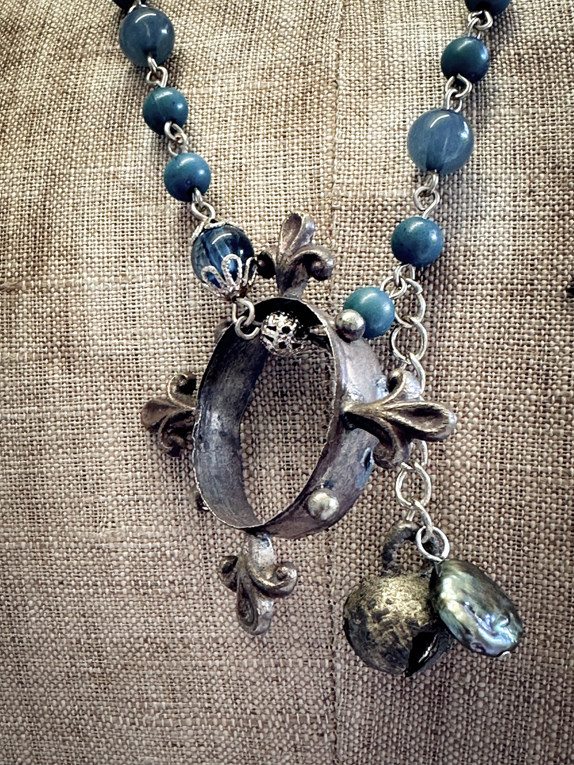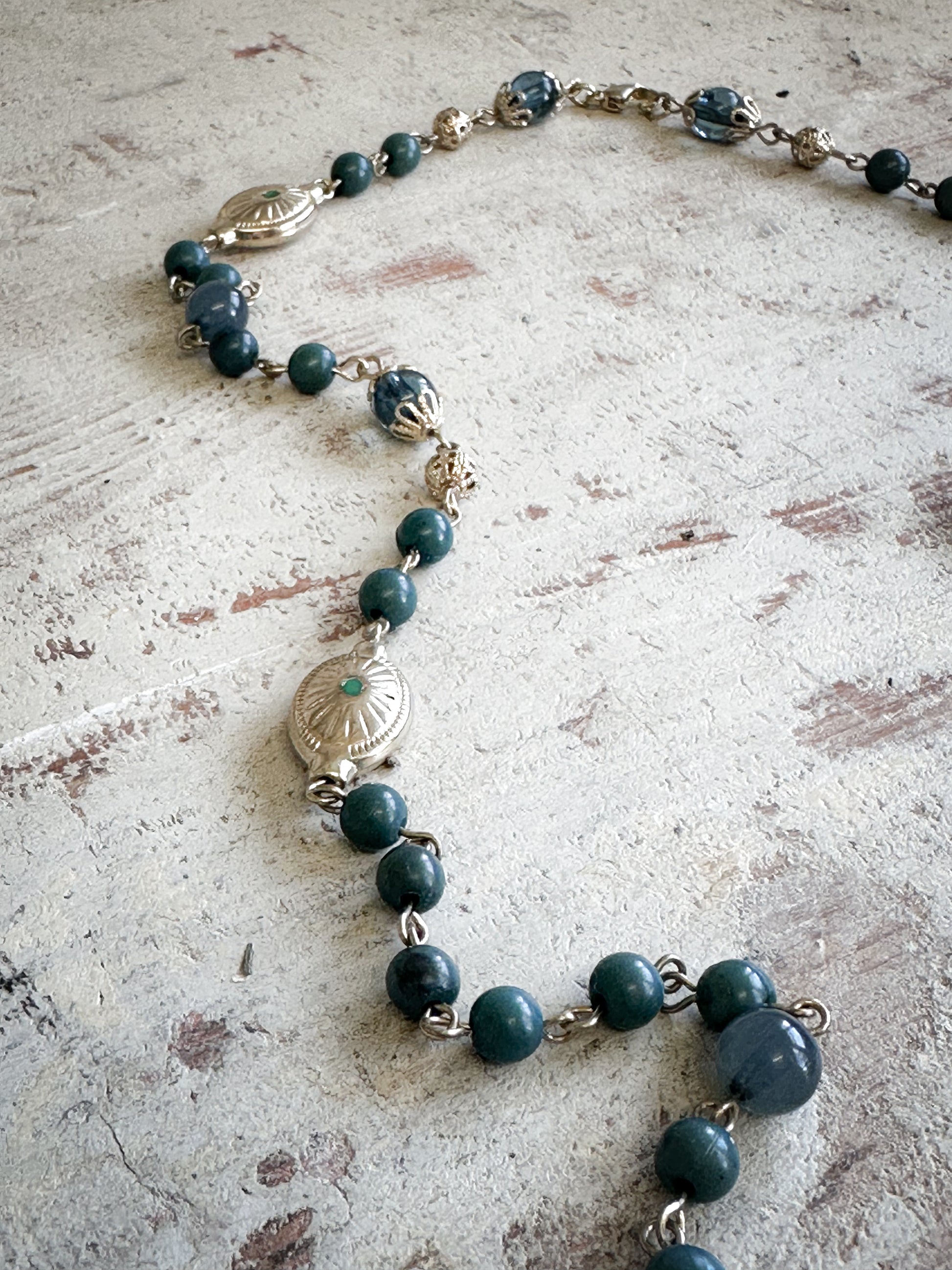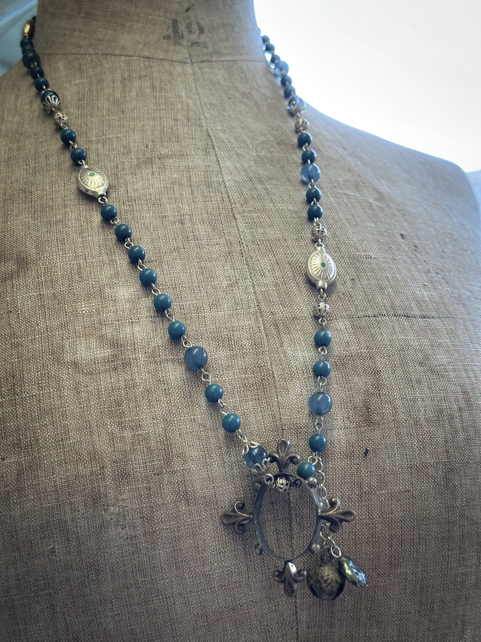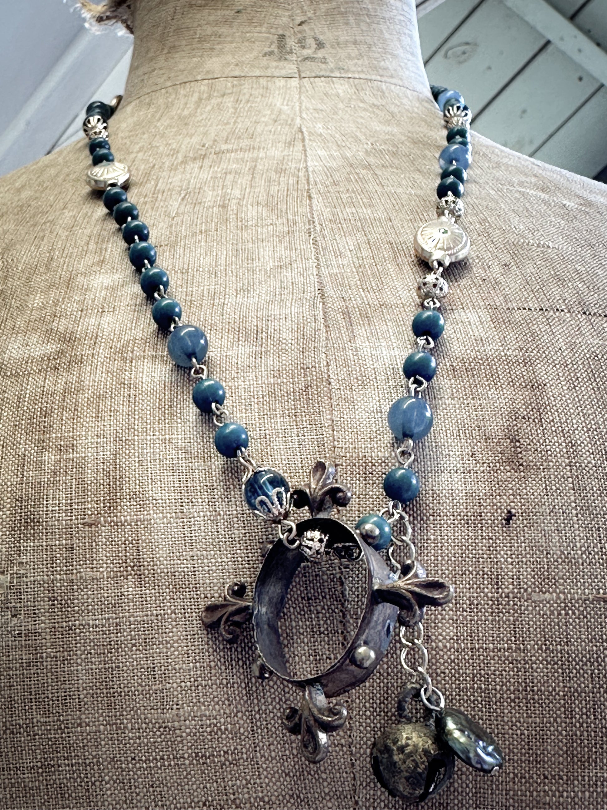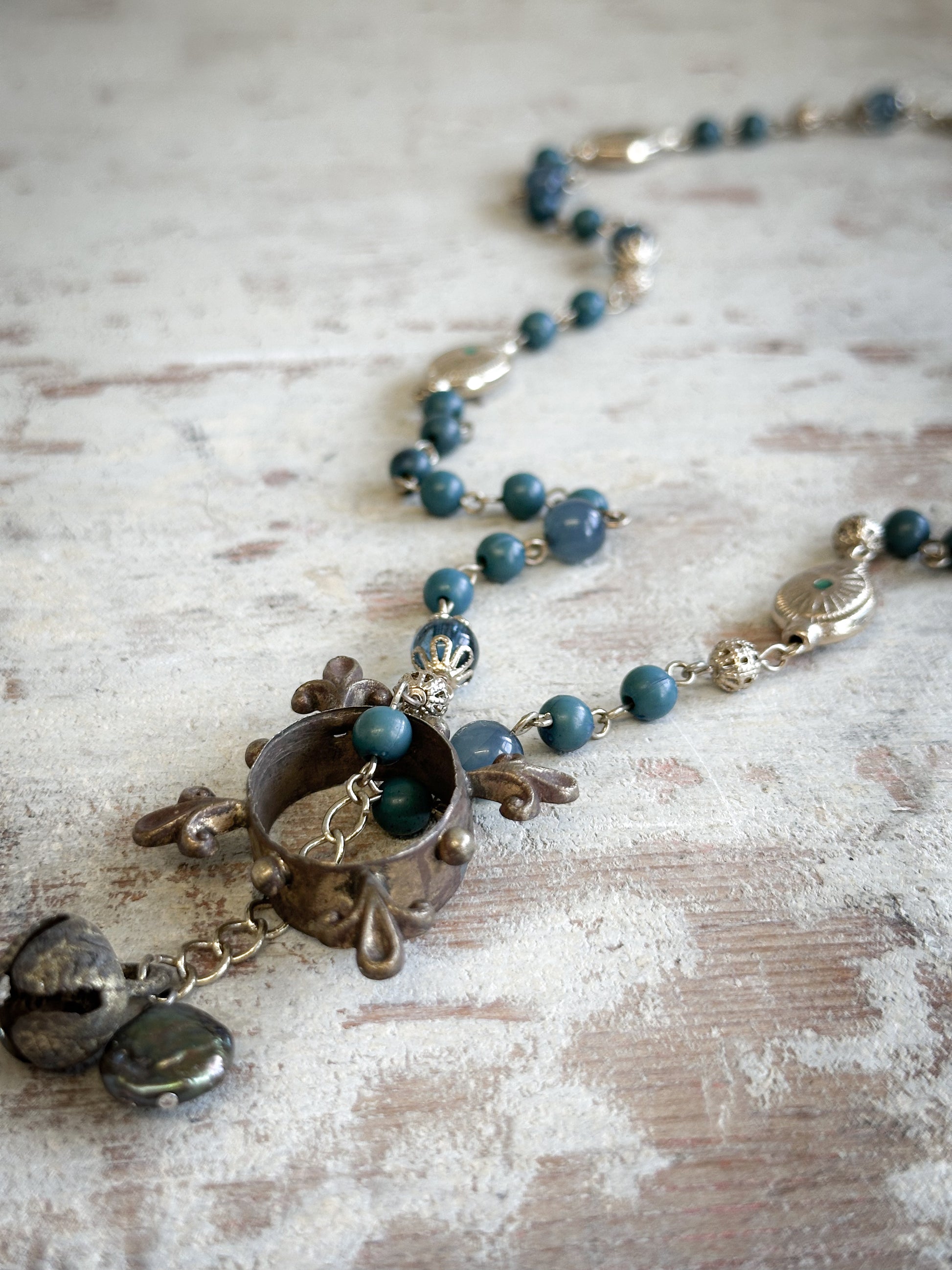 Found Object Vintage Beaded Necklace with Antique Brass Crown by Jealous Moon Jewellery