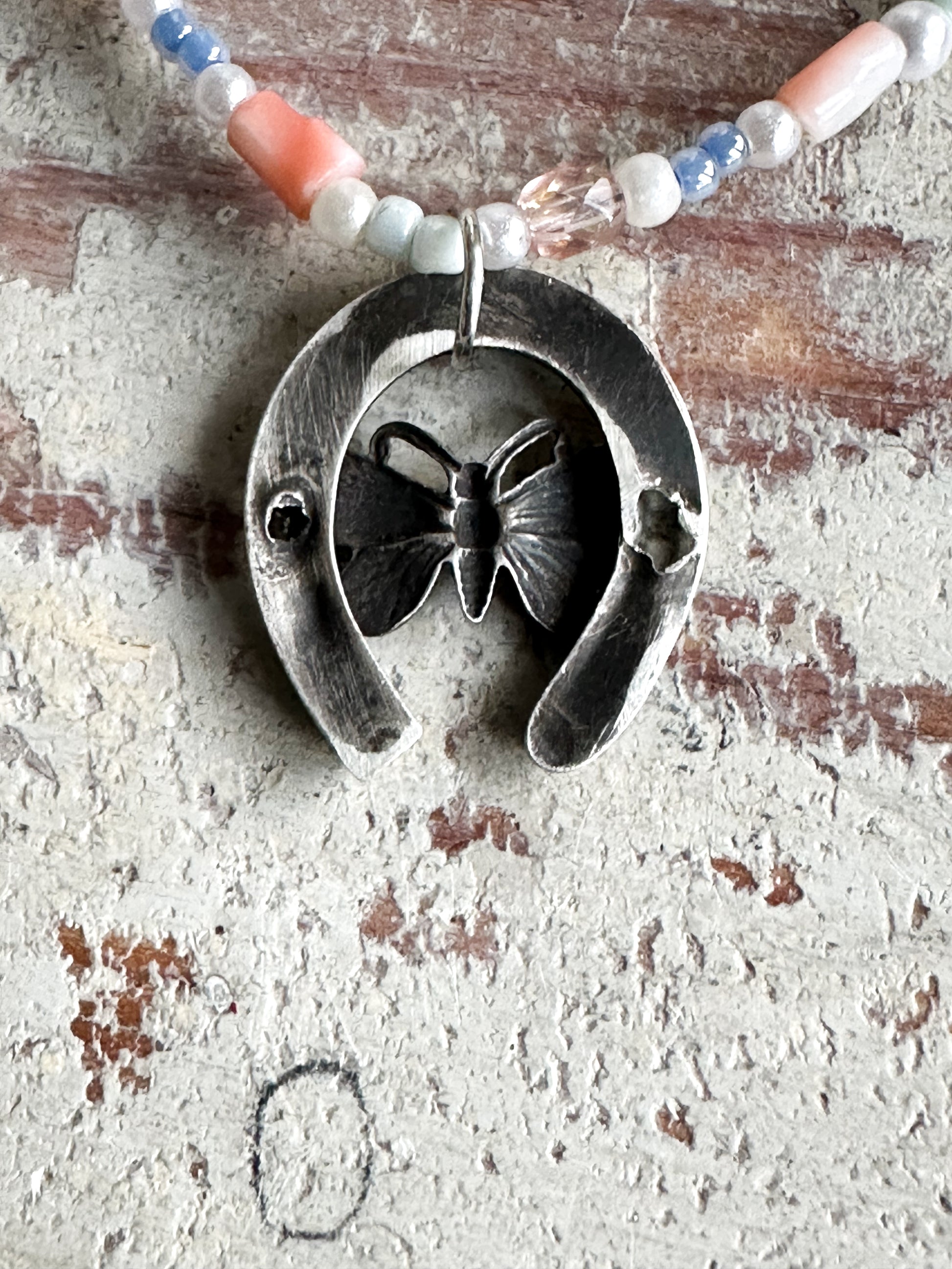 Found Object Antique Silver Butterfly Horseshoe Necklace by Jealous Moon Jewellery