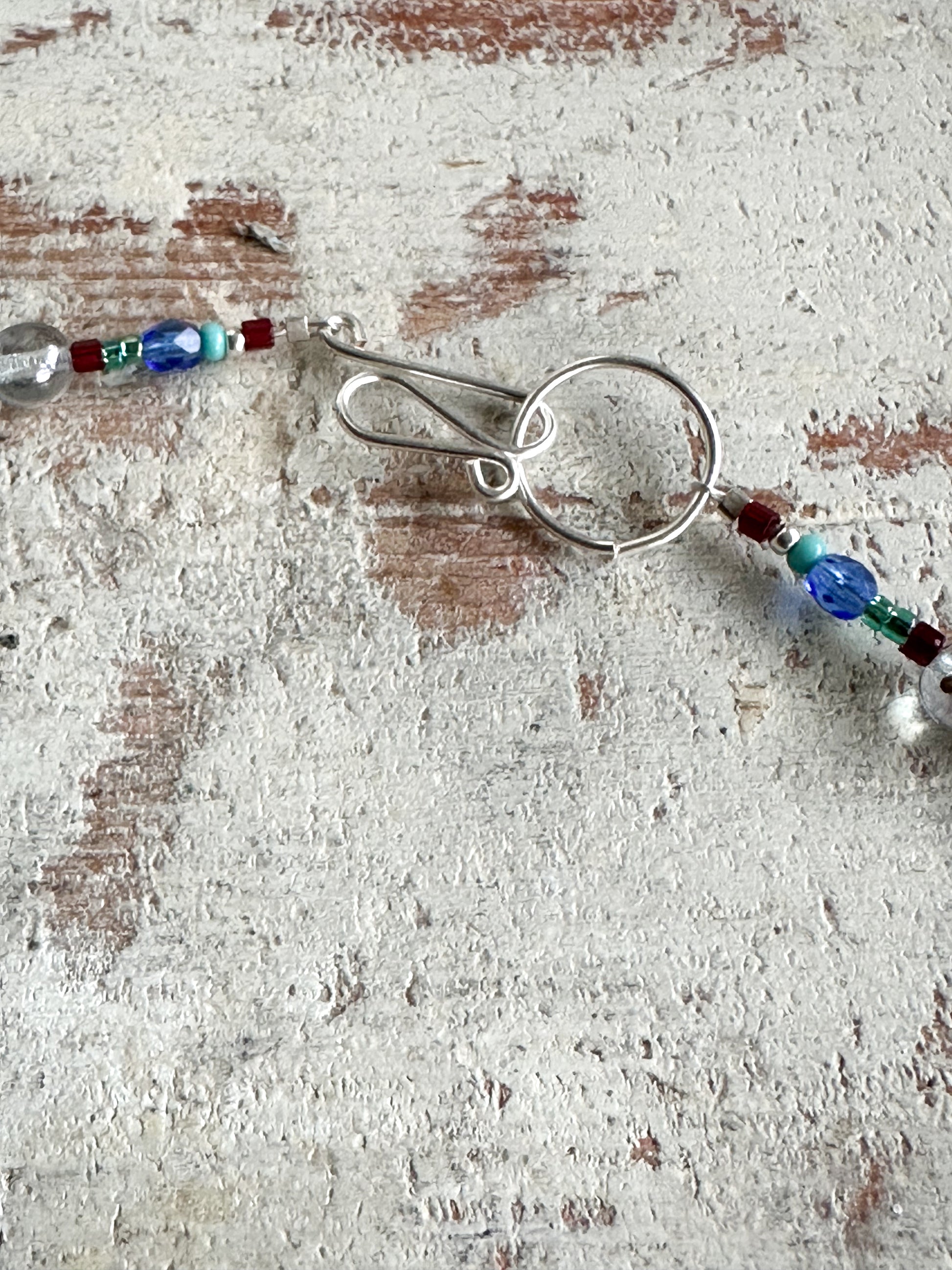 The wired necklace has a stunning collection of vintage Czech blue glass beads, glass bugle beads combined with Swarovski crystals and brushed sterling silver beads.