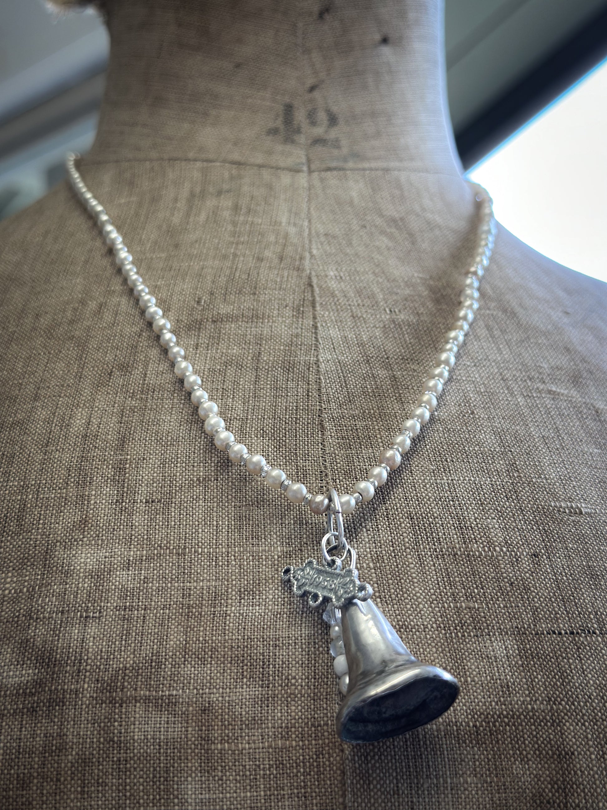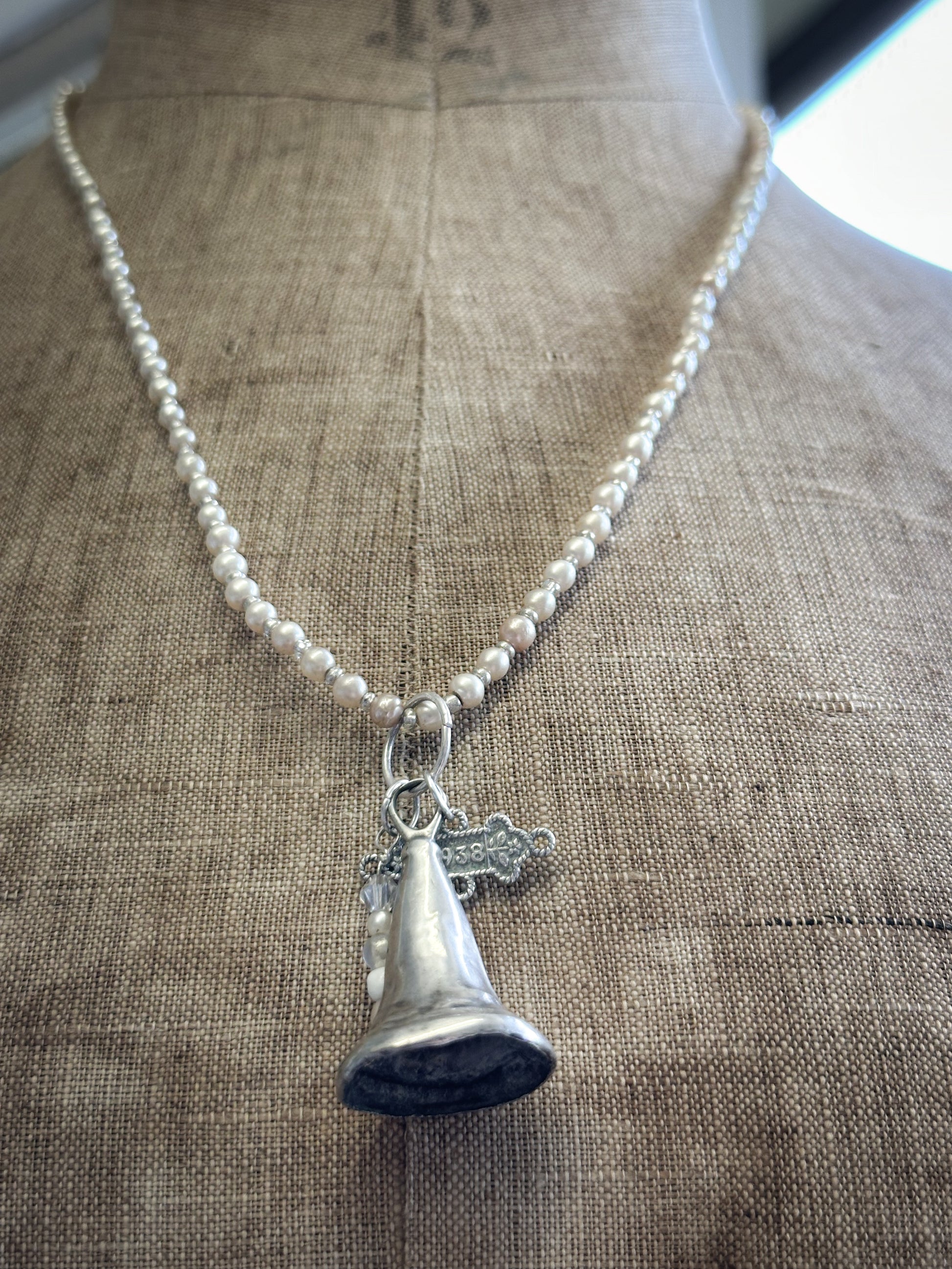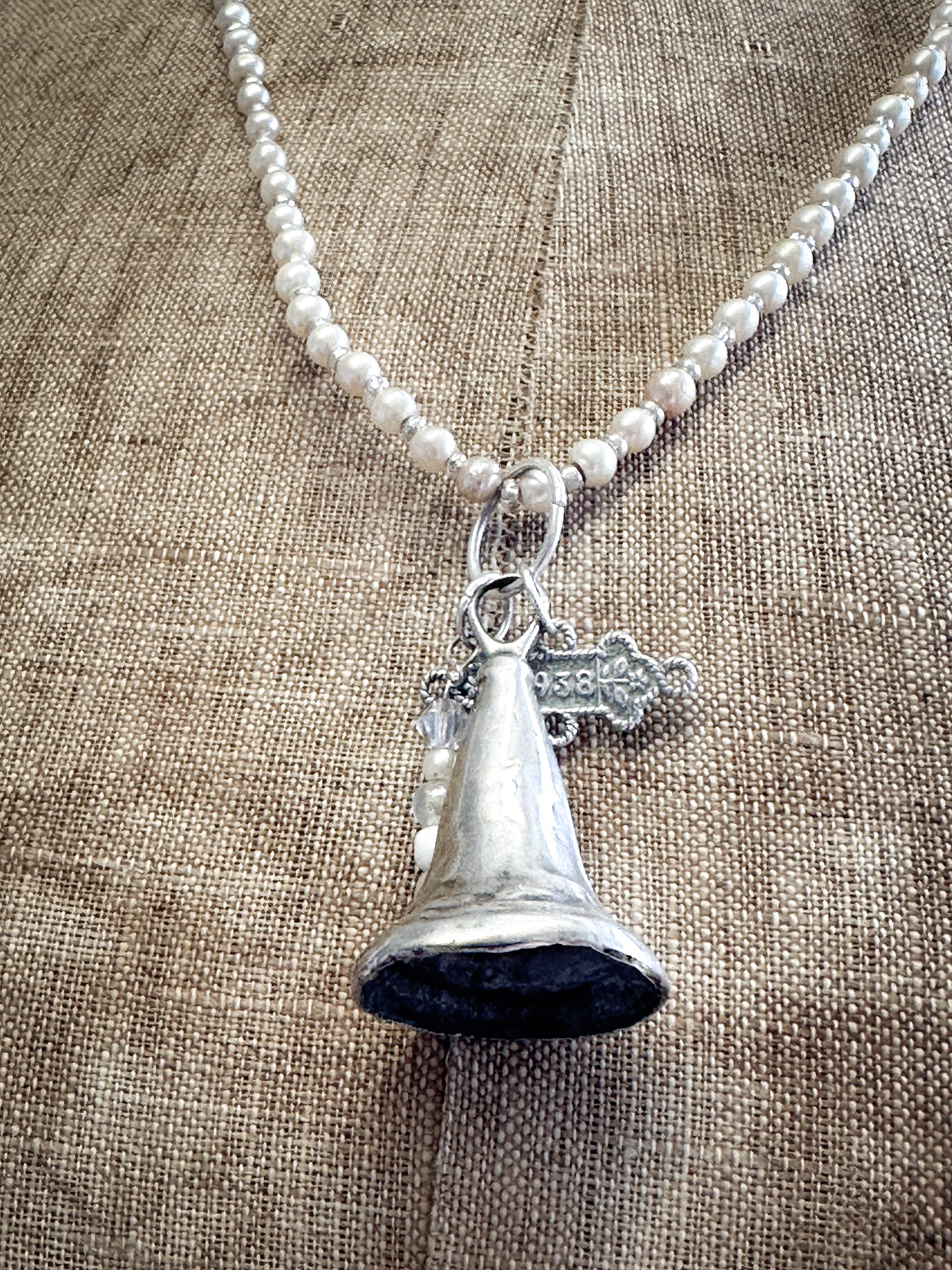 Found Object silver Bell Candle Snuffer Necklace by Jealous Moon Jewellery