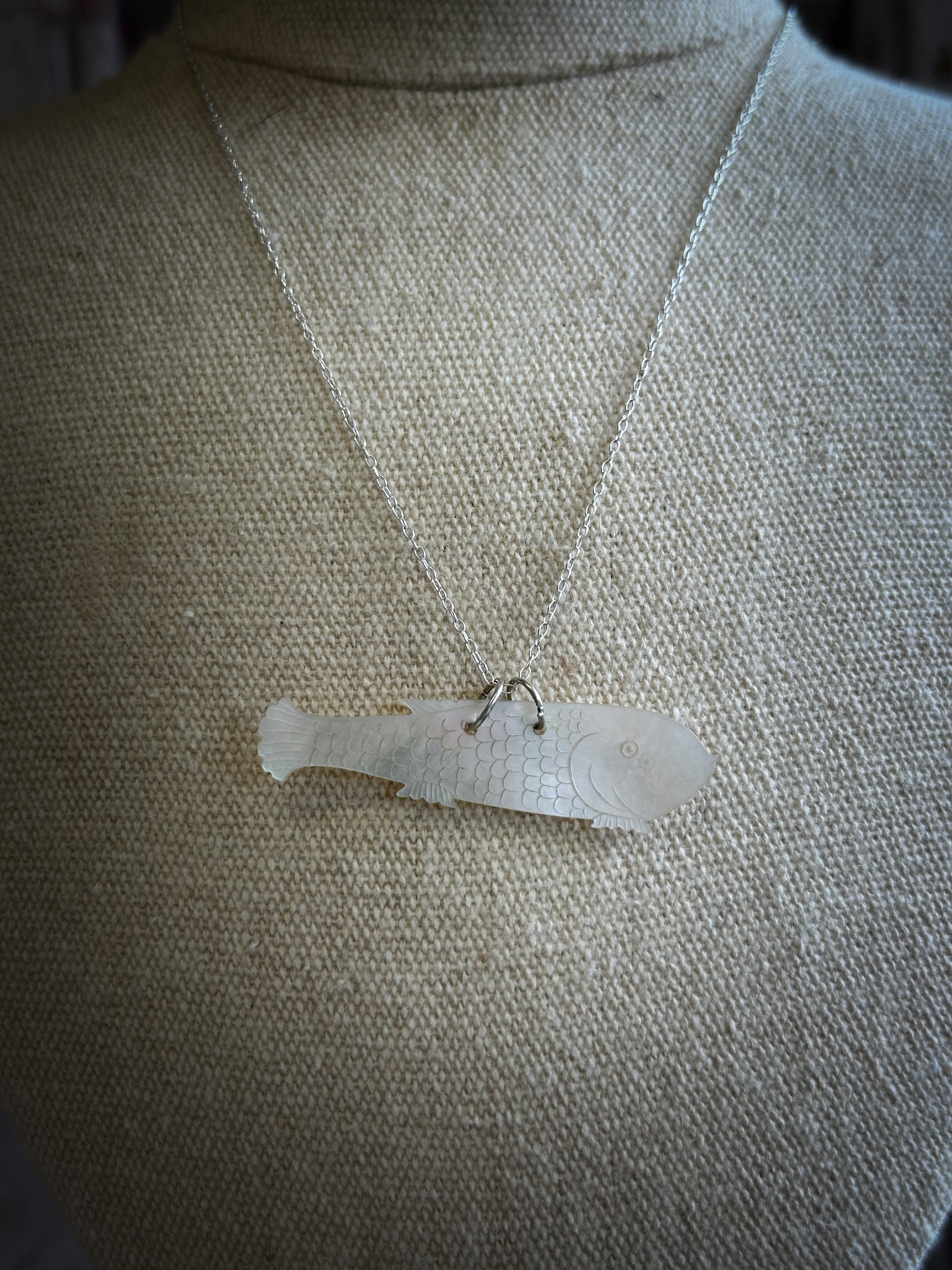 Found Object Mother of Pearl Fish Necklace by Jealous Moon Jewellery