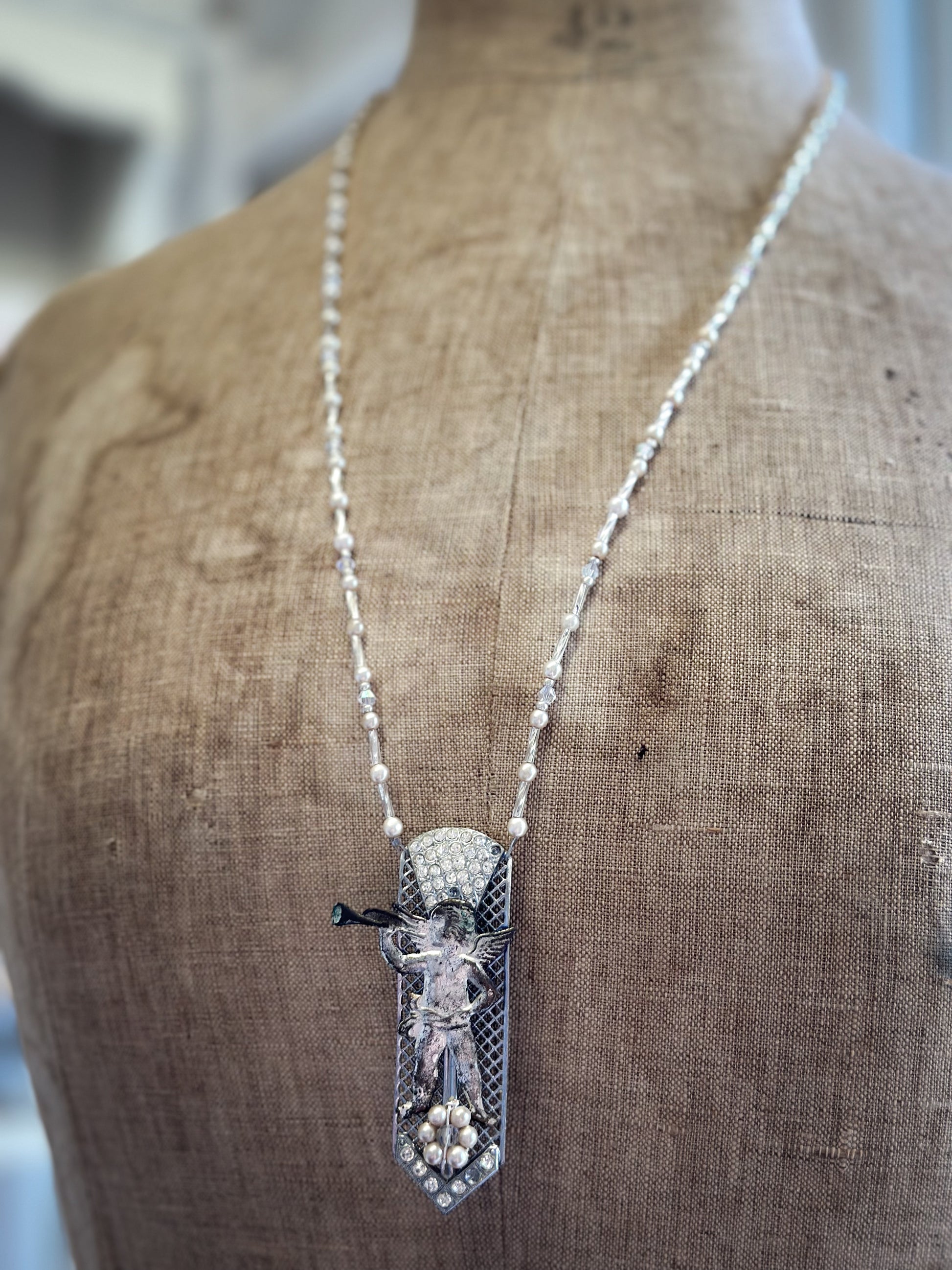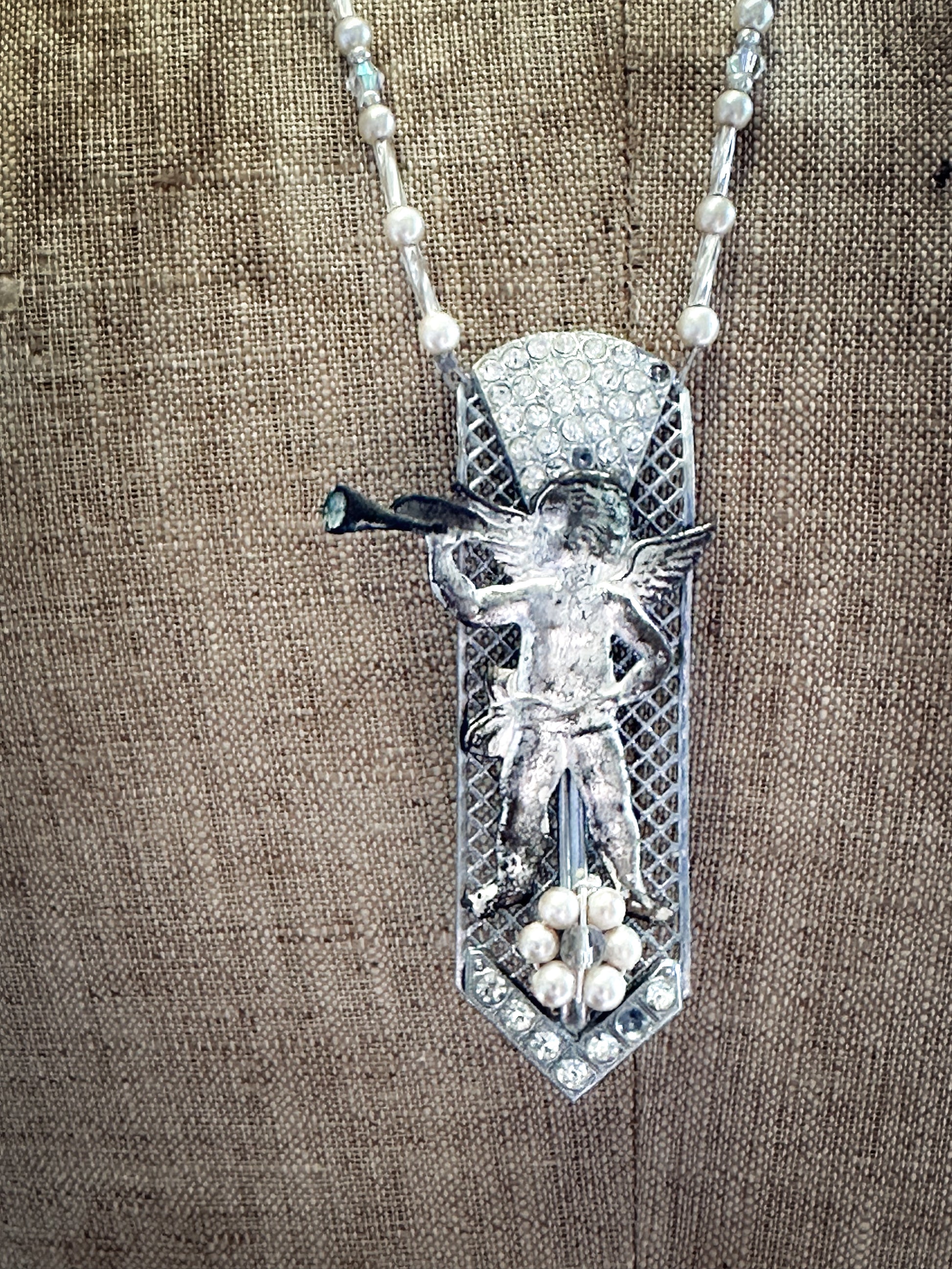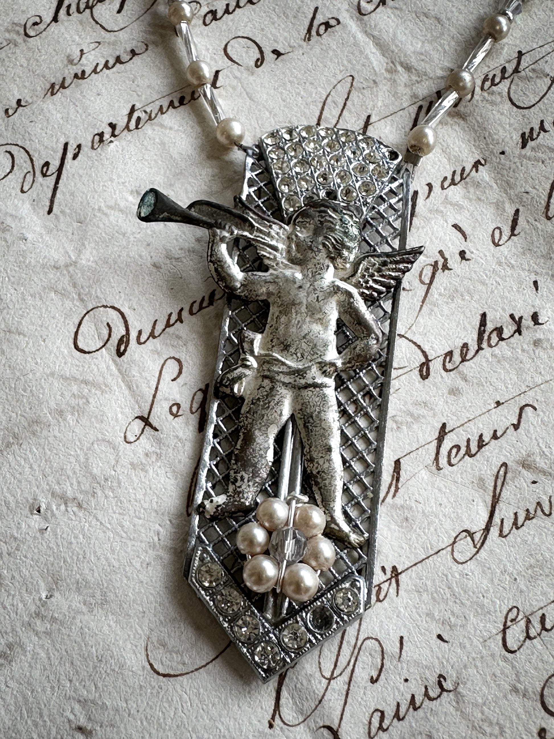 Found Object Art Deco Dress Clip with Cherub Necklace by Jealous Moon Jewellery