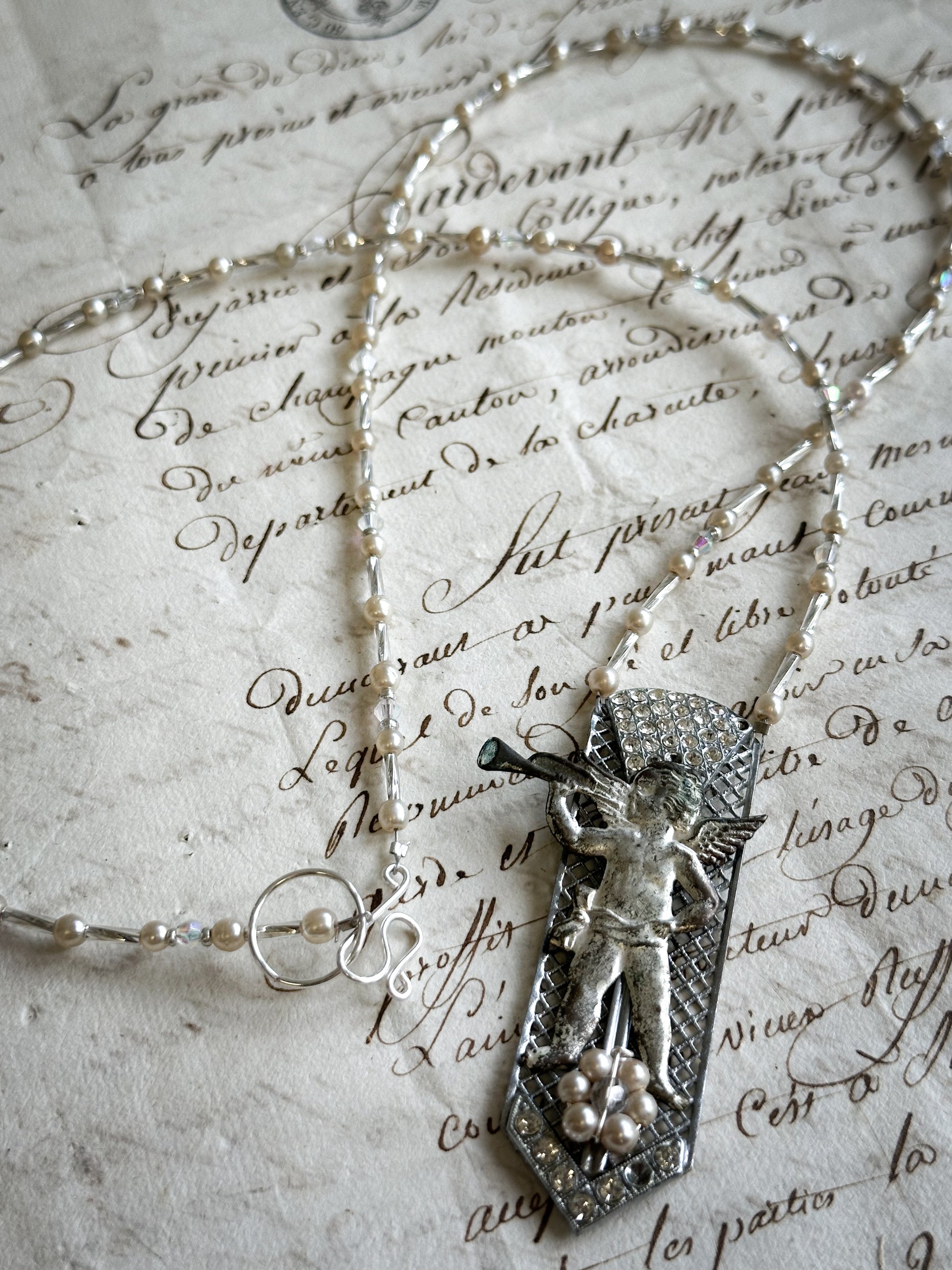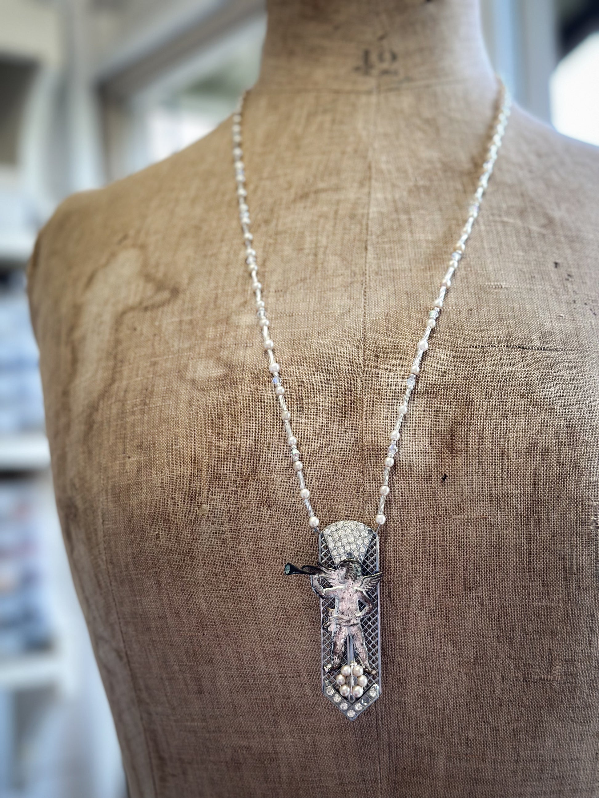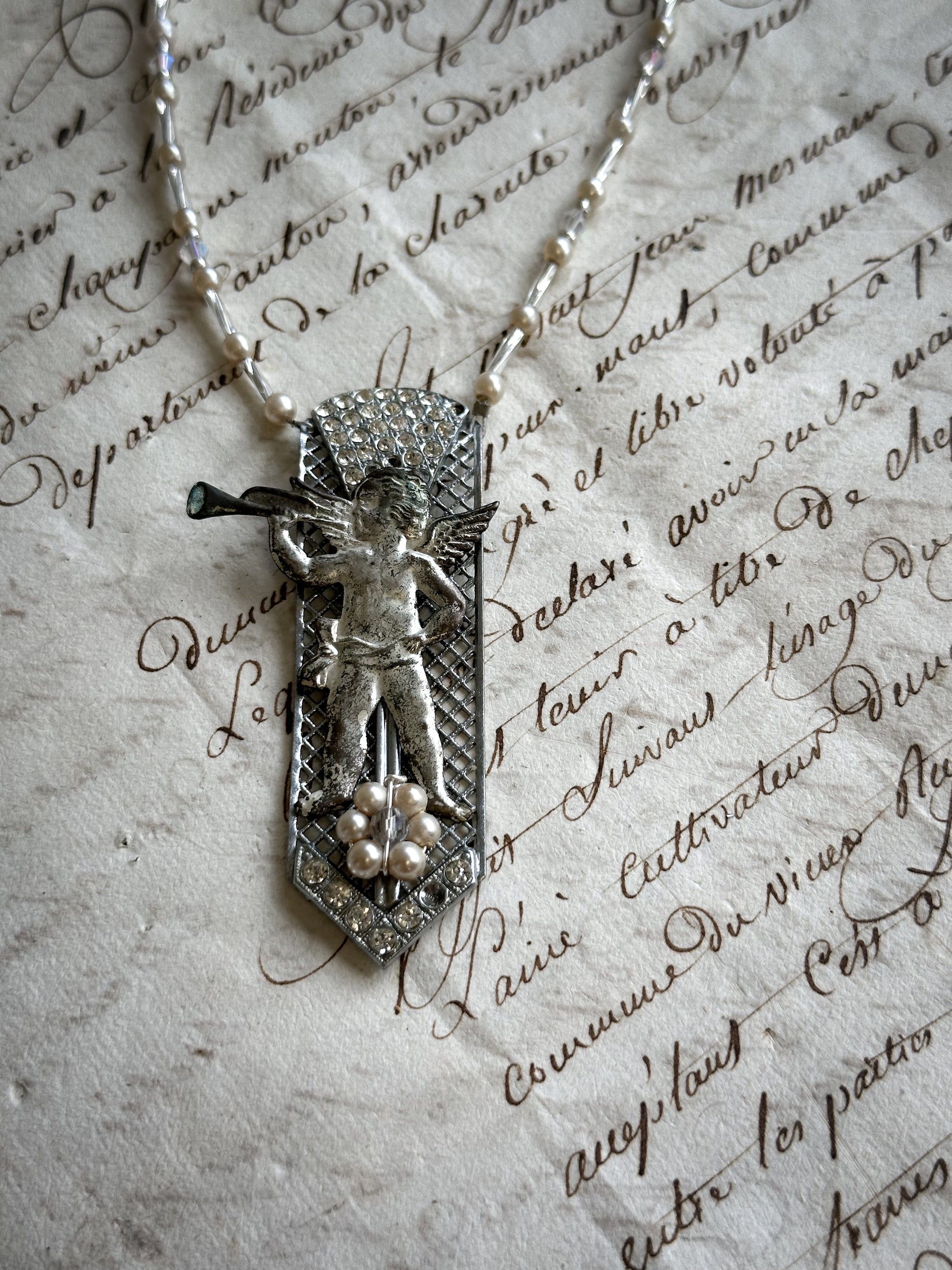 Found Object Art Deco Dress Clip with Cherub Necklace by Jealous Moon Jewellery